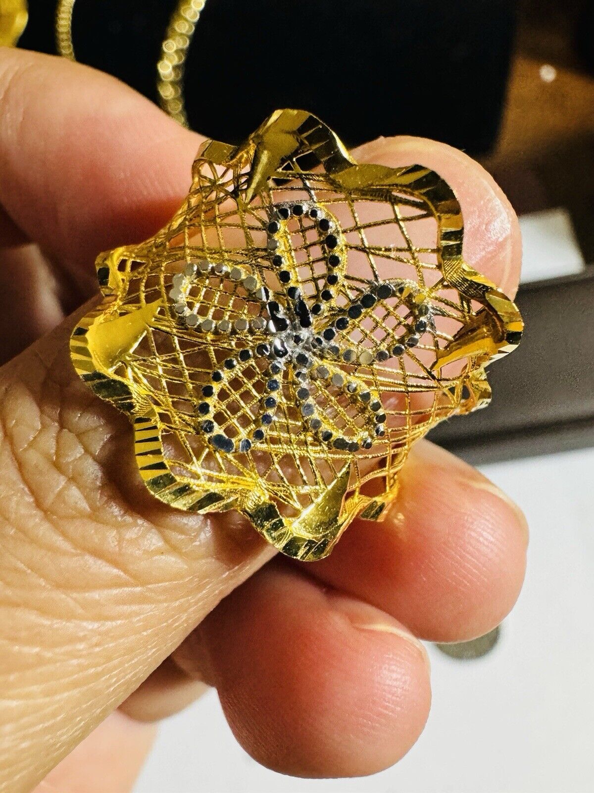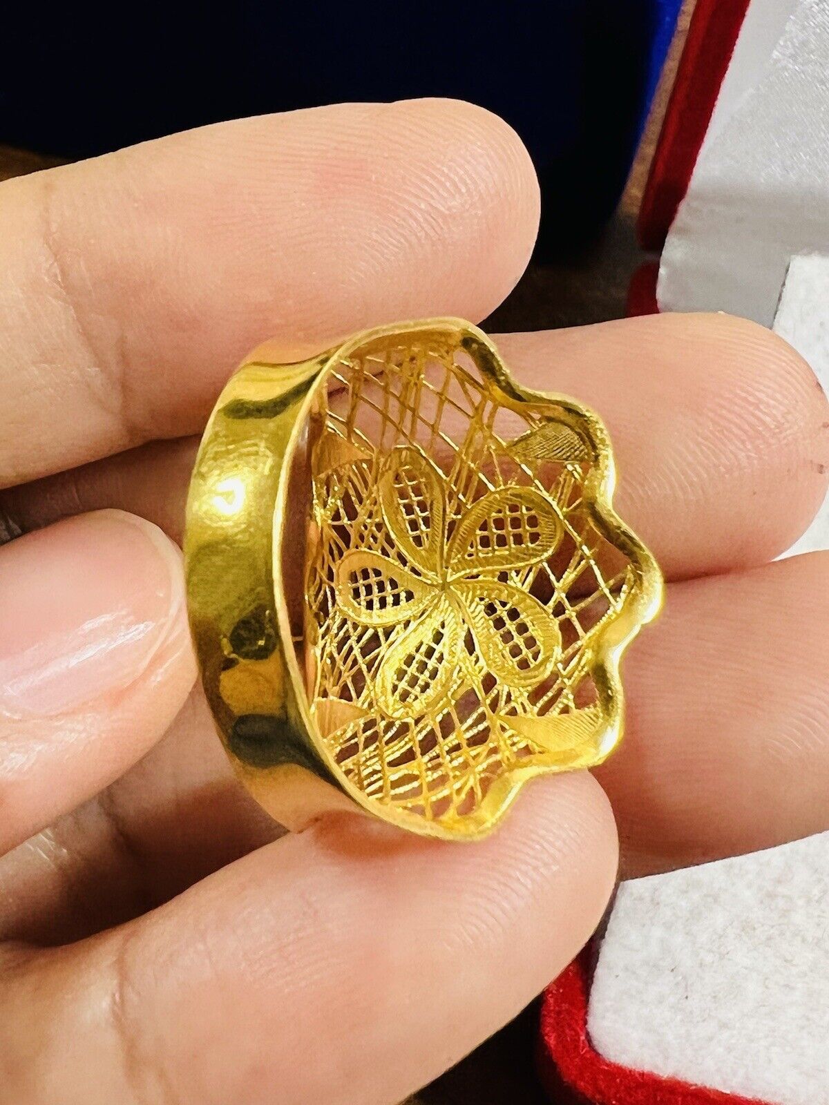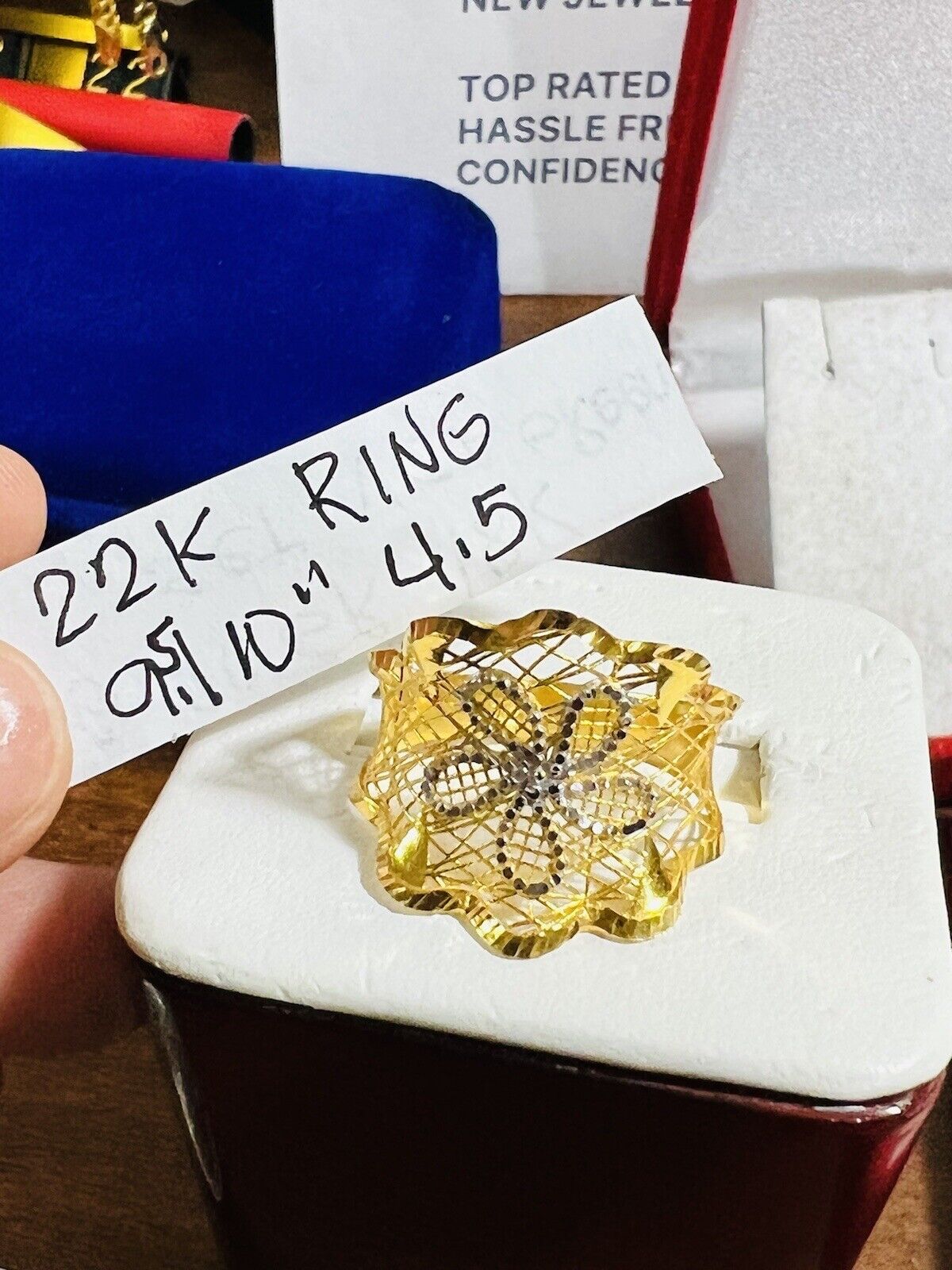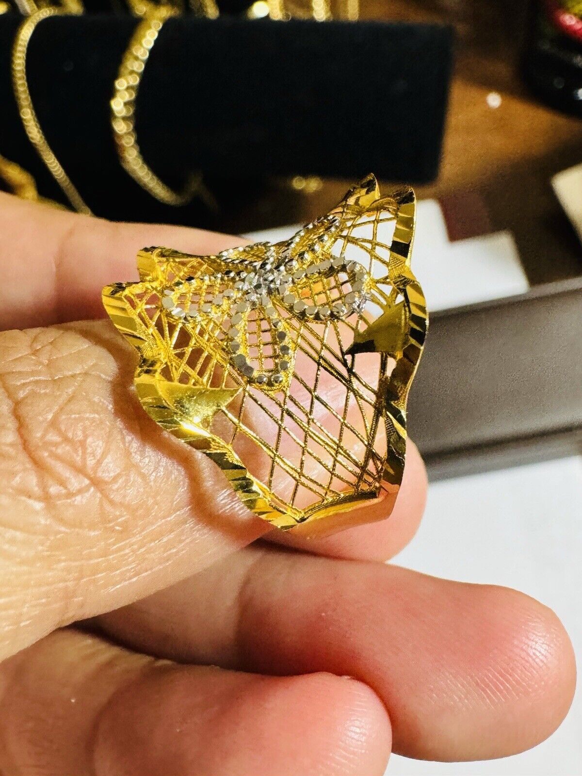 • You are buying Real Beautiful Dubai 22K 916 Yellow Saudi Real UAE Gold Women’s Unique Style Ring 4.5g Fits on 9.5/10” very Rare items hard to find. Two tone colors