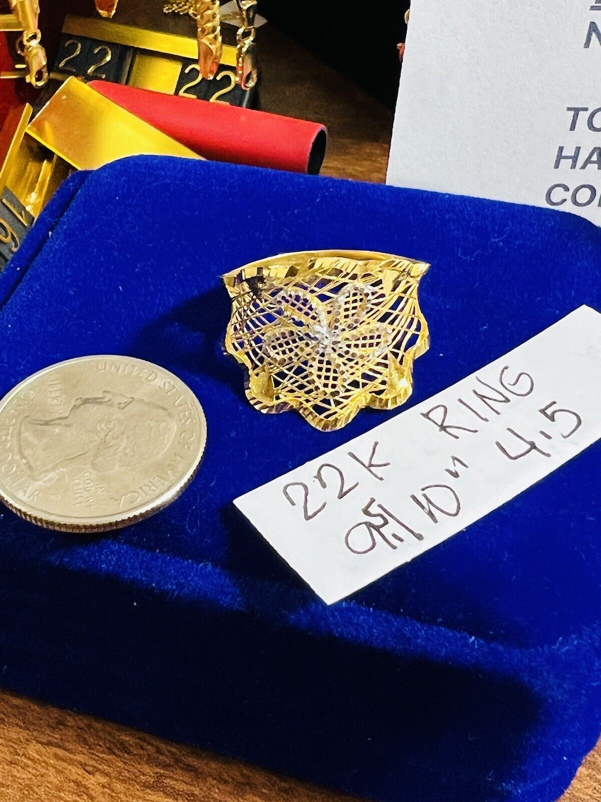 22K 916 Yellow Saudi Real UAE Gold Unique Style Flower Ring 4.5g Fits 9.5/10”
