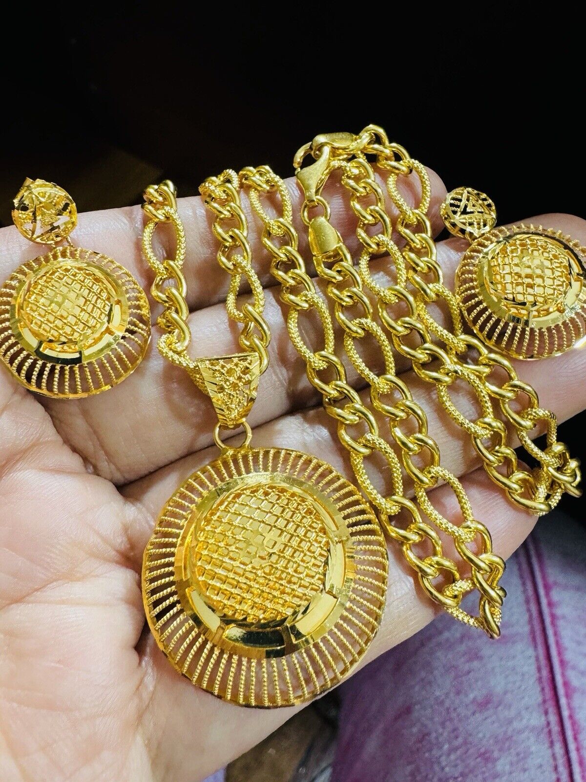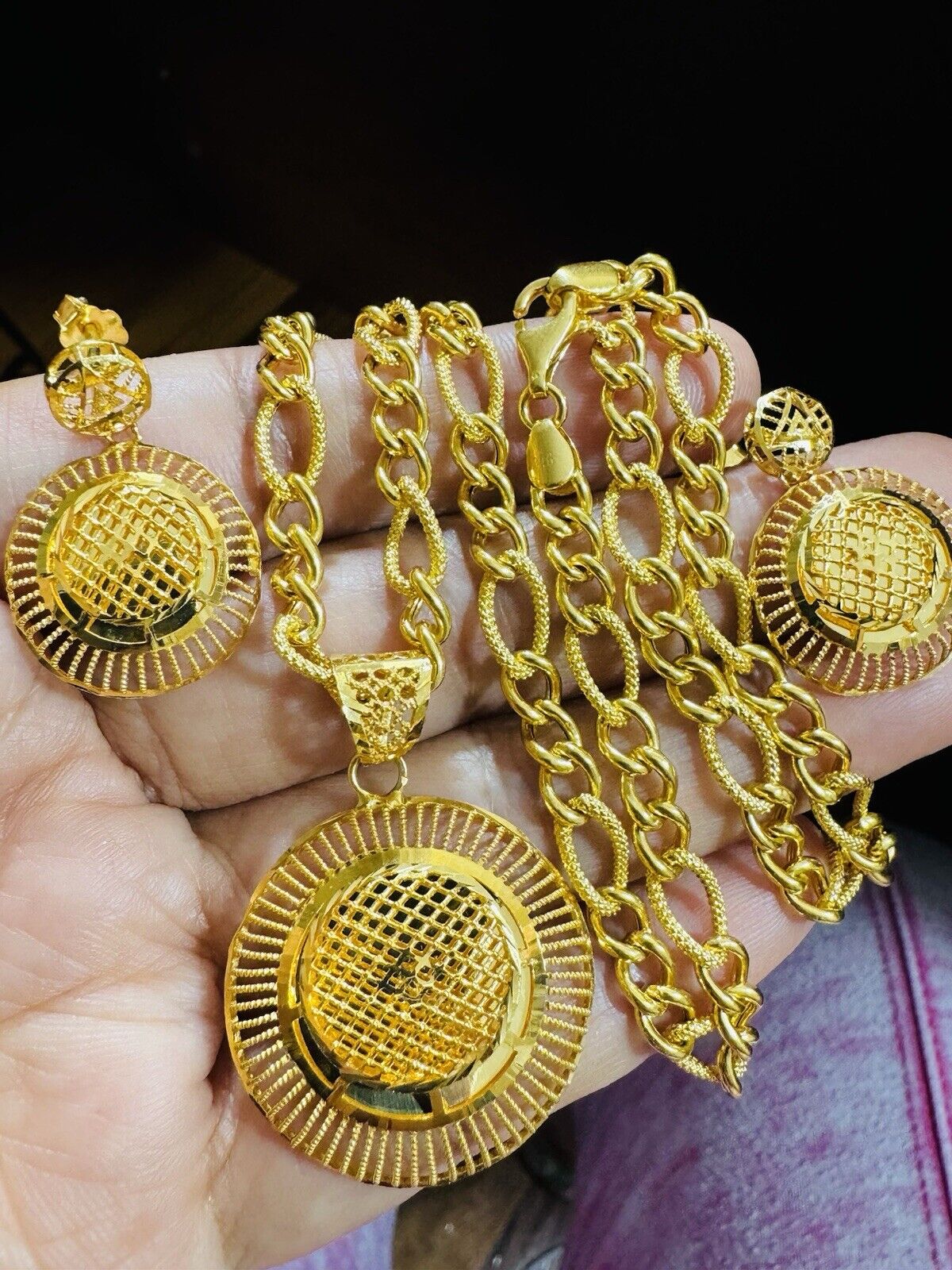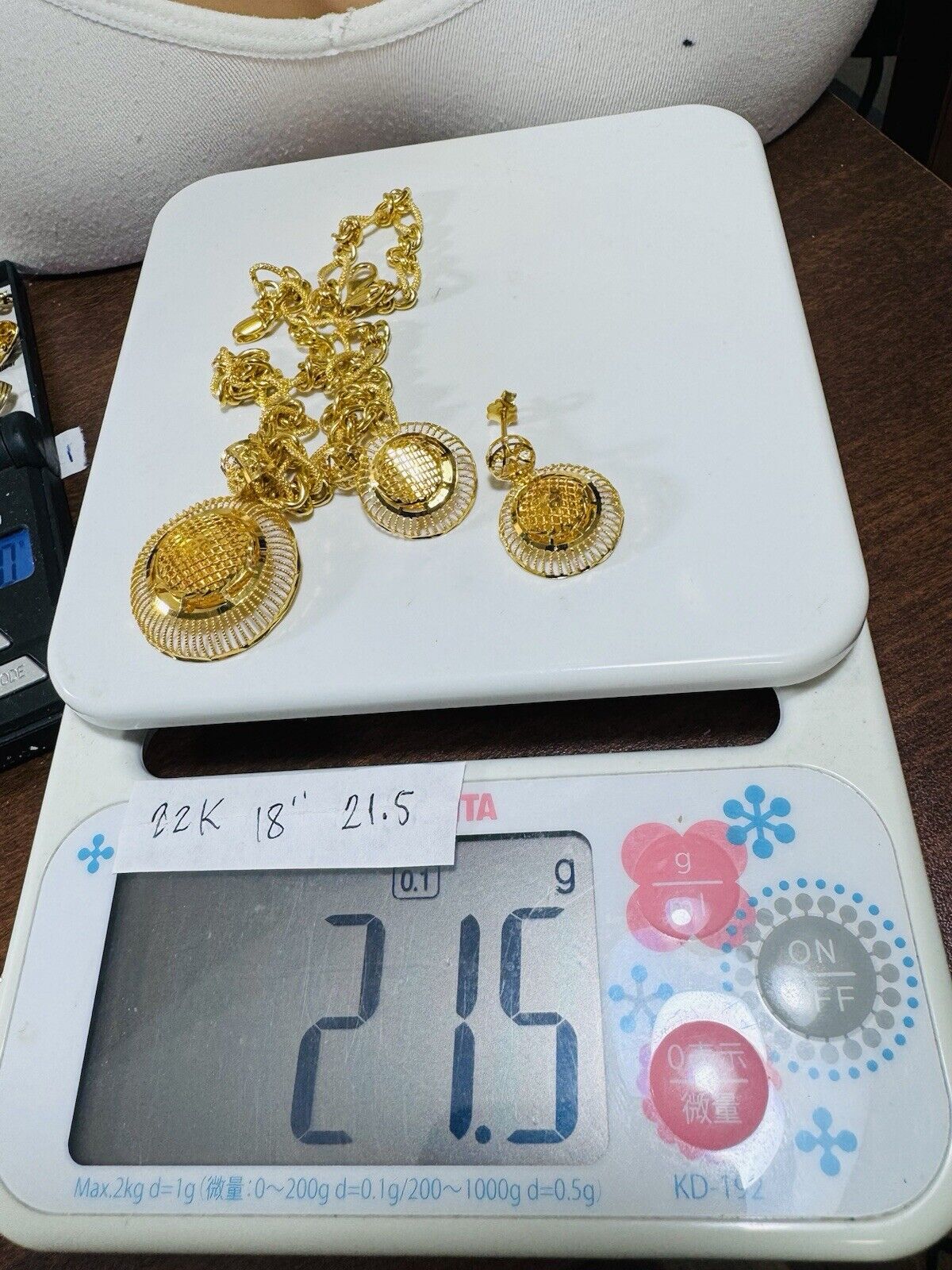 Genuine 22Kt 22Ct 916 Dubai Real Gold 18” Long Round Earring Necklace 21.5g 6mm