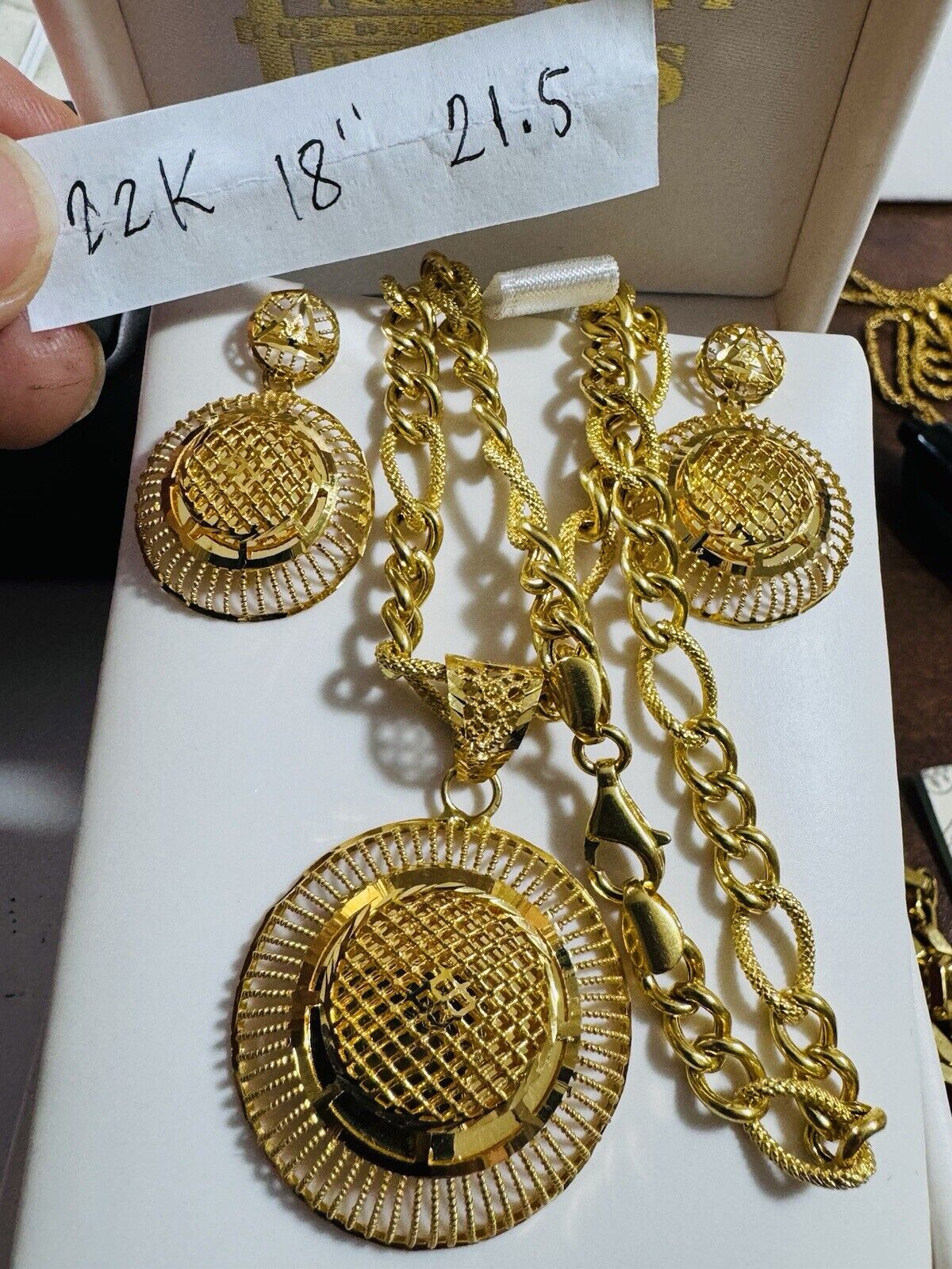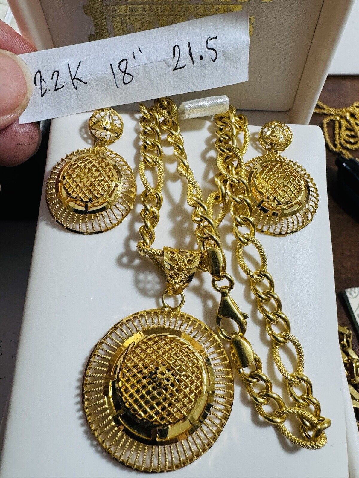 * Hello You are buying Real Brand New 22K 916 Fine Yellow Saudi Gold Mens Women’s chain Set Necklace With 18” long 6mm 21.5 grams USA Seller Fast shipping!