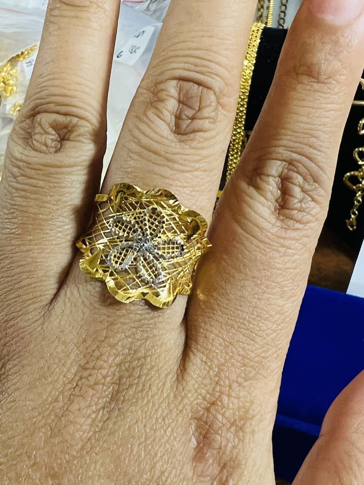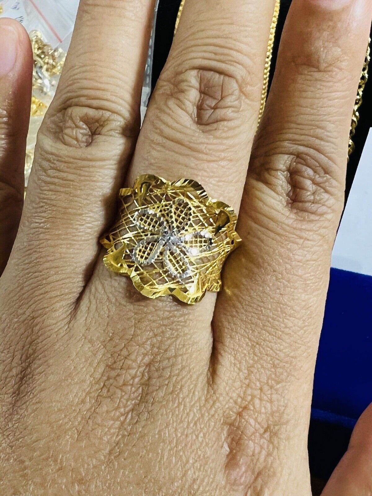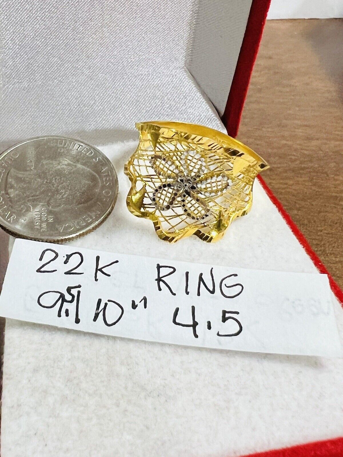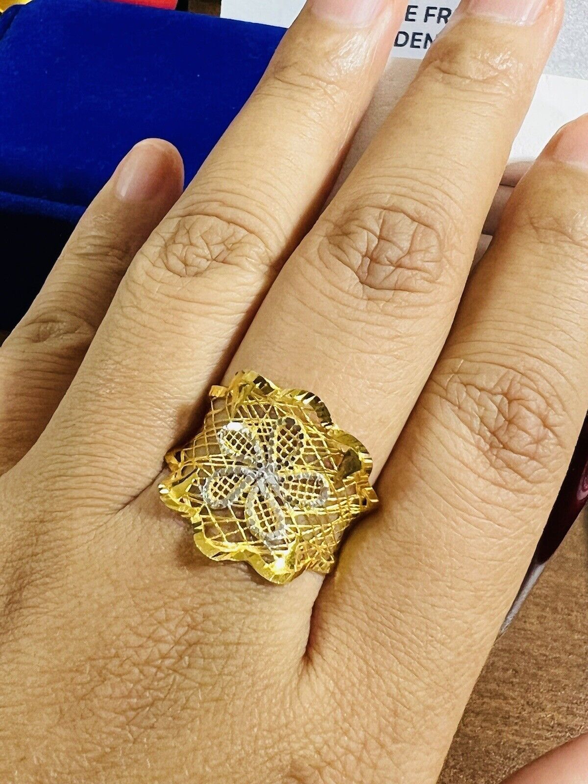 • You are buying Real Beautiful Dubai 22K 916 Yellow Saudi Real UAE Gold Women’s Unique Style Ring 4.5g Fits on 9.5/10” very Rare items hard to find. Two tone colors