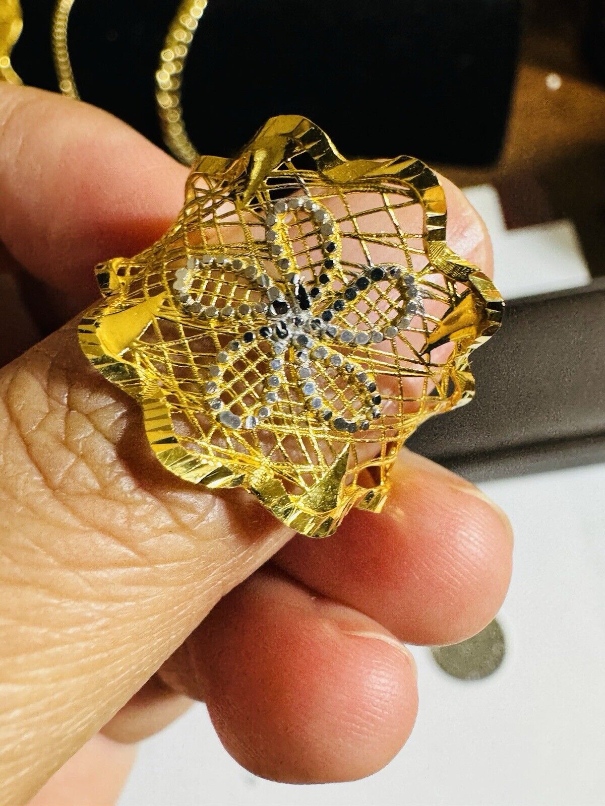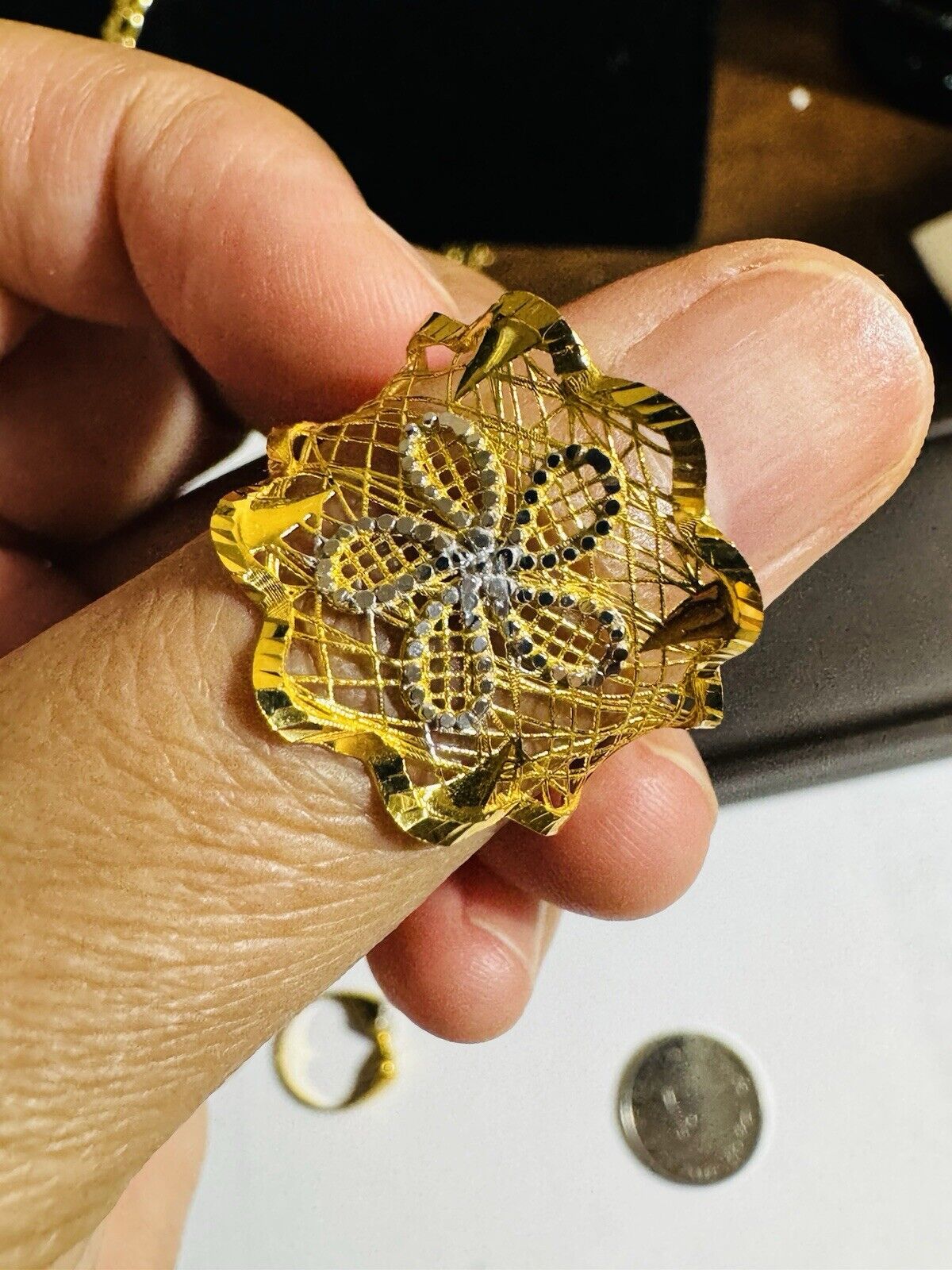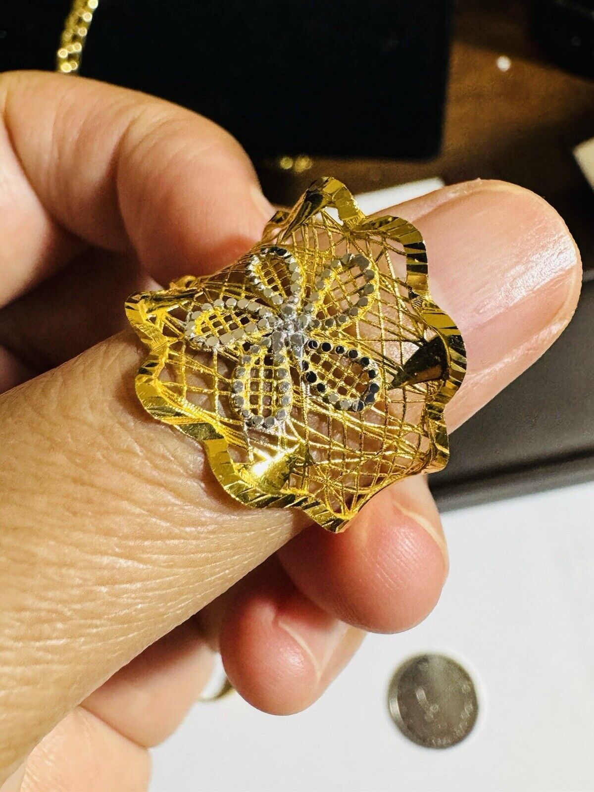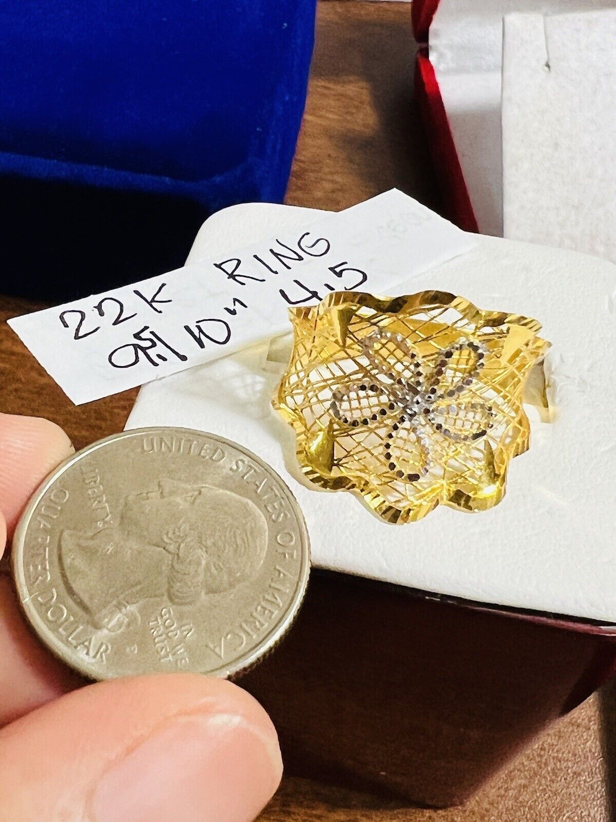 • You are buying Real Beautiful Dubai 22K 916 Yellow Saudi Real UAE Gold Women’s Unique Style Ring 4.5g Fits on 9.5/10” very Rare items hard to find. Two tone colors
