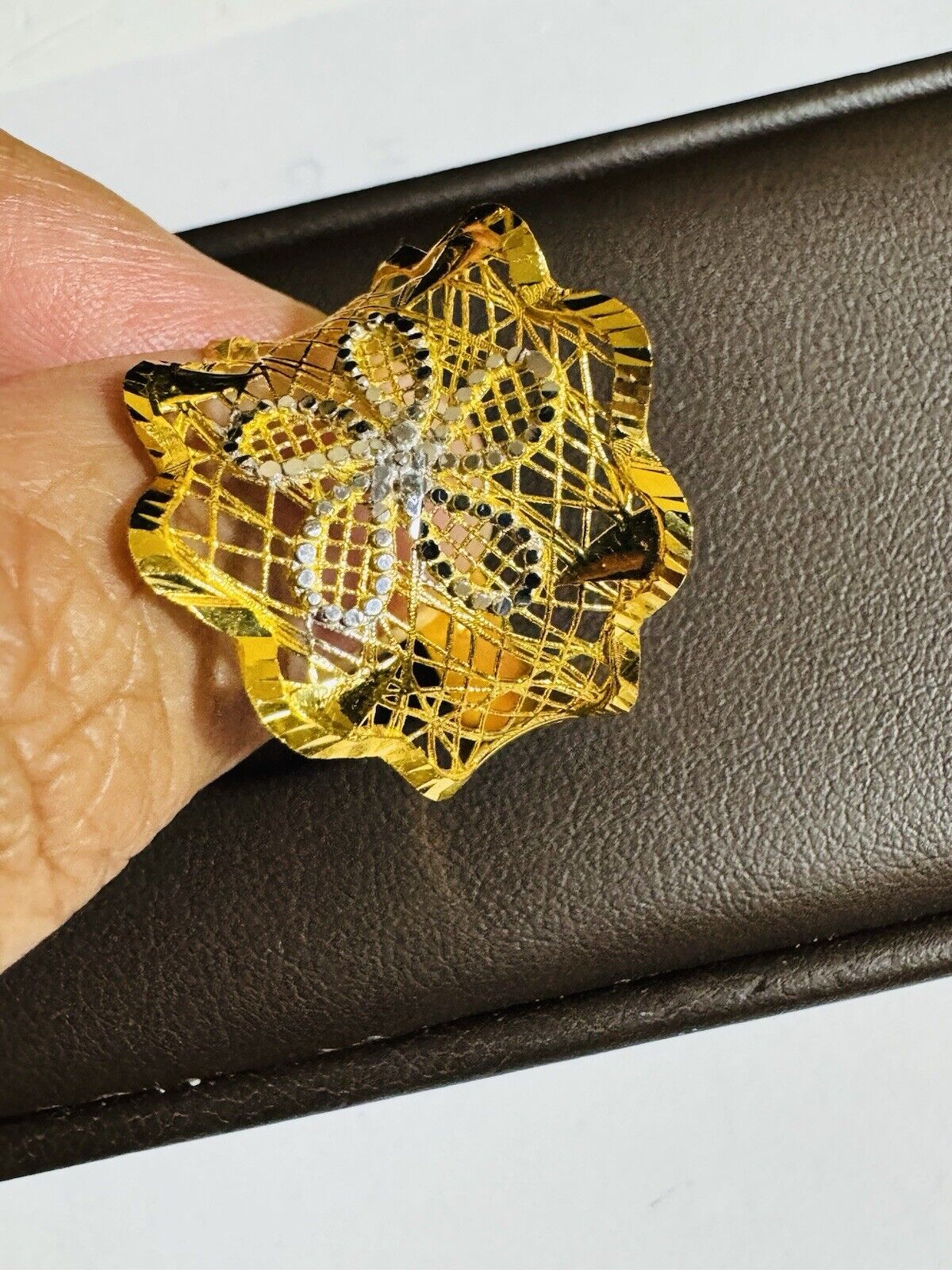 New 22K 916 Fine Saudi Real UAE Gold Unique Style Flower Ring 4.5g Fits 9.5/10”