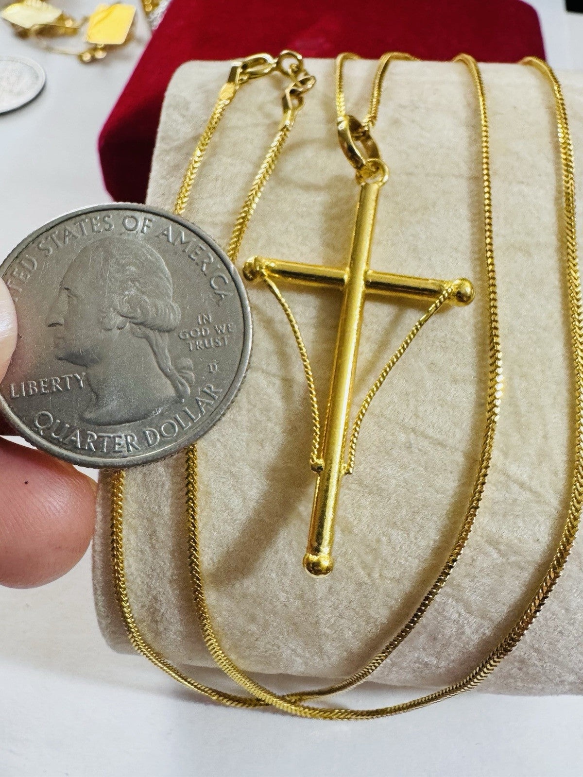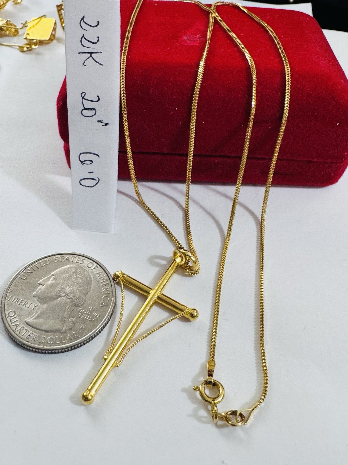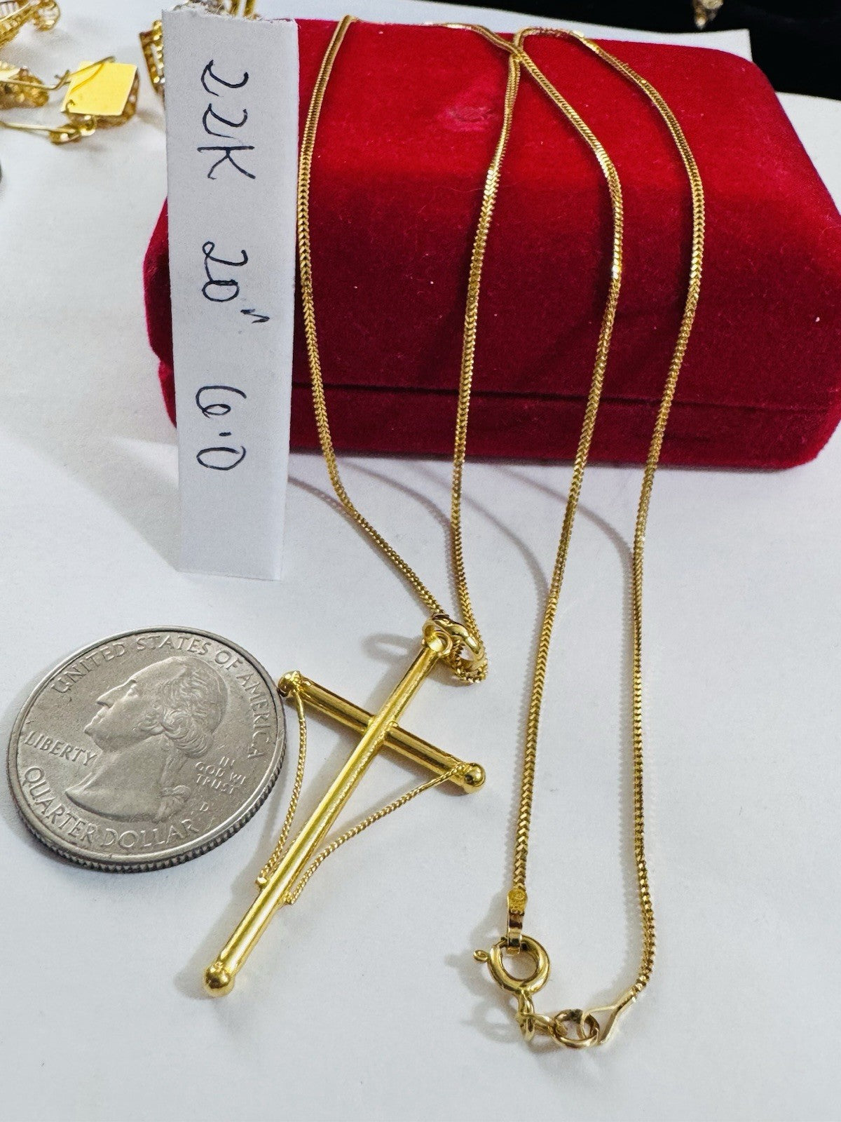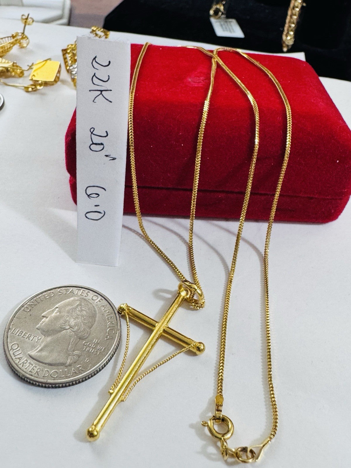 New Pure 22K 22C 916 Fine Real Gold 20” long Cross Set Necklace 6g 1.2mm