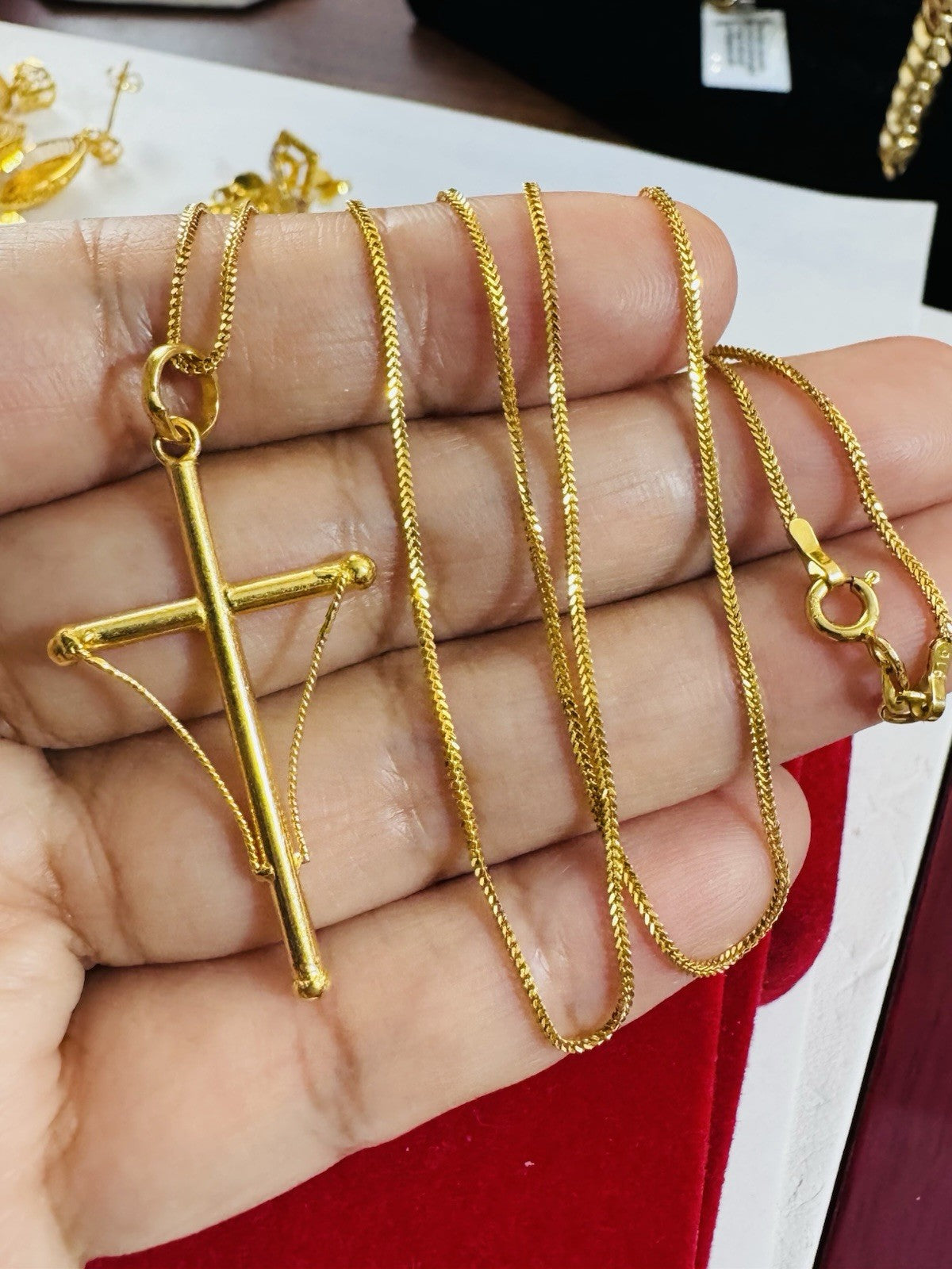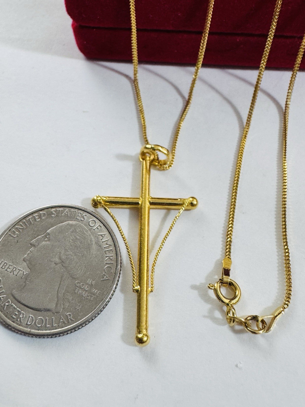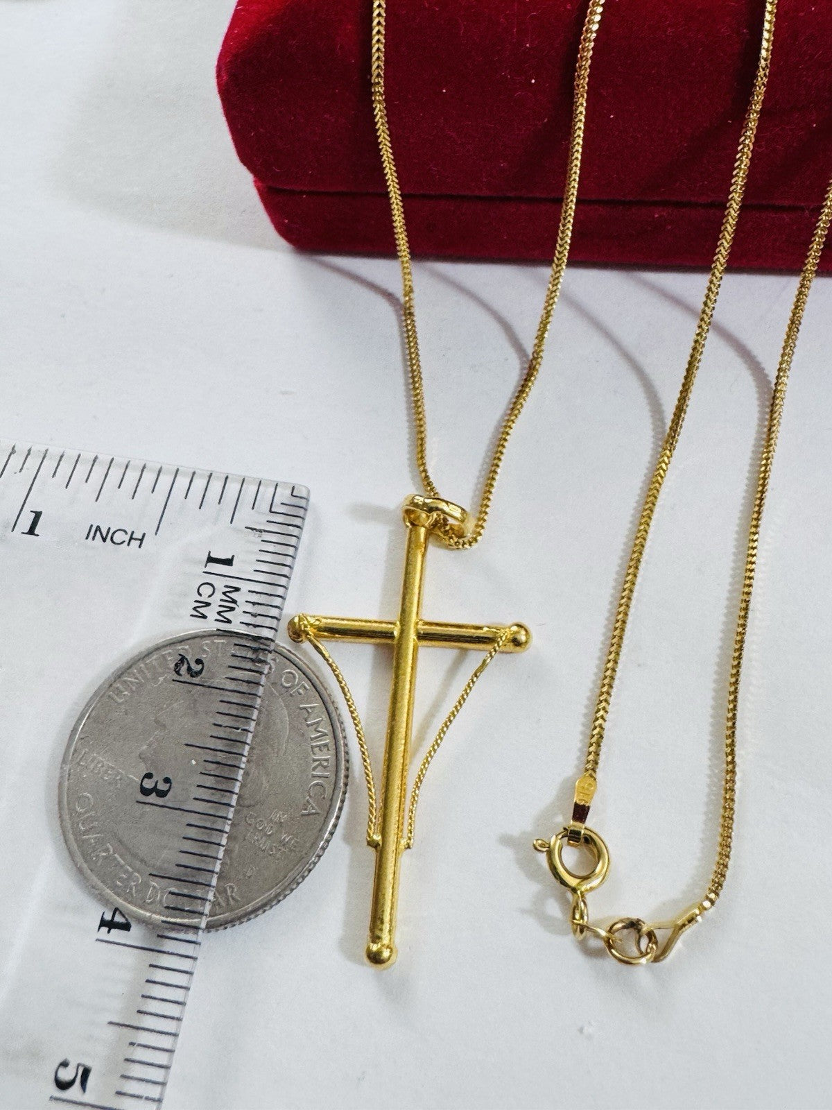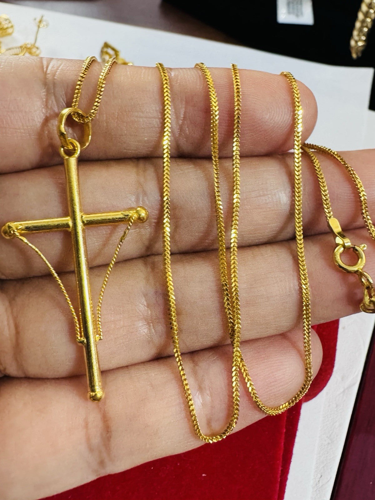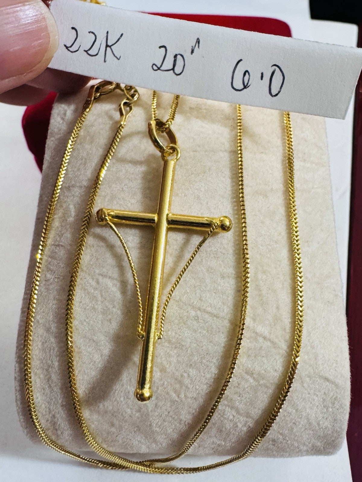 New Pure 22K 22C 916 Fine Real Gold 20” long Cross Set Necklace 6g 1.2mm