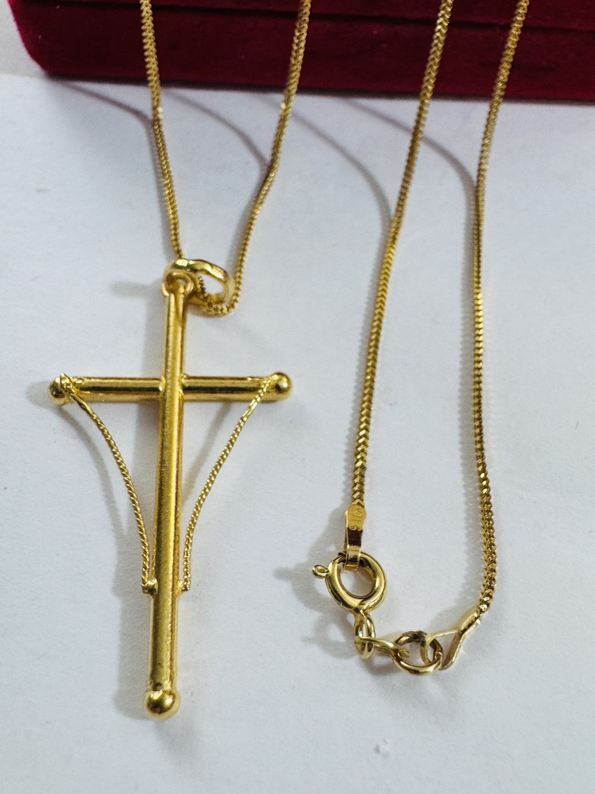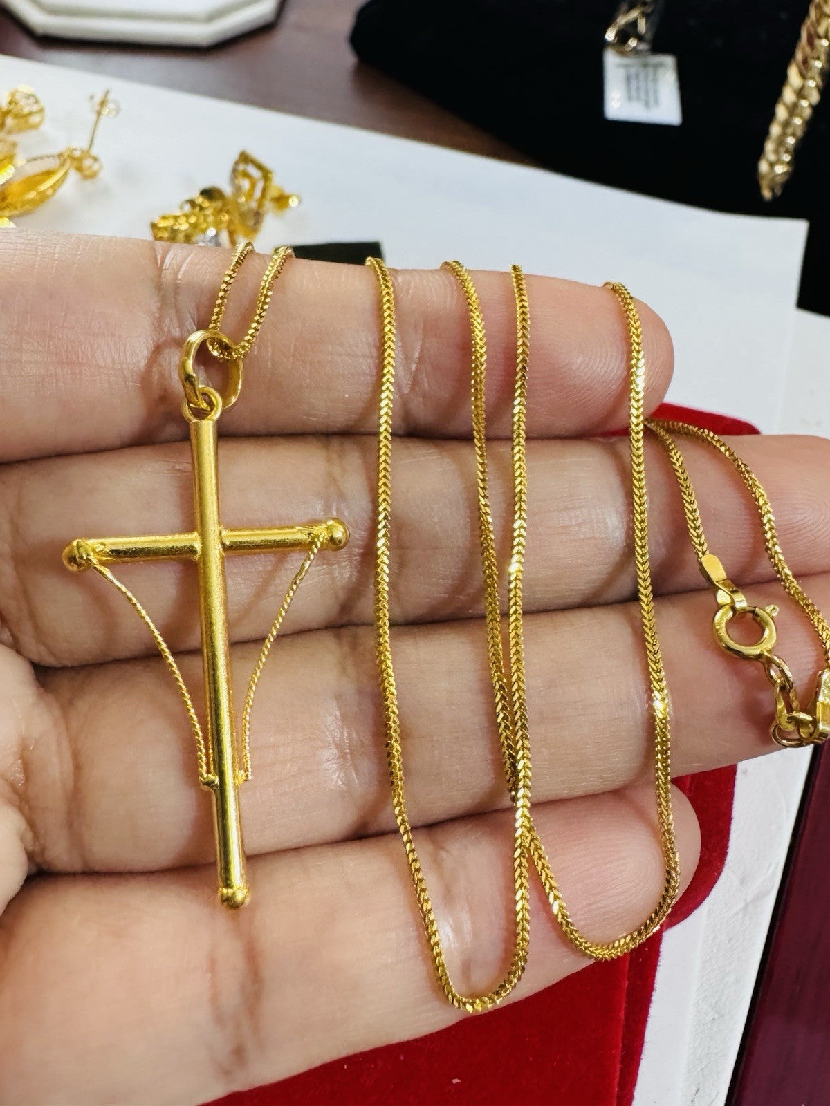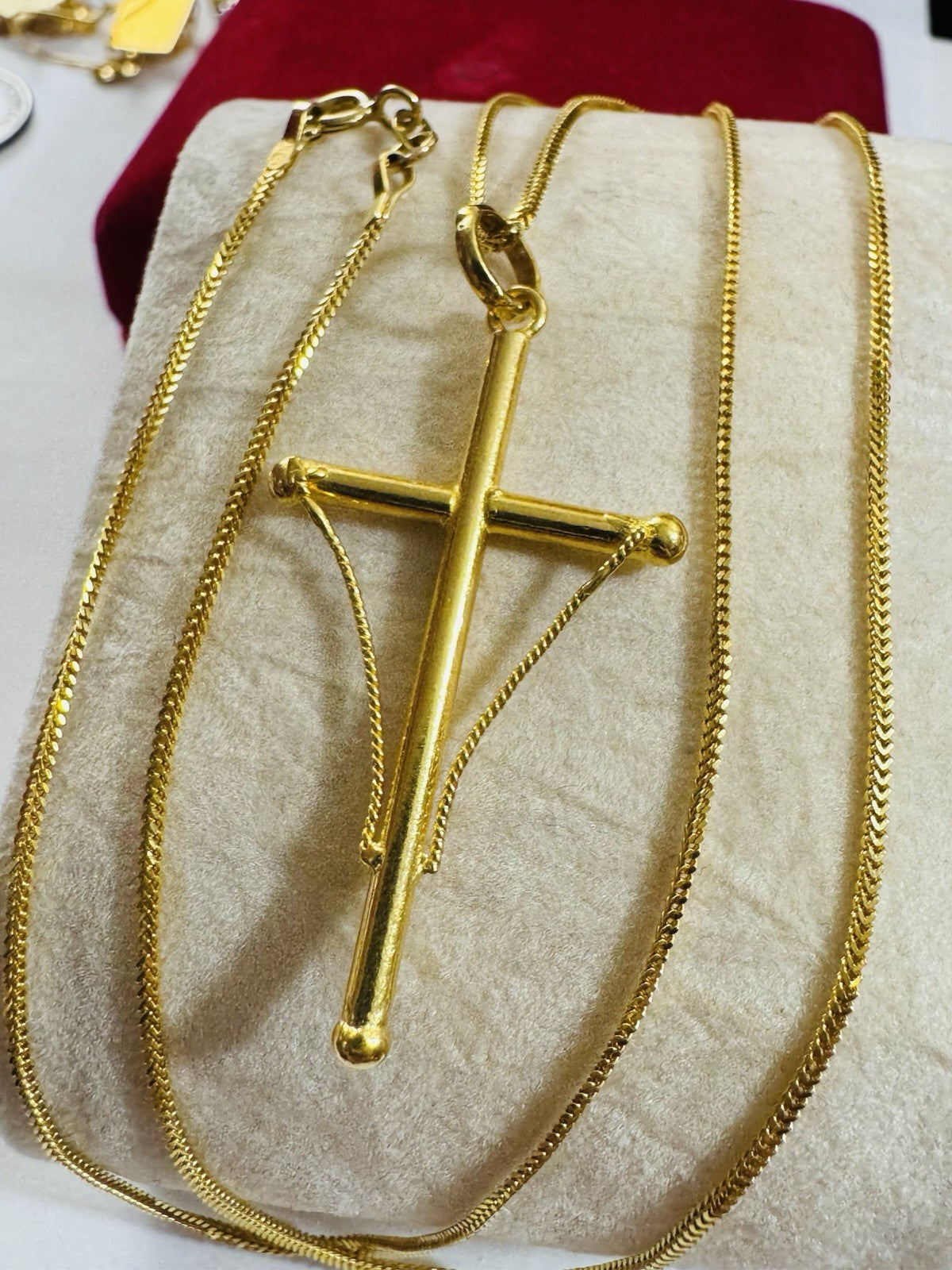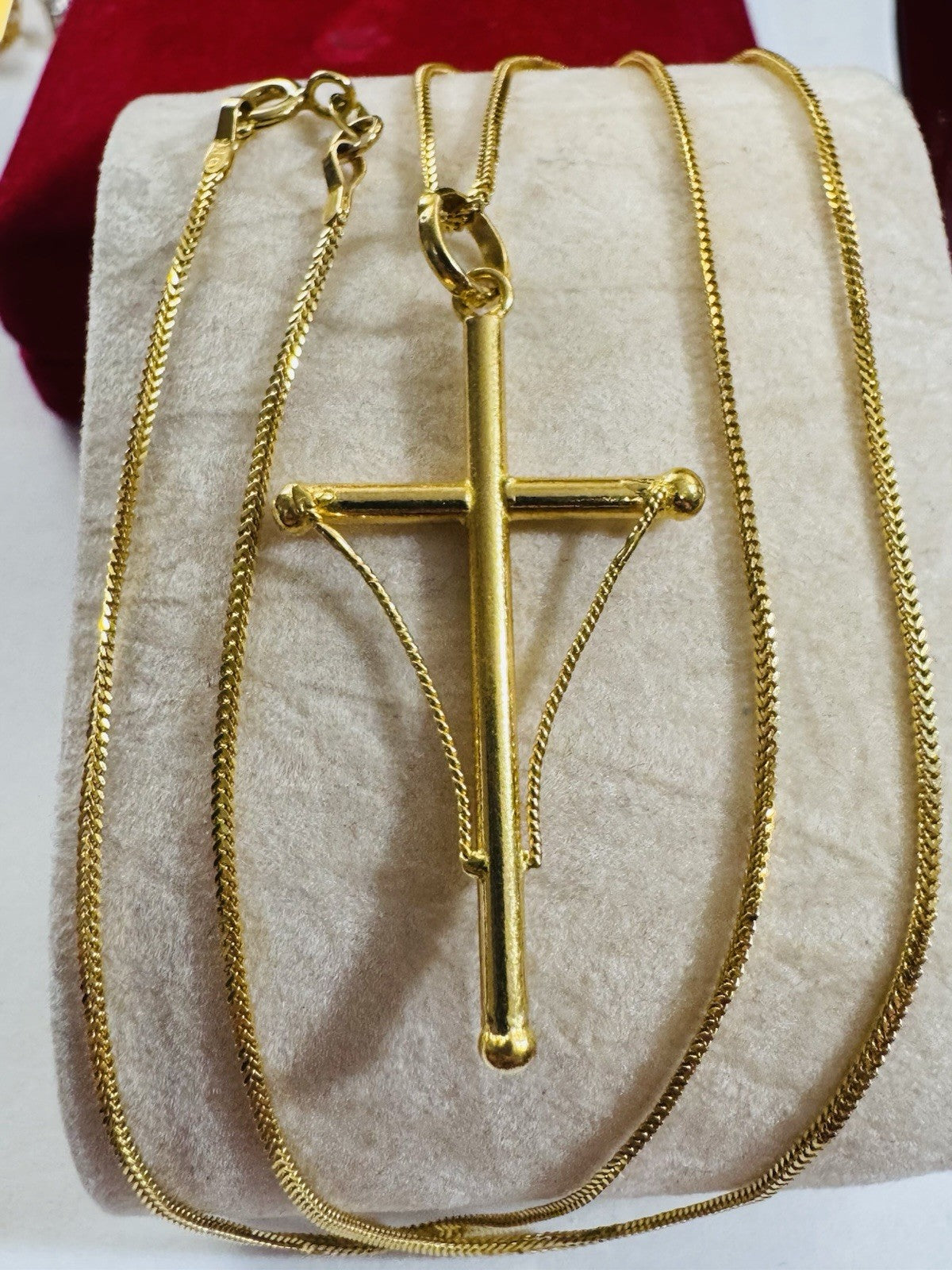 New Pure 22K 22C 916 Fine Real Gold 20” long Cross Set Necklace 6g 1.2mm