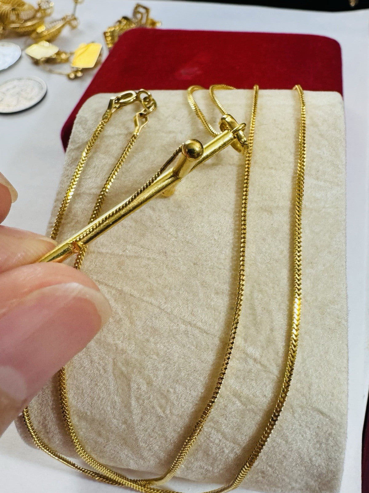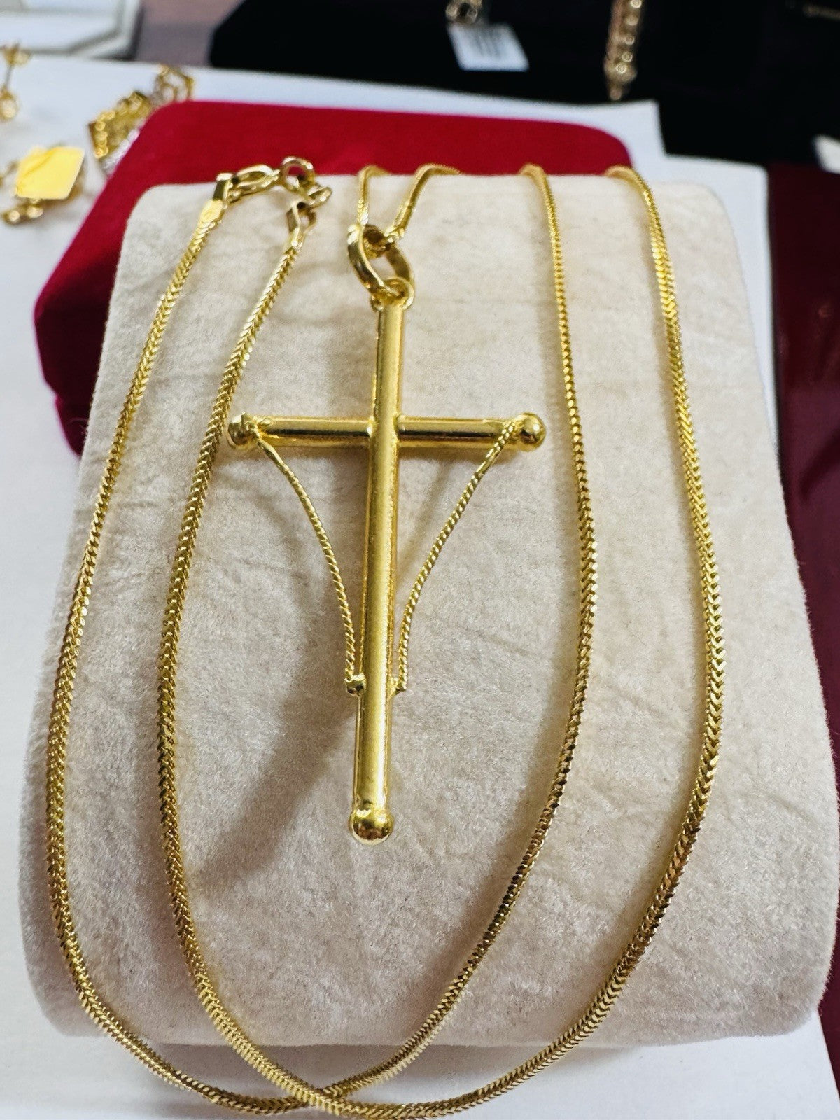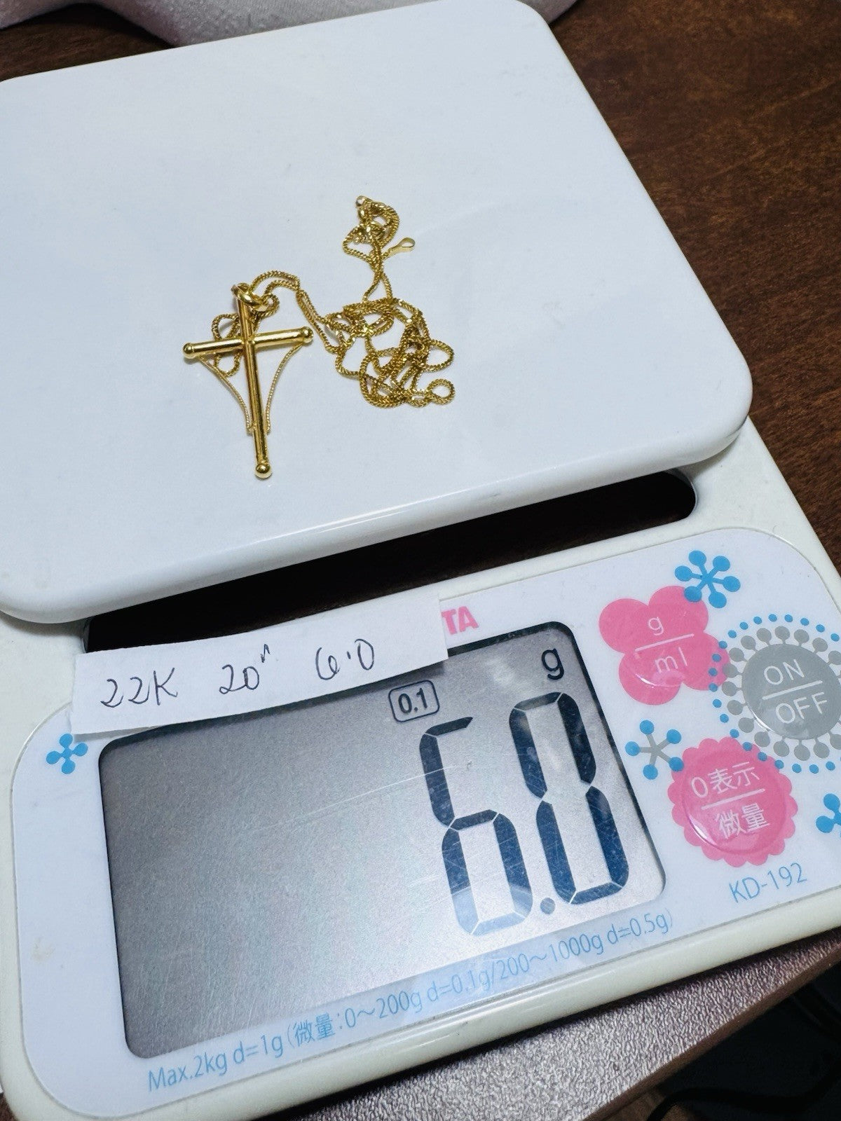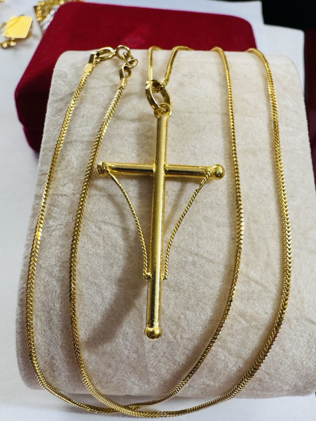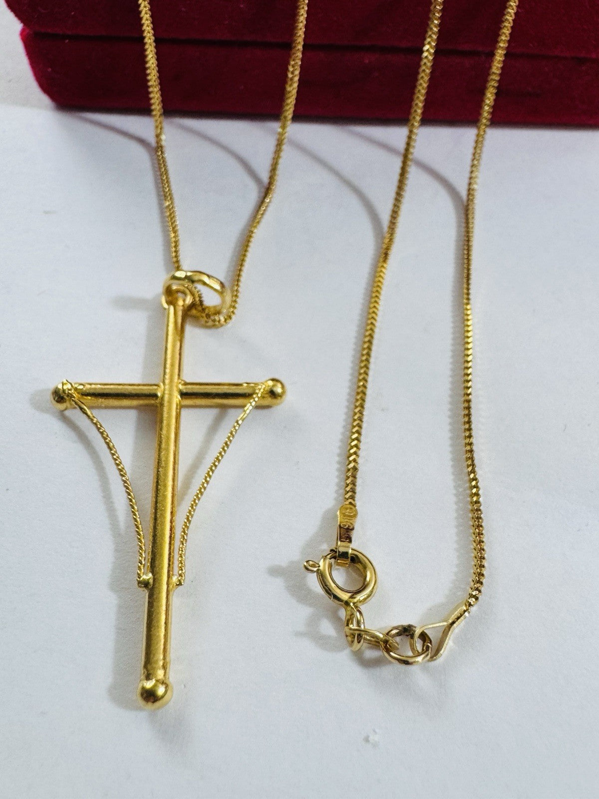 New Pure 22K 22C 916 Fine Real Gold 20” long Cross Set Necklace 6g 1.2mm