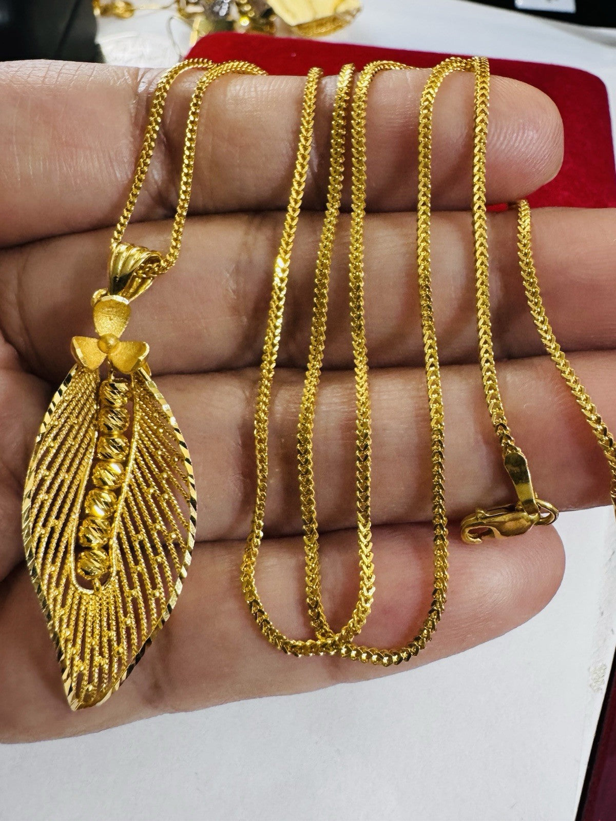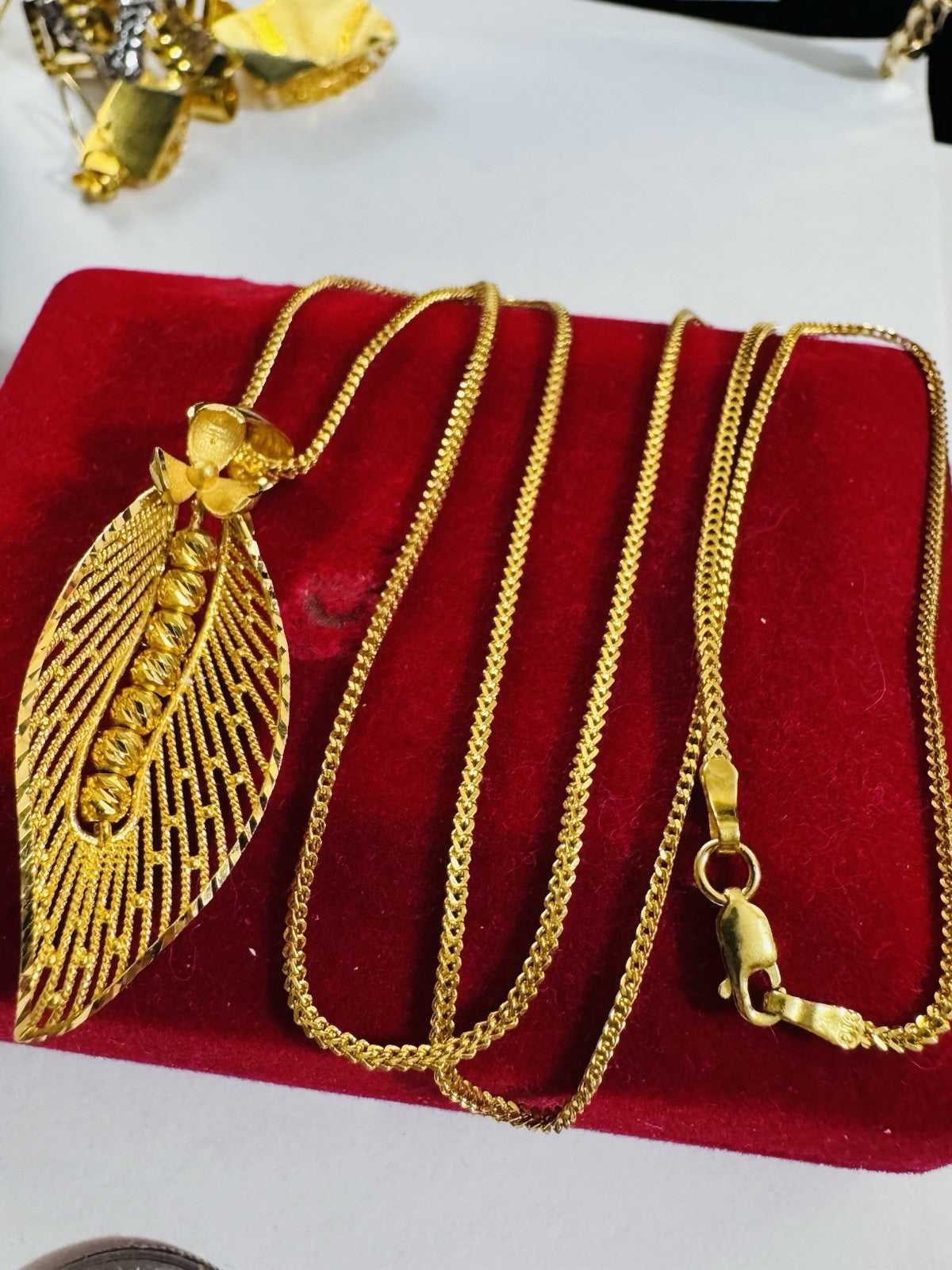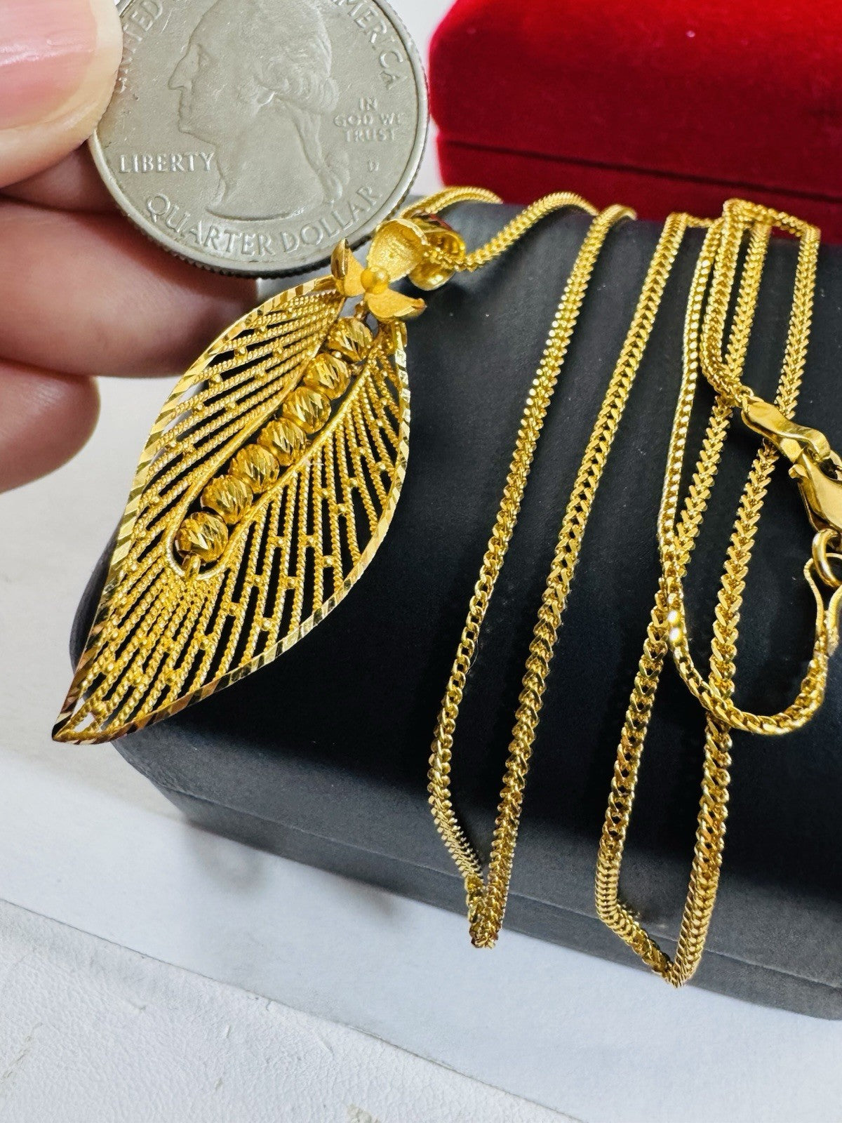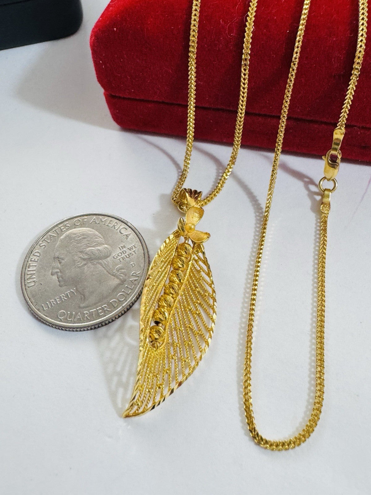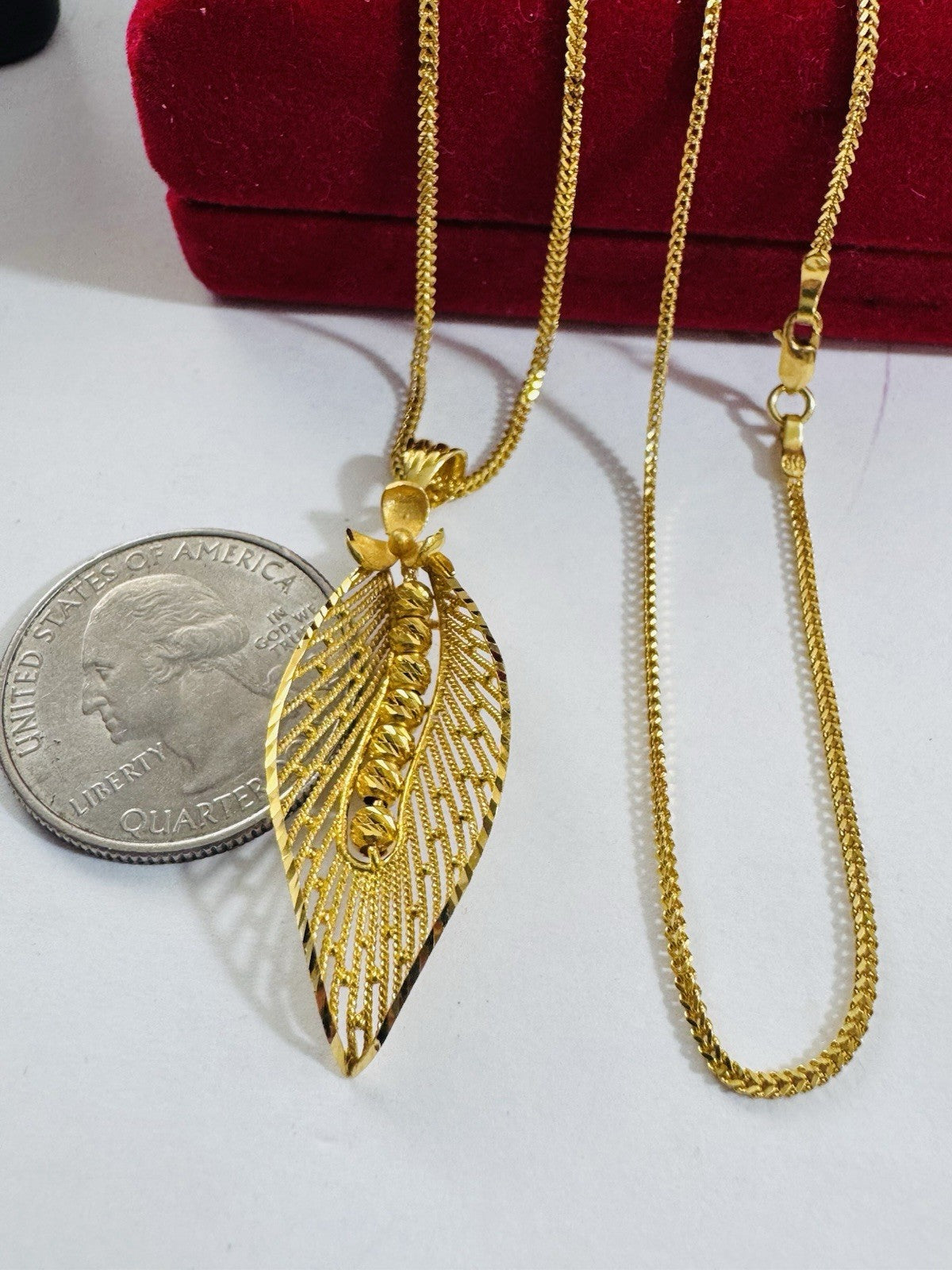 New Pure 22K 22C 916 Fine Real Gold 20” long Leaf Flower Necklace 7.9g 1.6mm