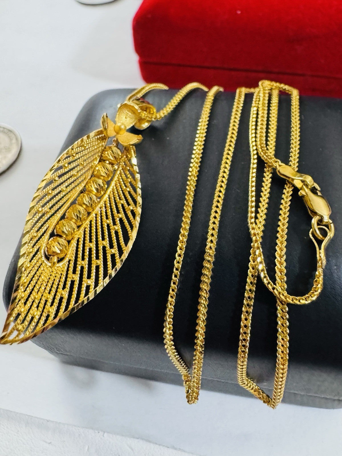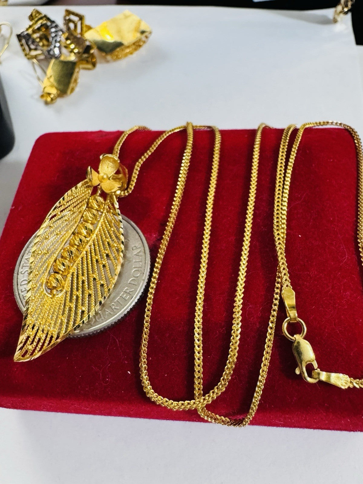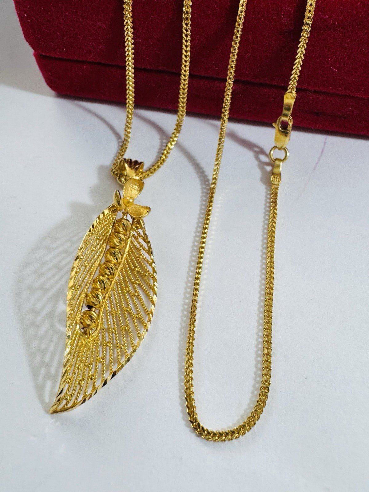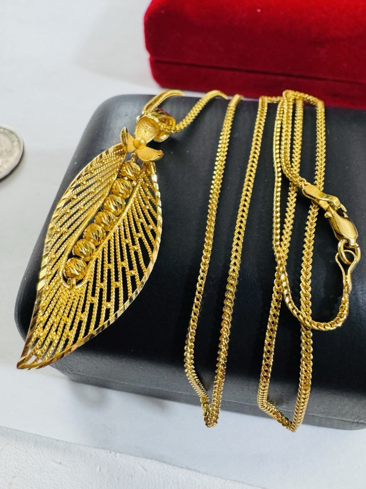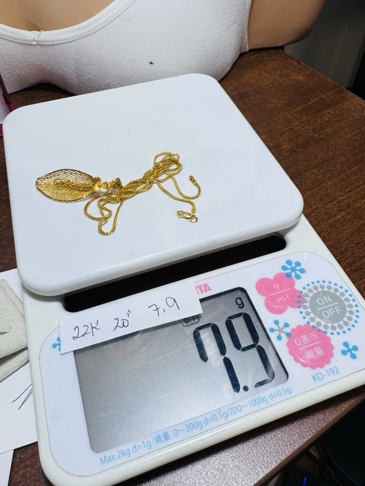 New Pure 22K 22C 916 Fine Real Gold 20” long Leaf Flower Necklace 7.9g 1.6mm