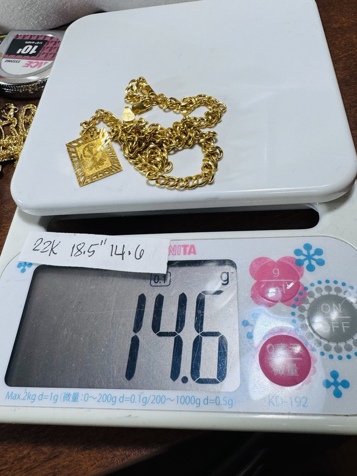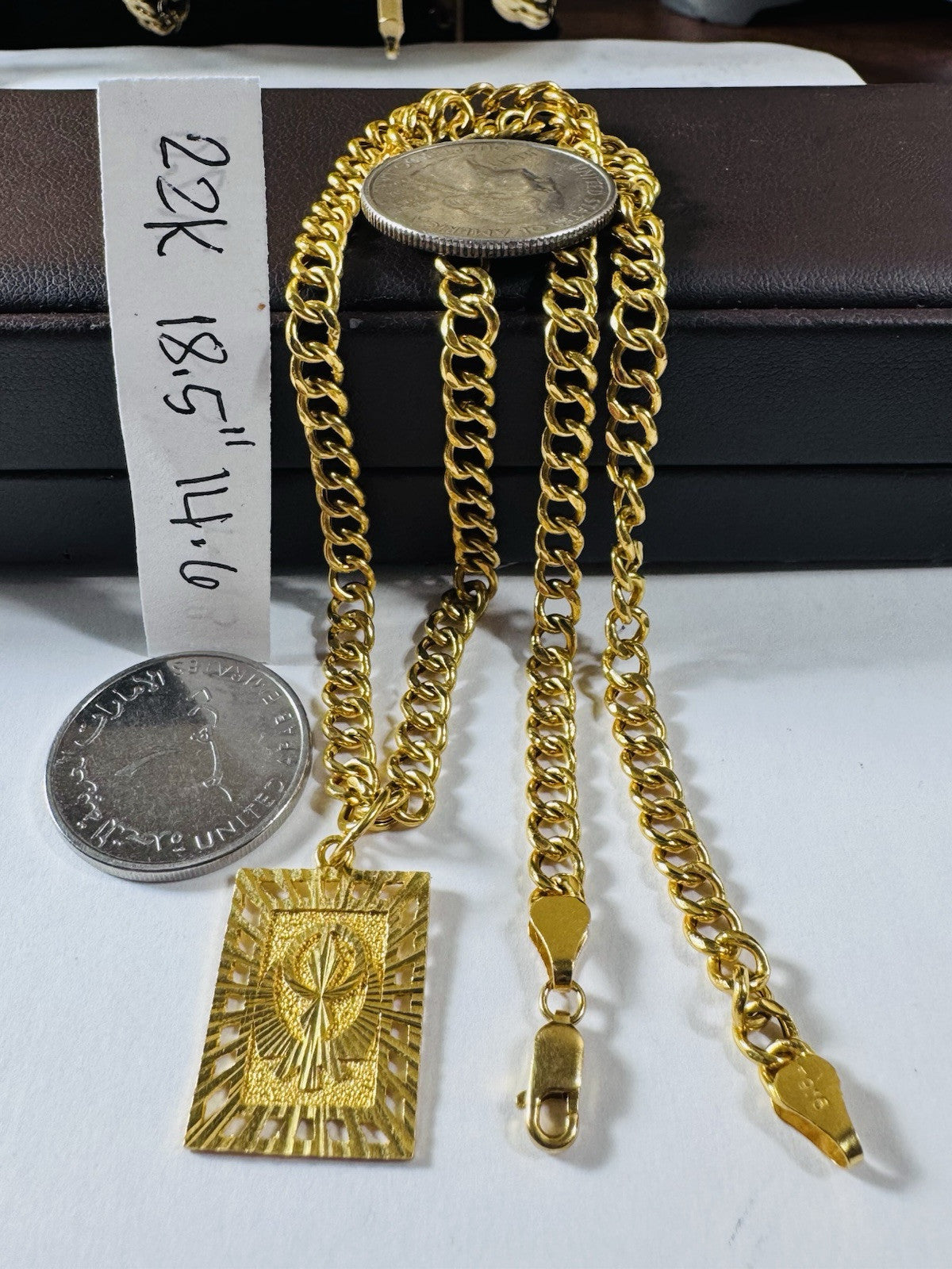 Pure 22K 916 22C Fine Real Yellow Gold 18”/18.5 inches Devine Necklace 14.6g 5mm