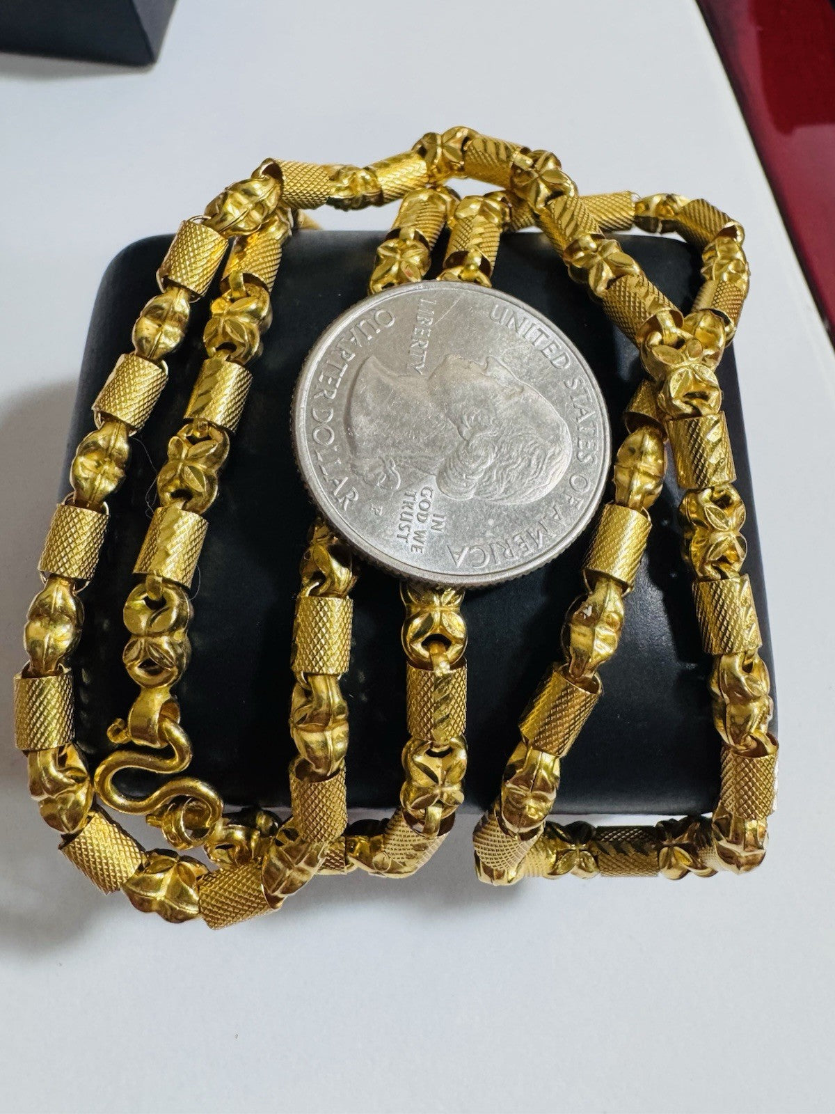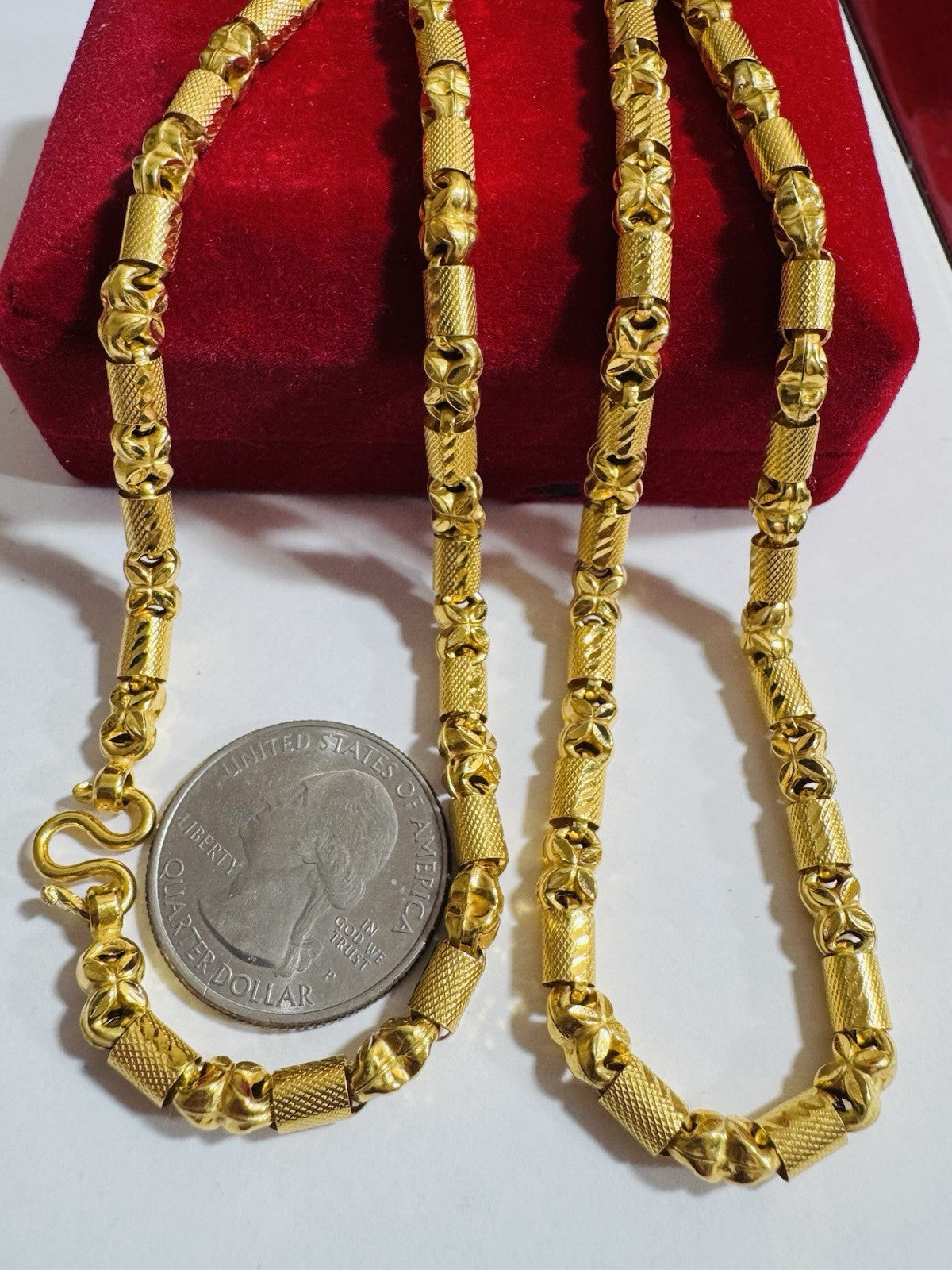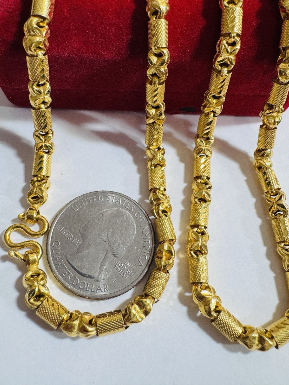 Pure 22K 916 Real Gold 21.8/22”Long Baht Chain Necklace 23.5g 5mm Unisex