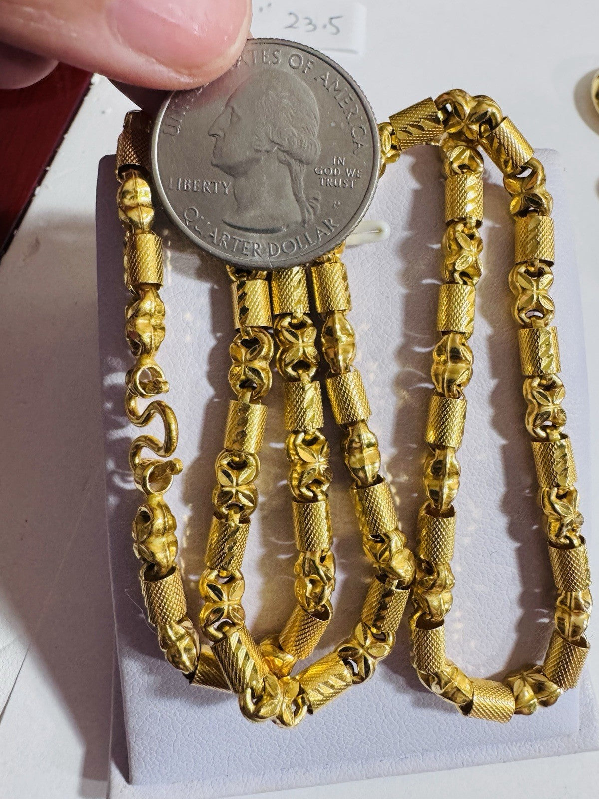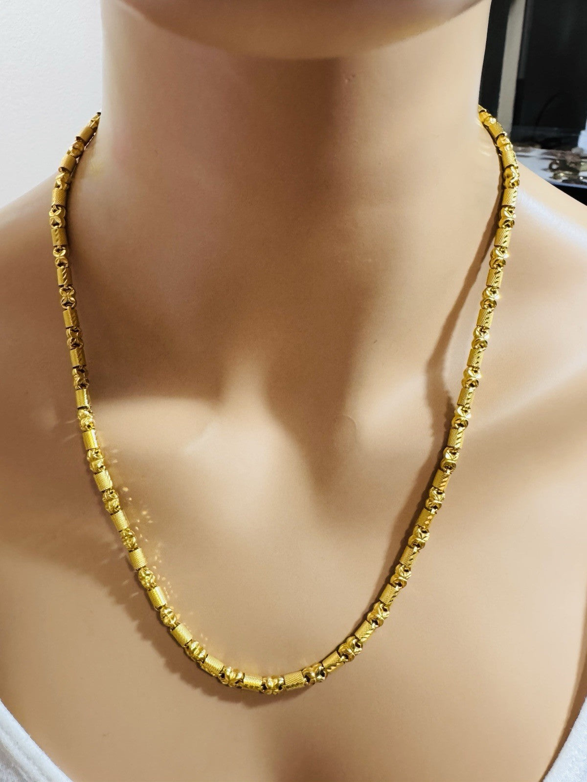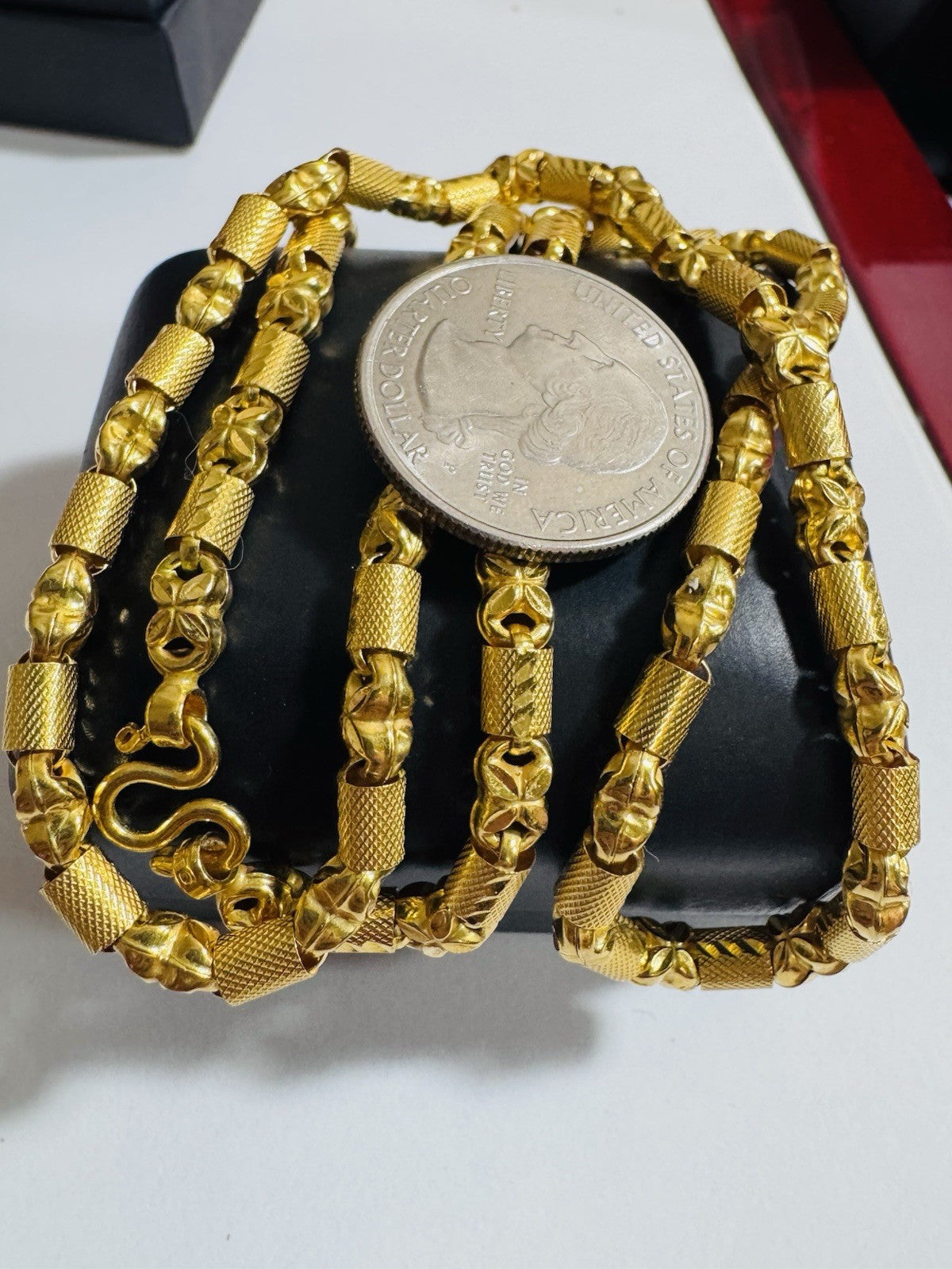 Pure 22K 916 Real Gold 21.8/22”Long Baht Chain Necklace 23.5g 5mm Unisex
