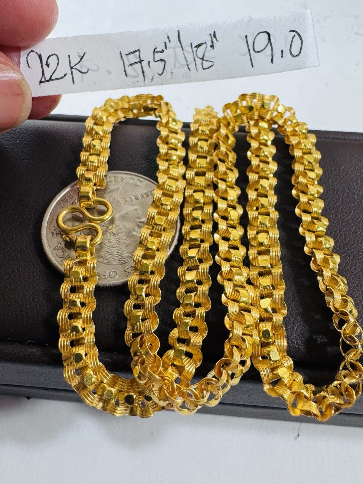 Solid New 22K 916 22C Fine Real Dubai Gold 17.5”/18 inches Necklace 19g 6mm