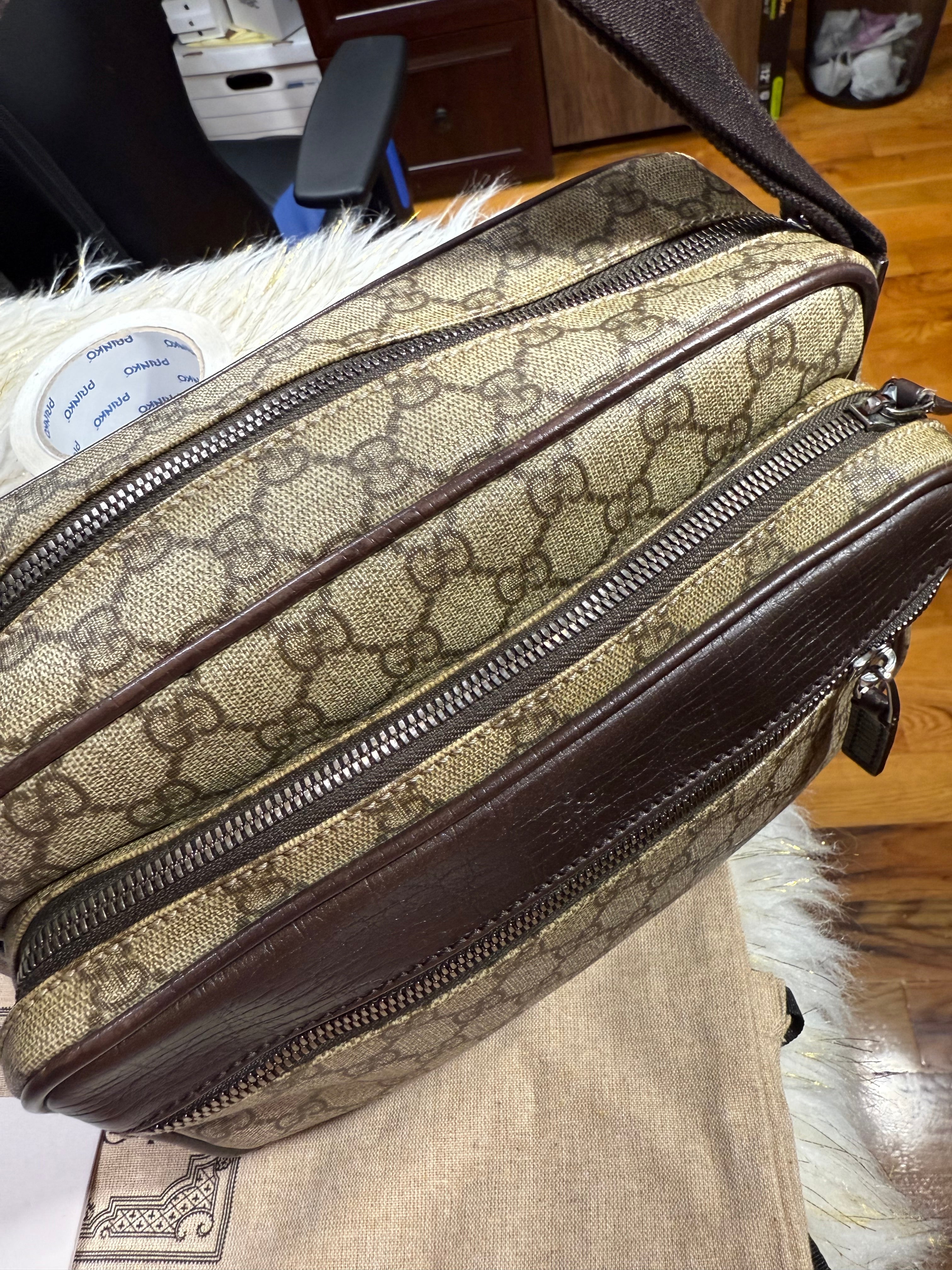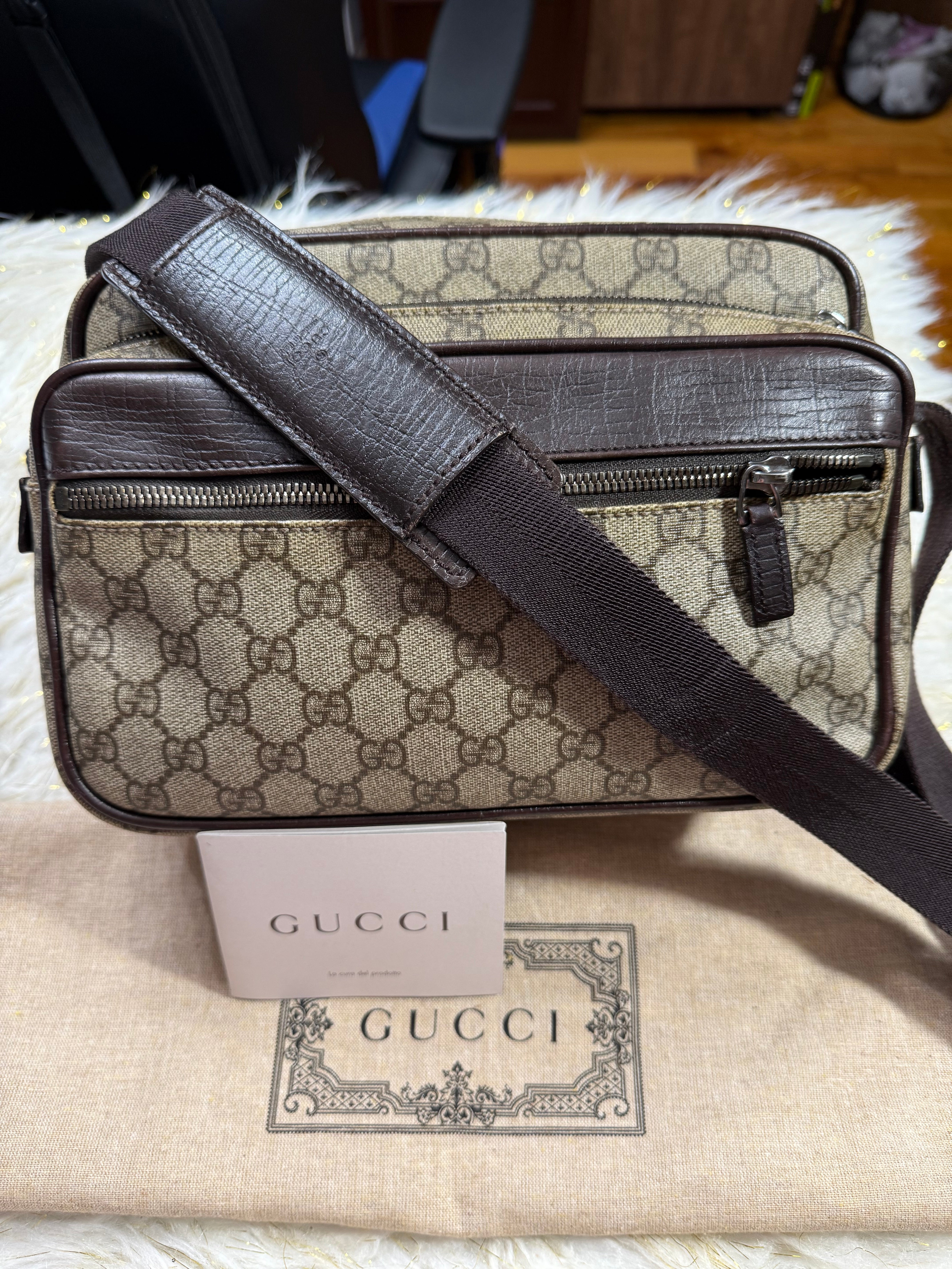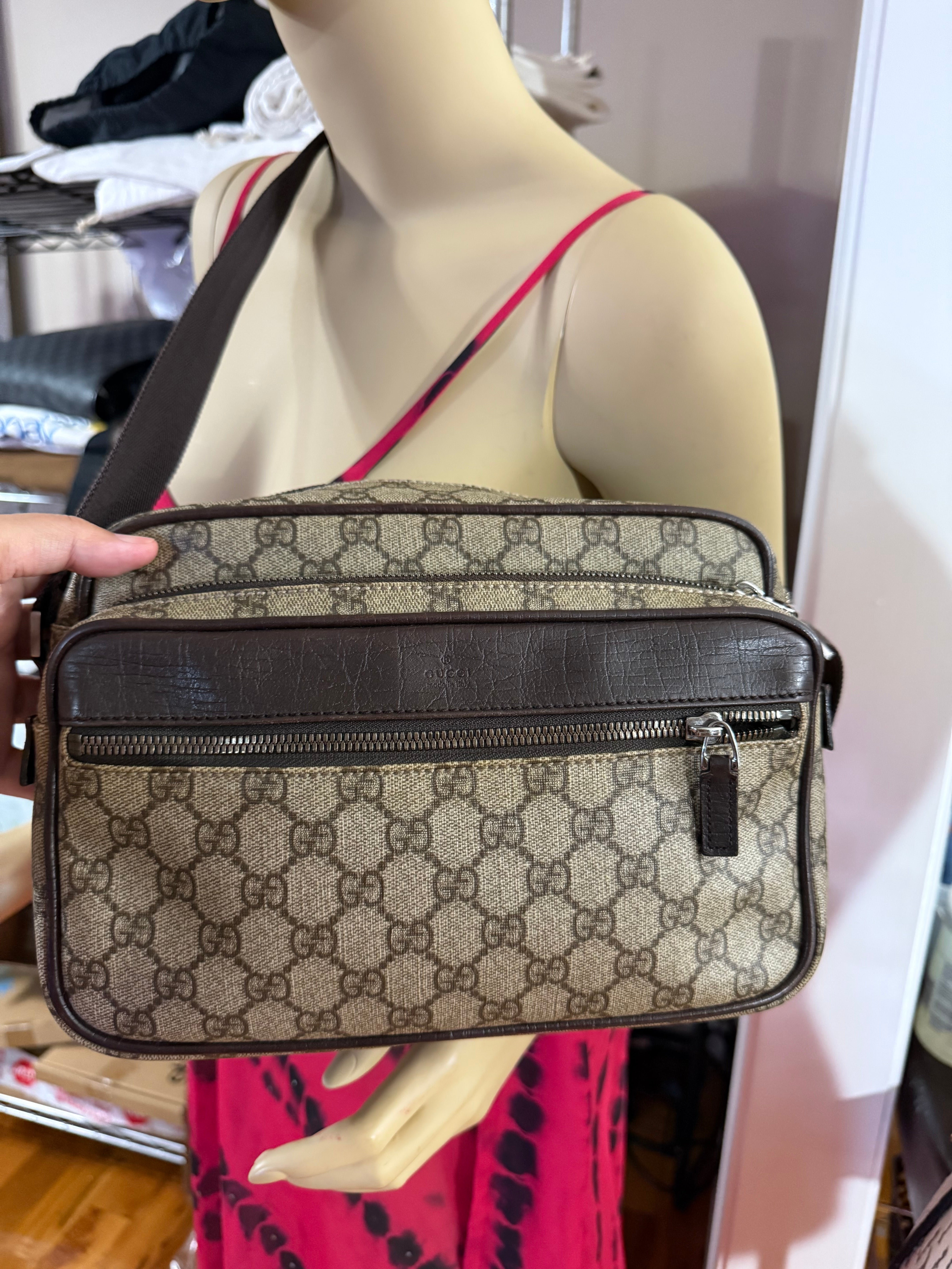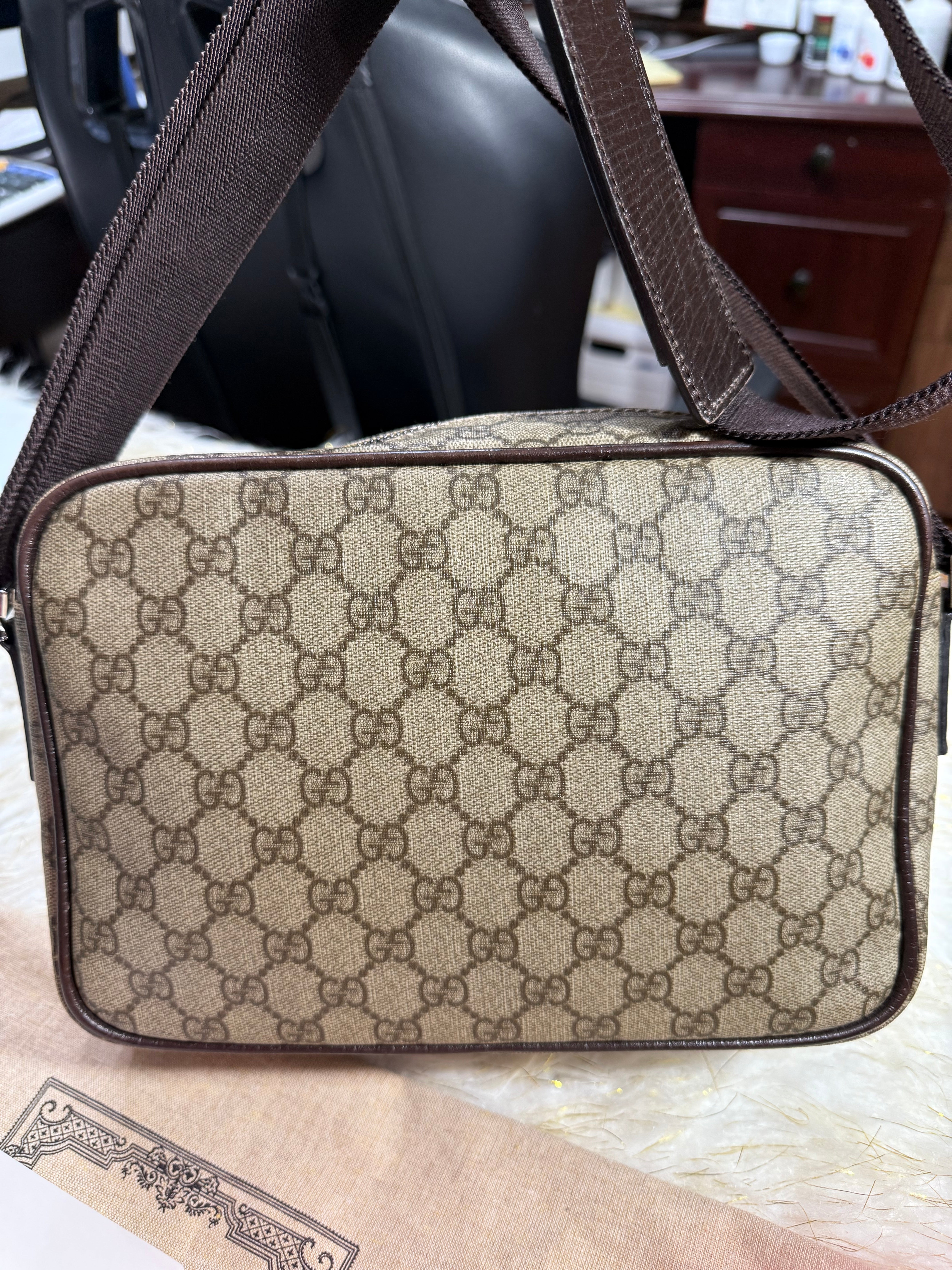 Gucci GG Brown Messenger monogram with duster included. Canvas leather Cross-bag Shoulder Cross bag .
