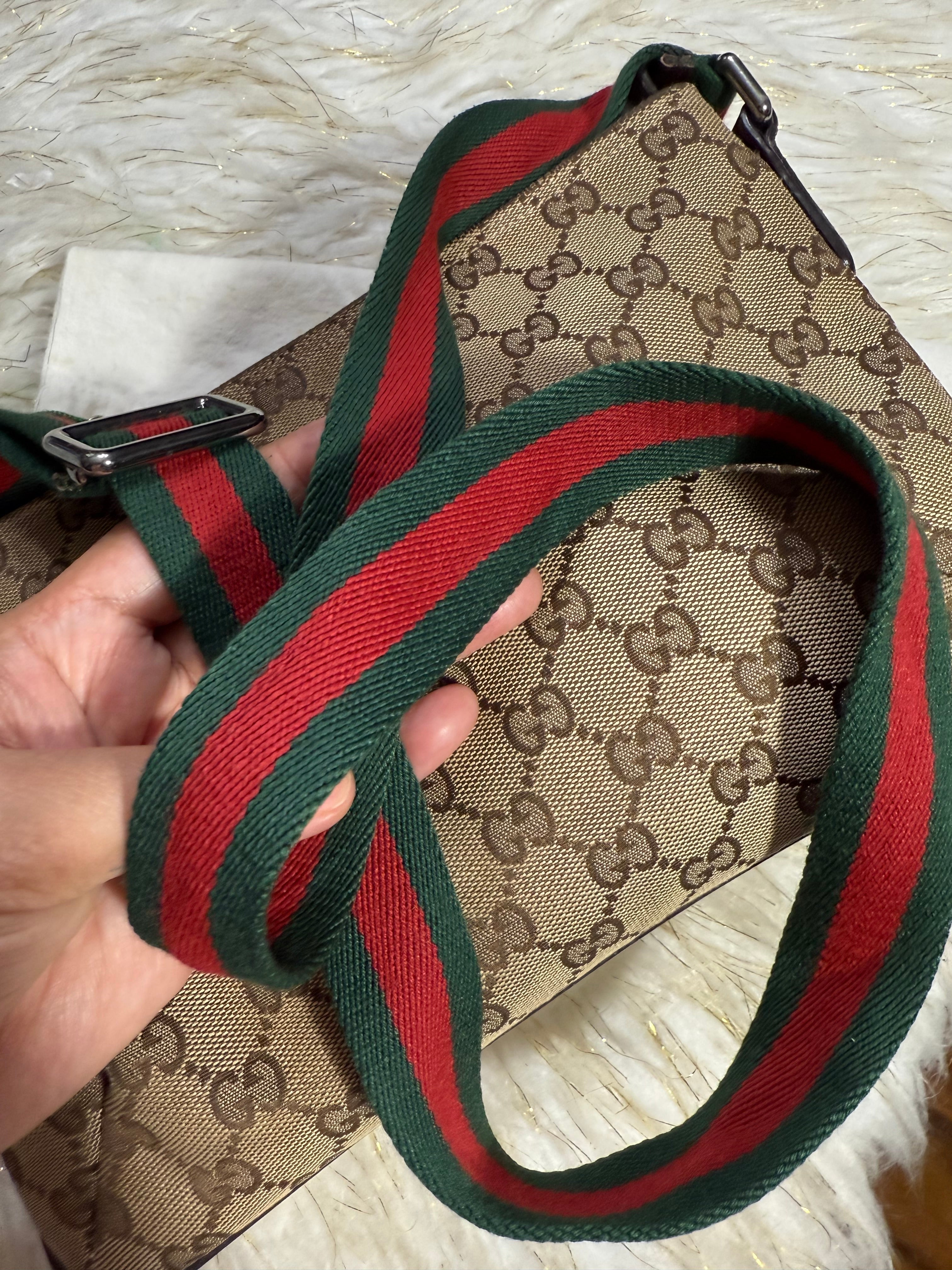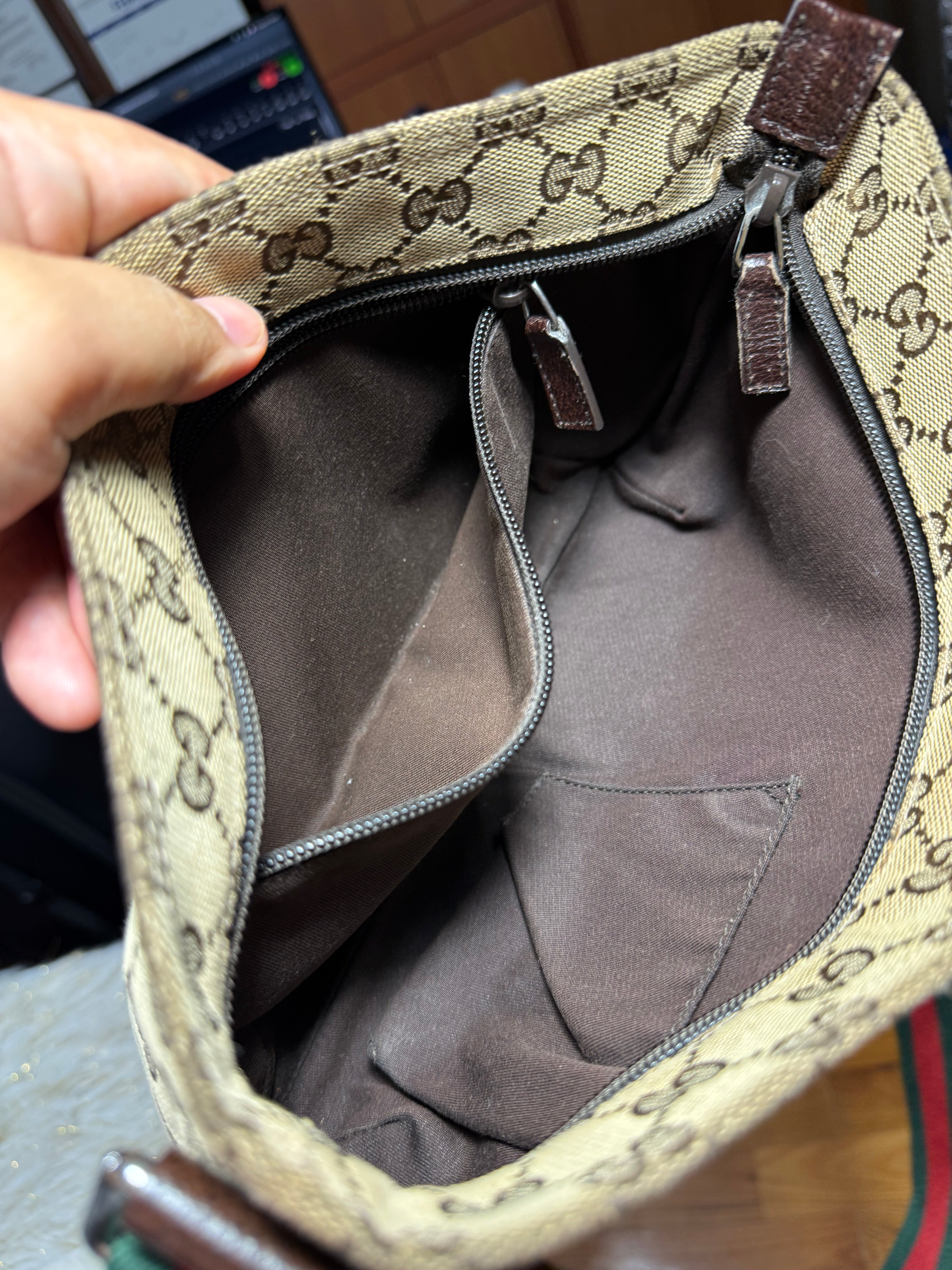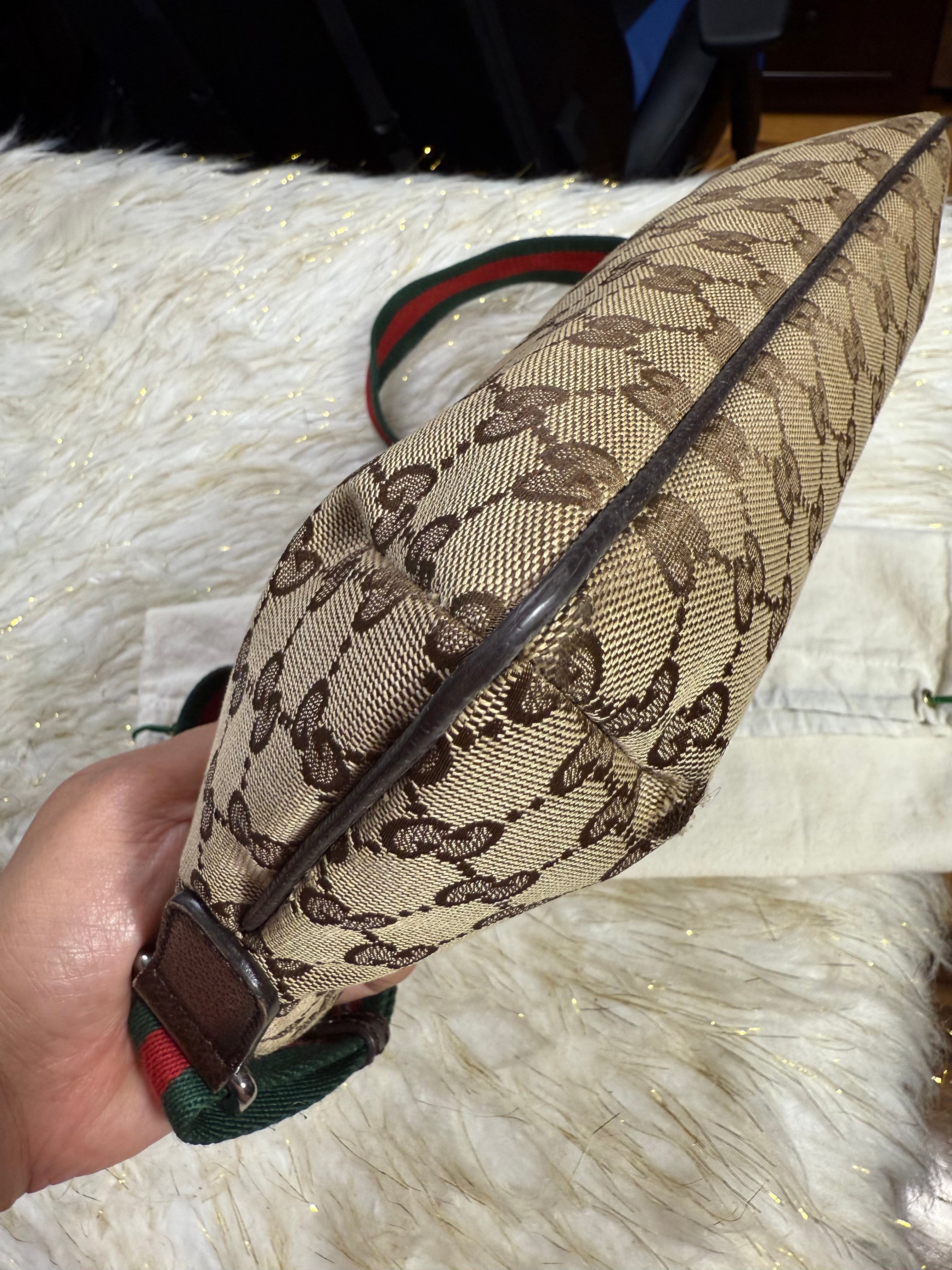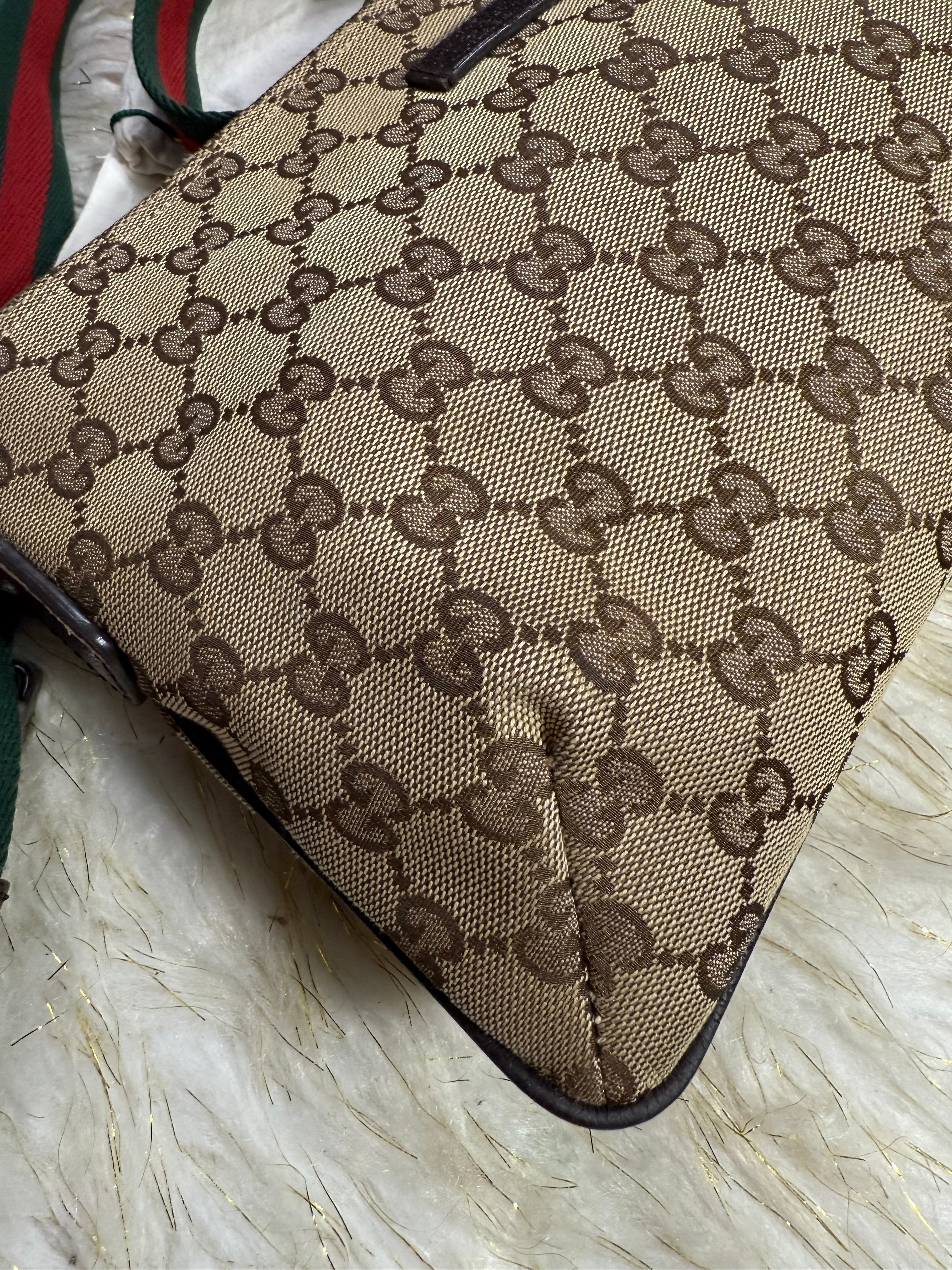 Authentic Preloved Beautiful Gucci Sherry line Canvas Cross bag Messenger w/ Dustbag, medium size