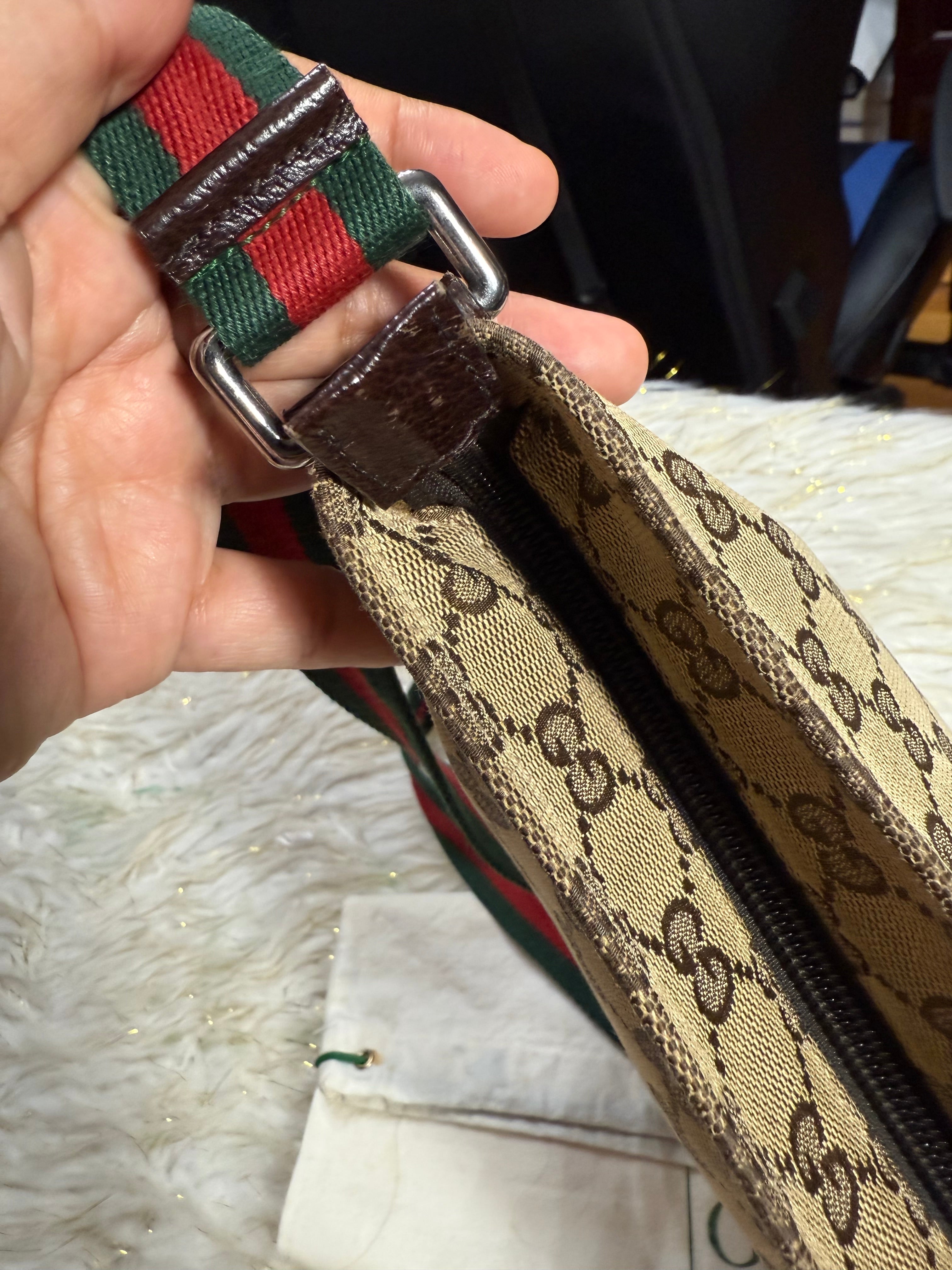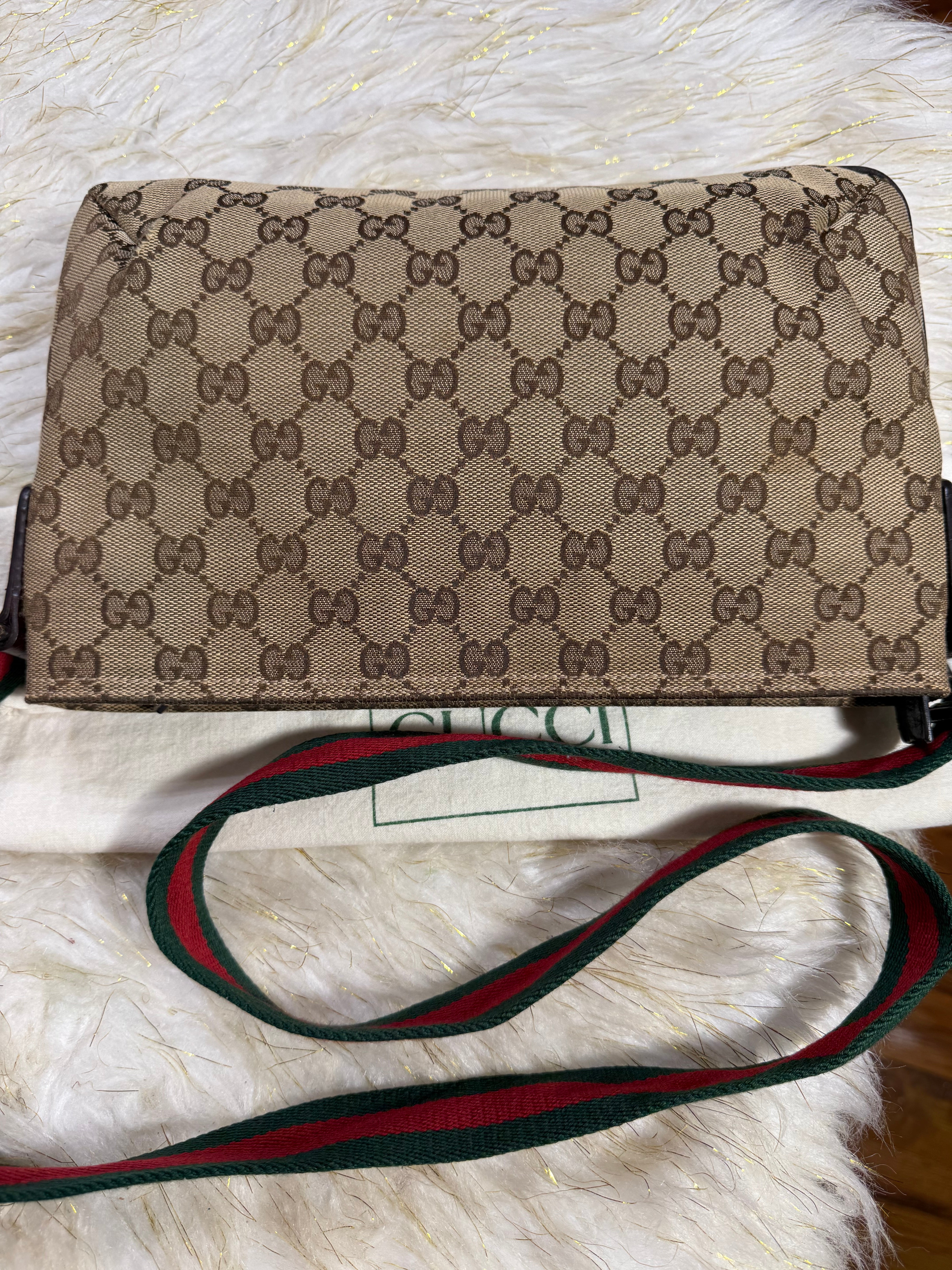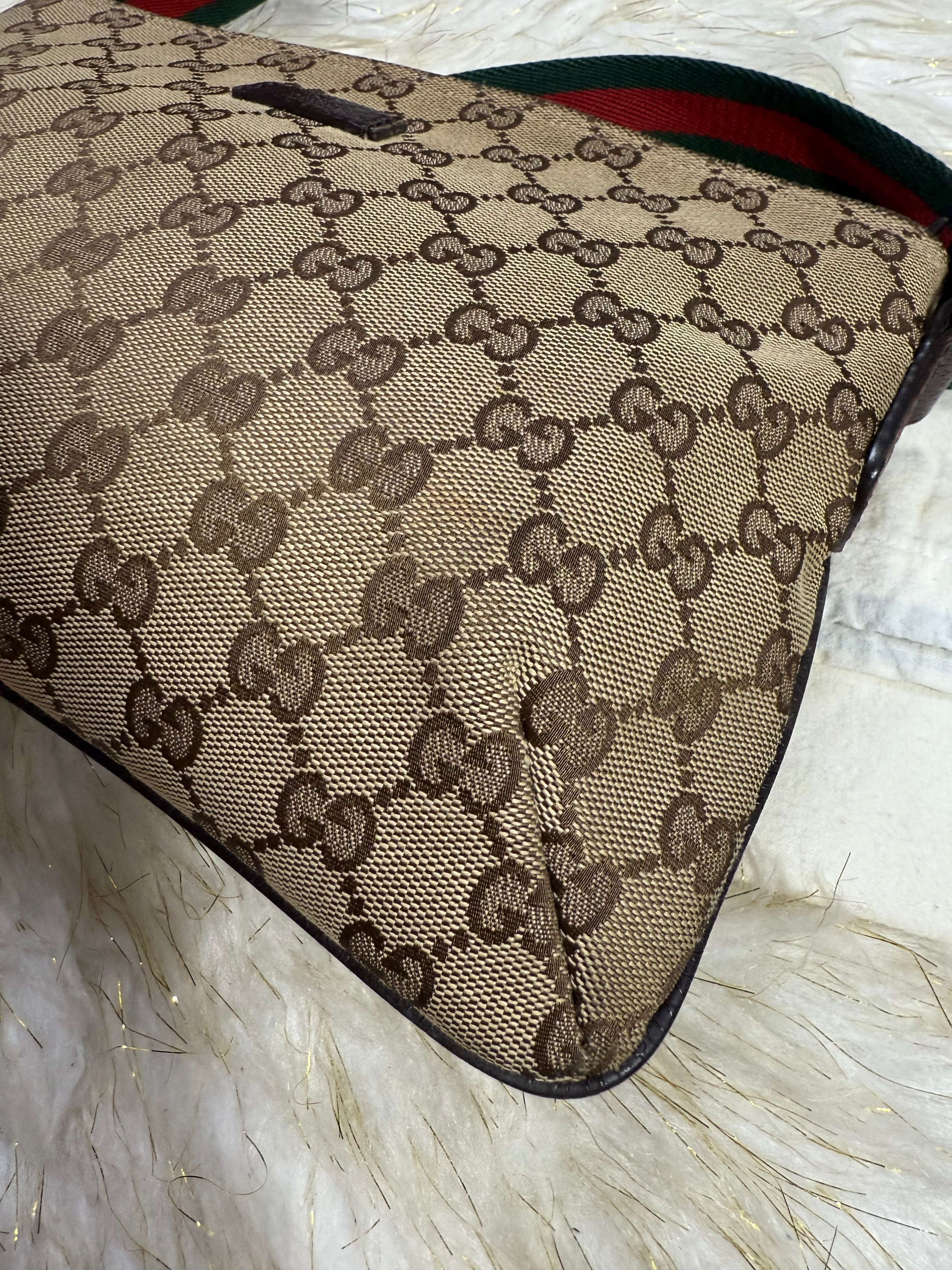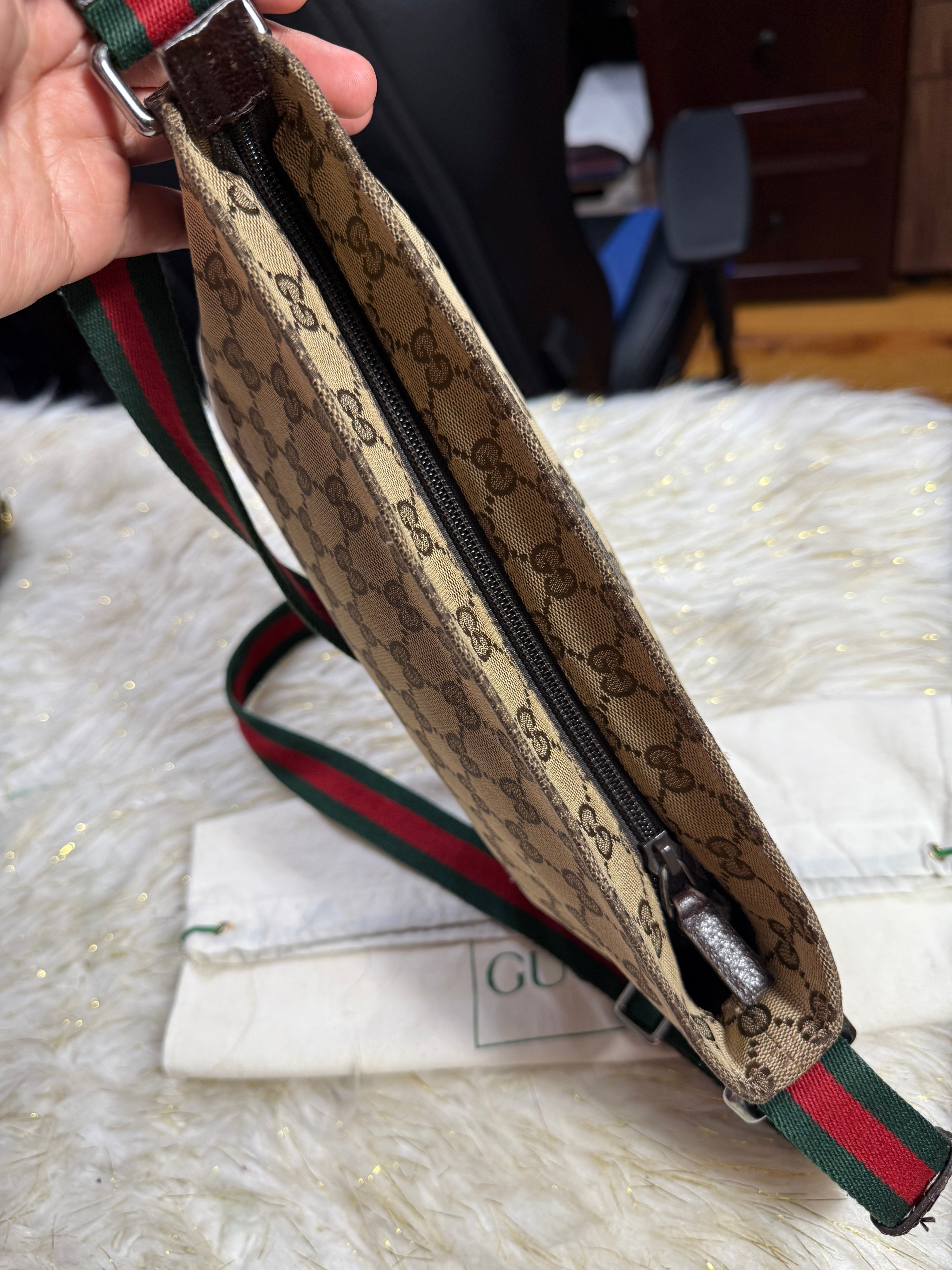 Authentic Preloved Beautiful Gucci Sherry line Canvas Cross bag Messenger w/ Dustbag, medium size