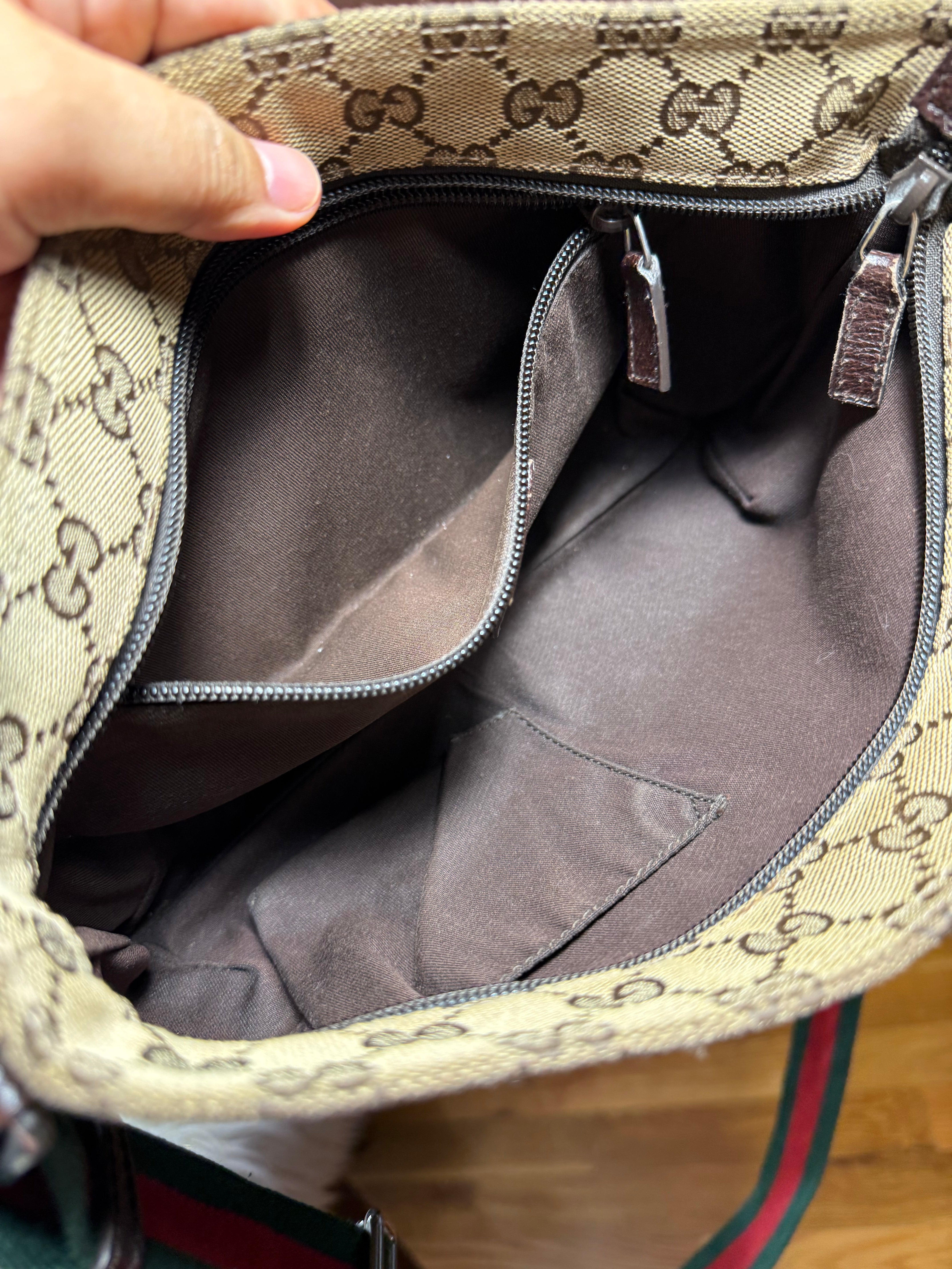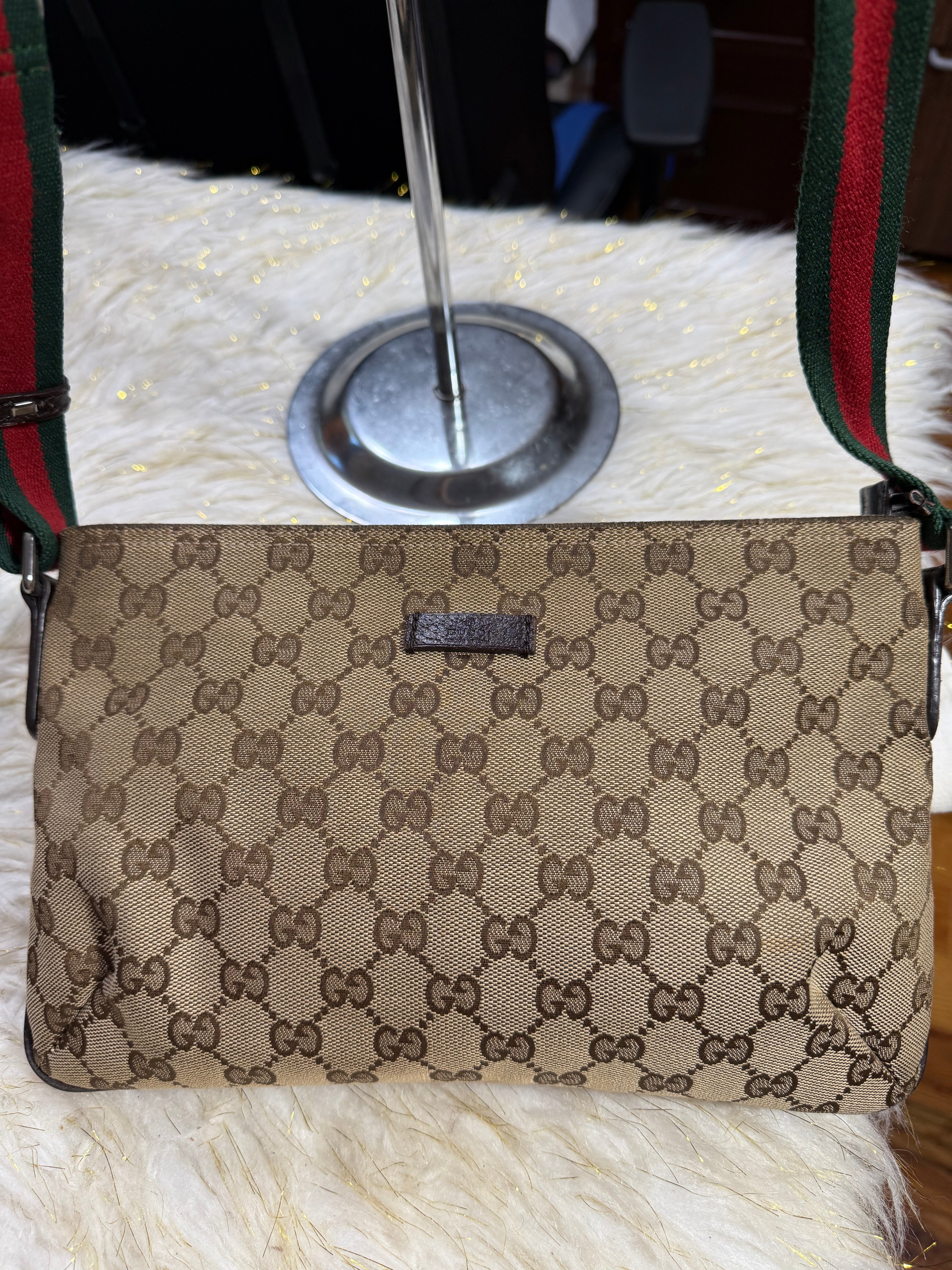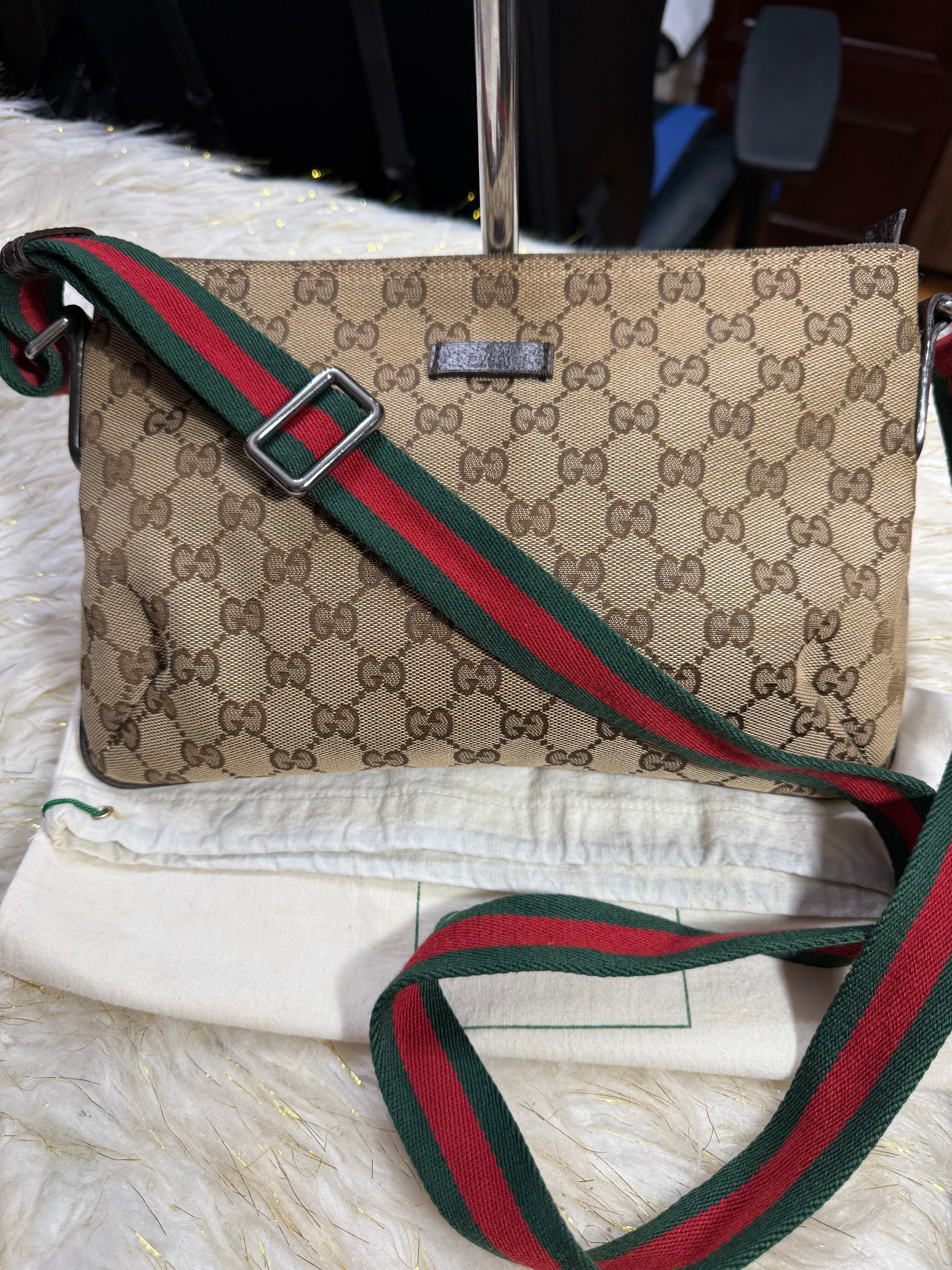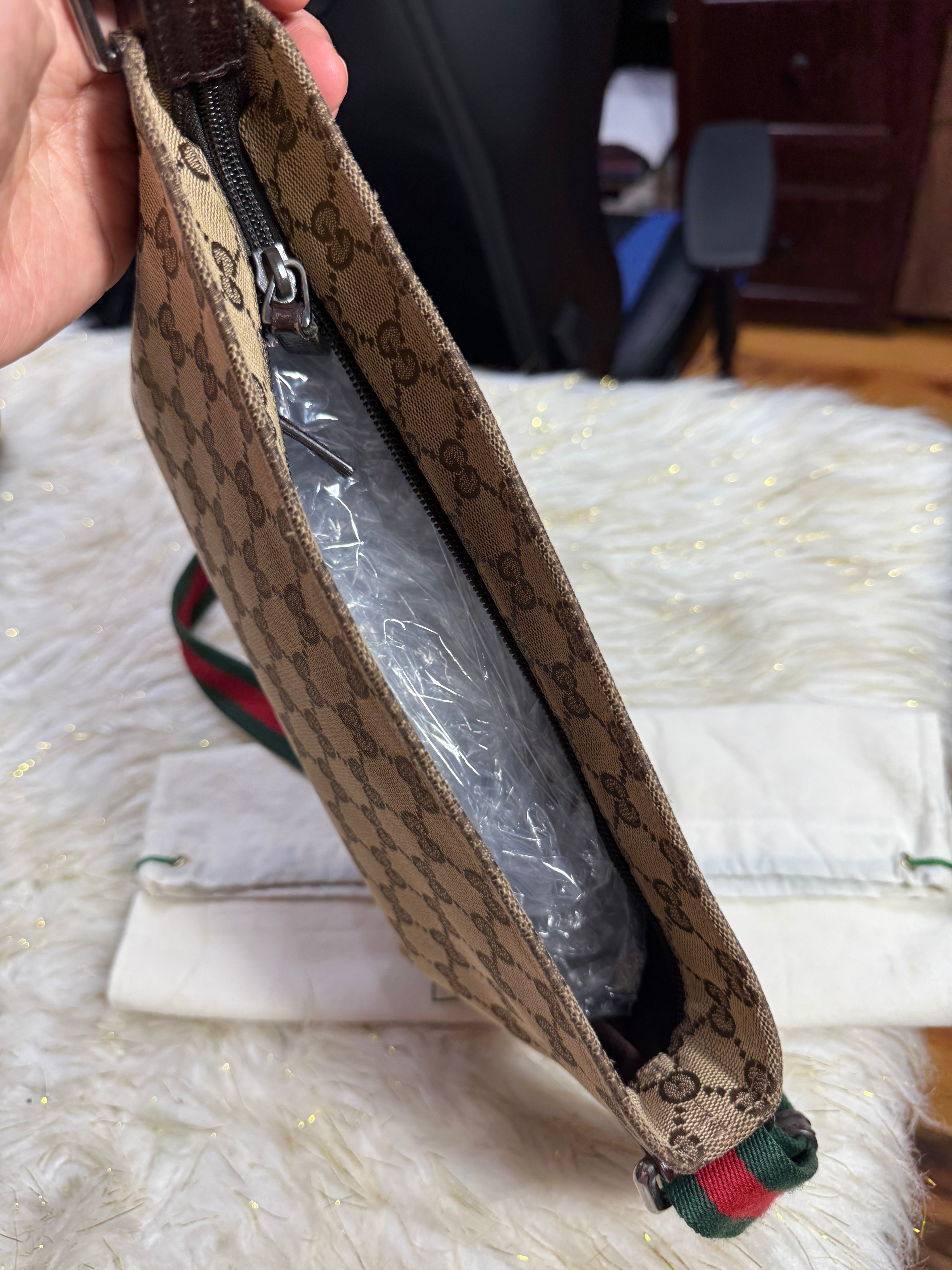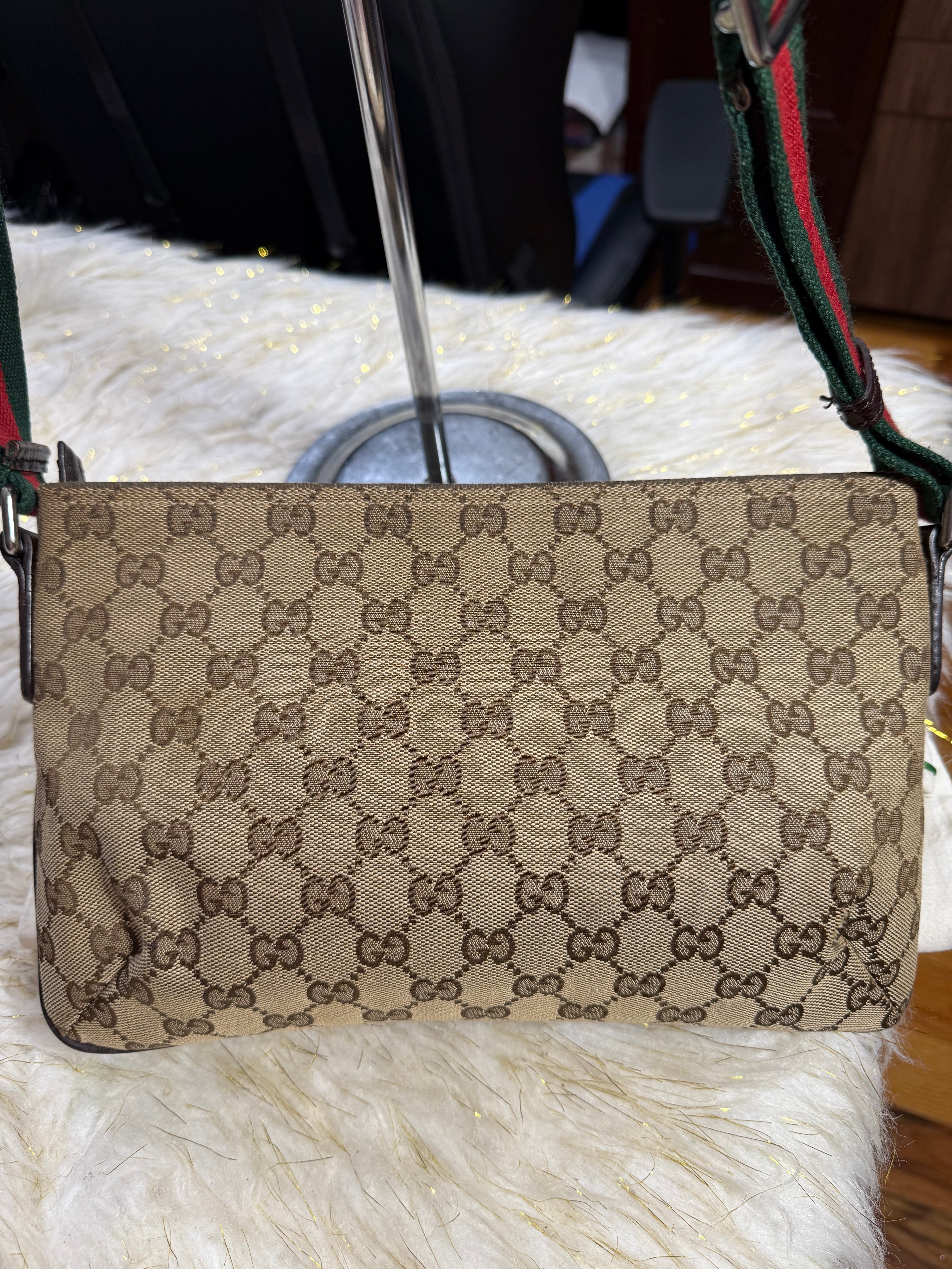 Authentic Preloved Beautiful Gucci Sherry line Canvas Cross bag Messenger w/ Dustbag, medium size