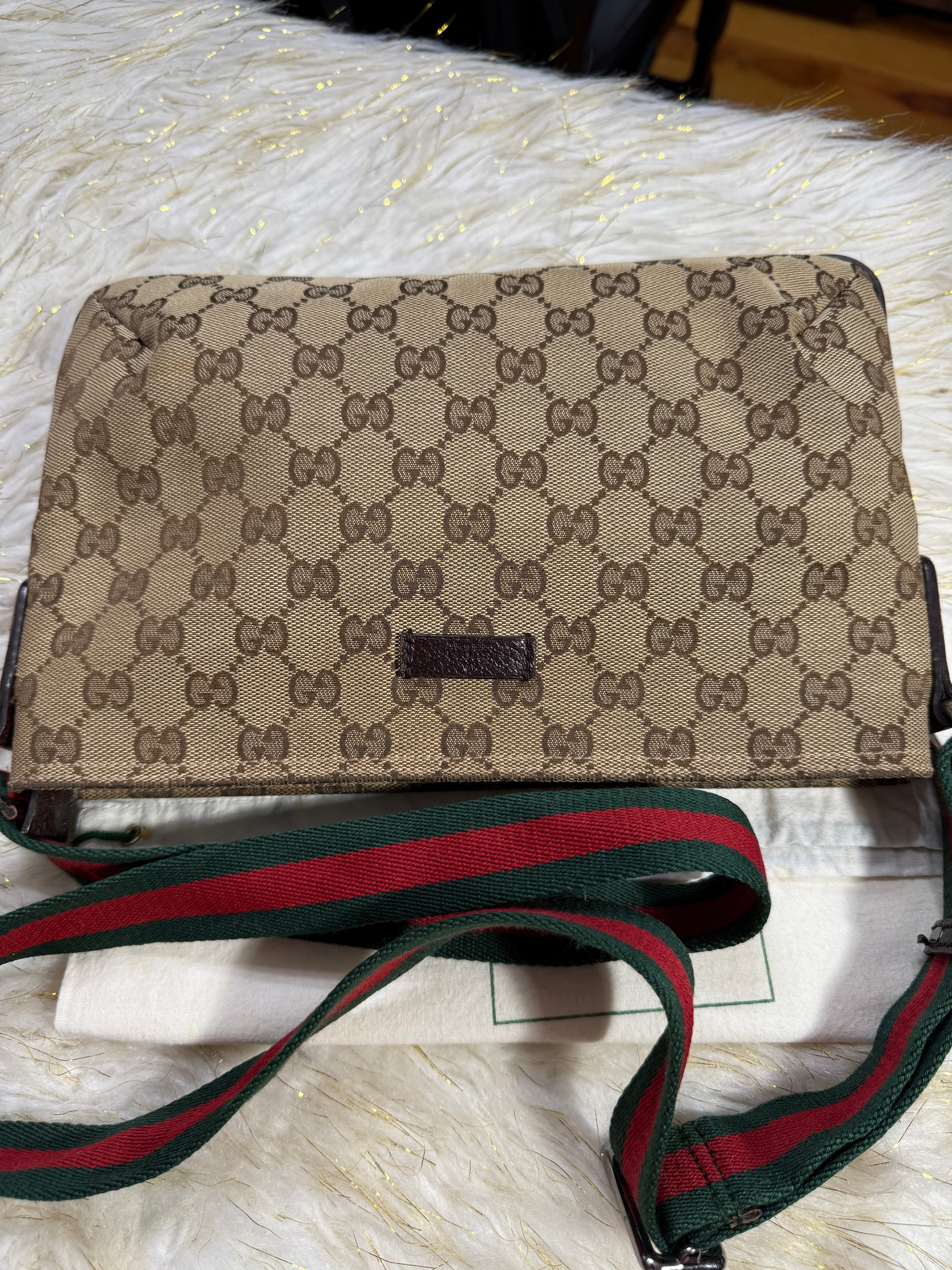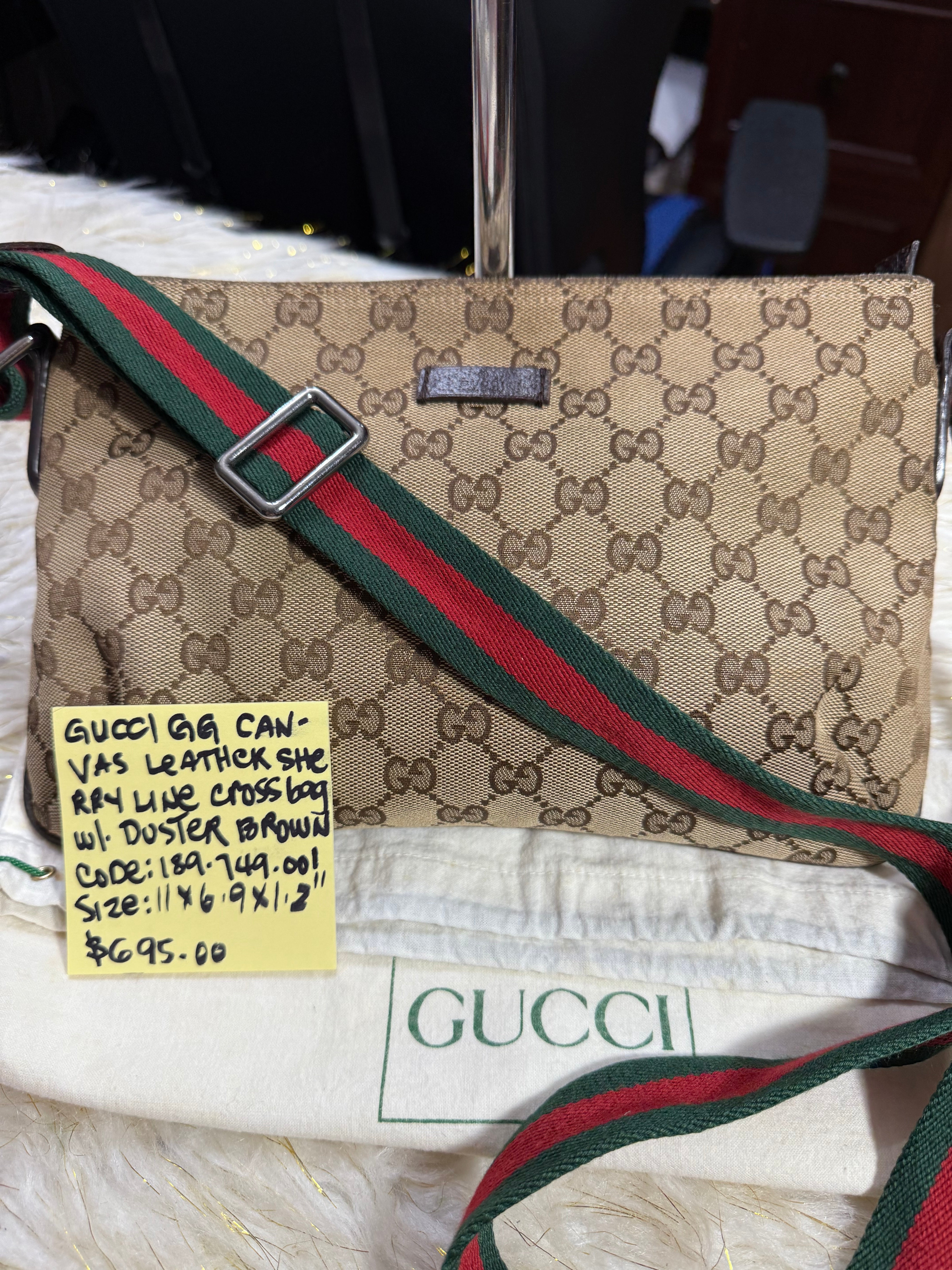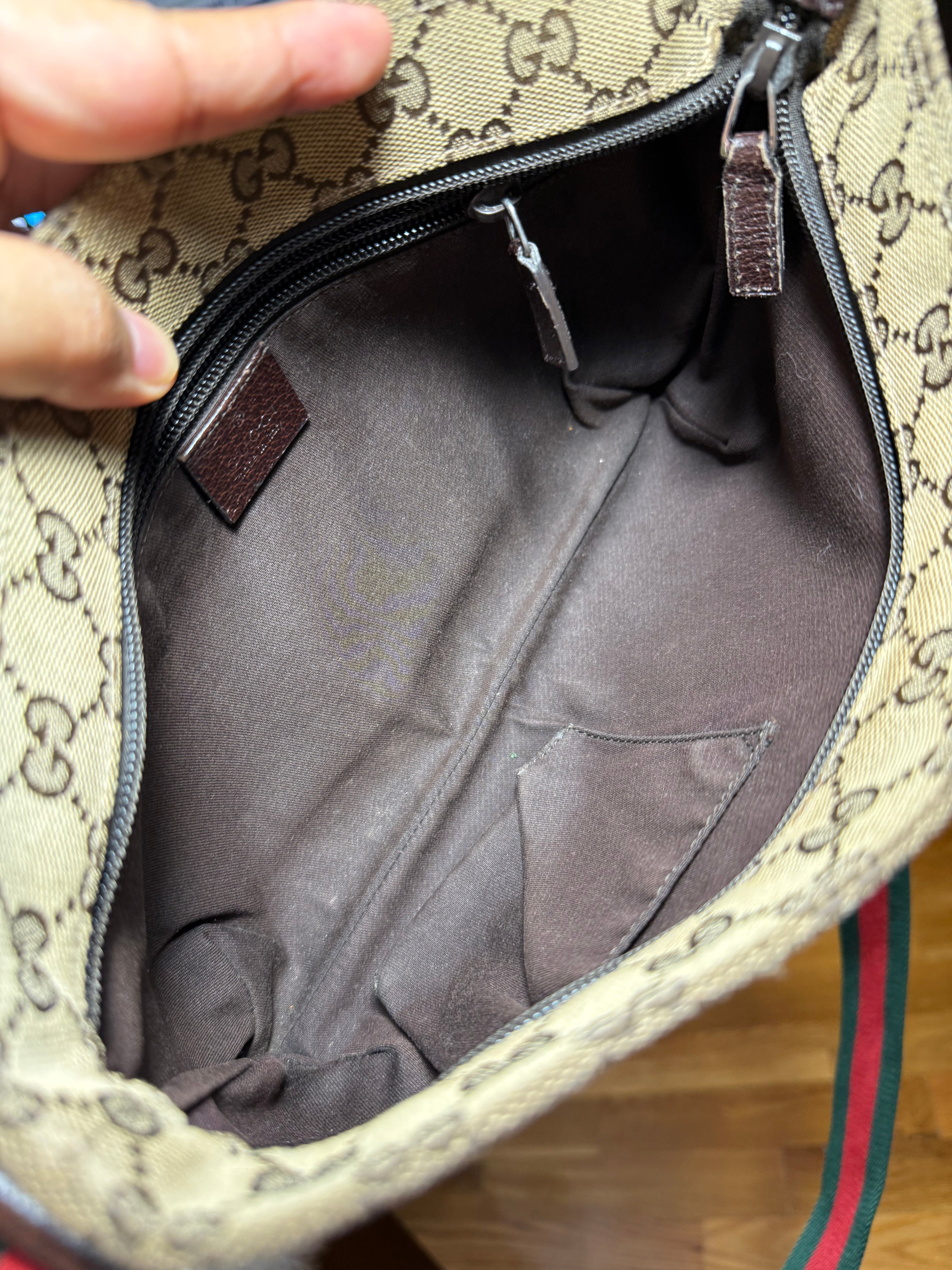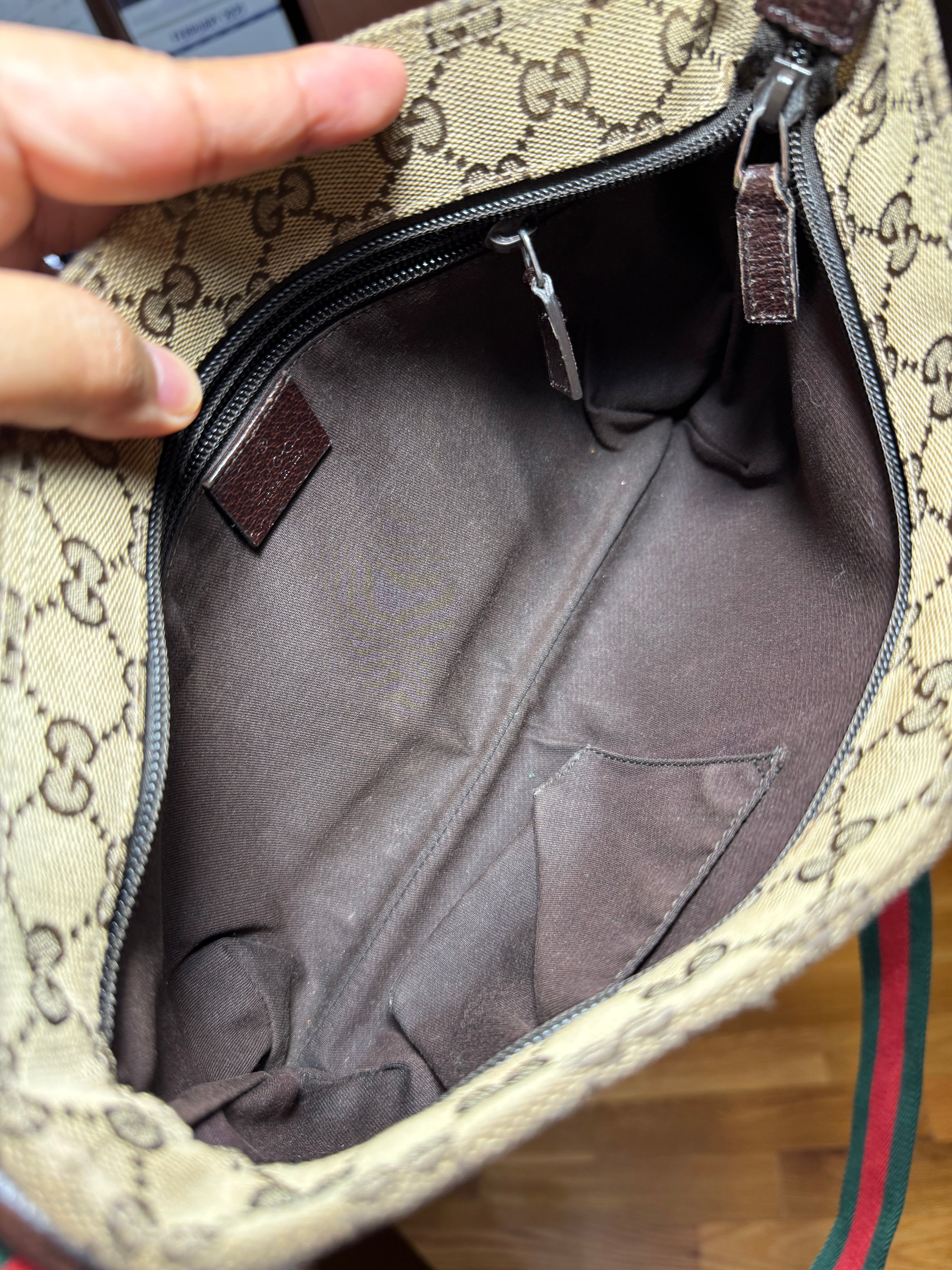 Authentic Preloved Beautiful Gucci Sherry line Canvas Cross bag Messenger w/ Dustbag, medium size