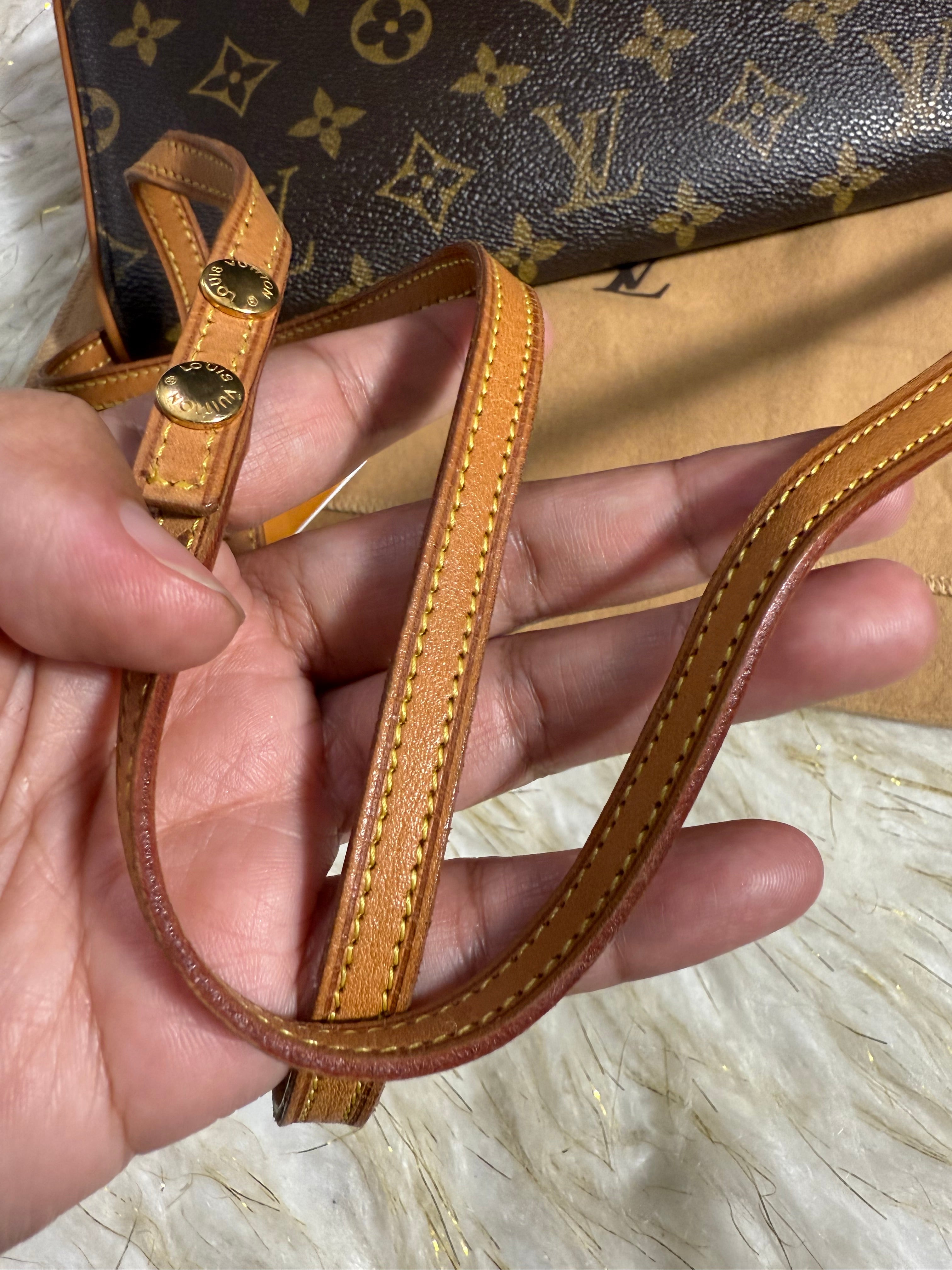 Elegant Louis Vuitton Sling Shoulder bag in classic brown monogram. Perfect for adding a touch of luxury to any outfit.