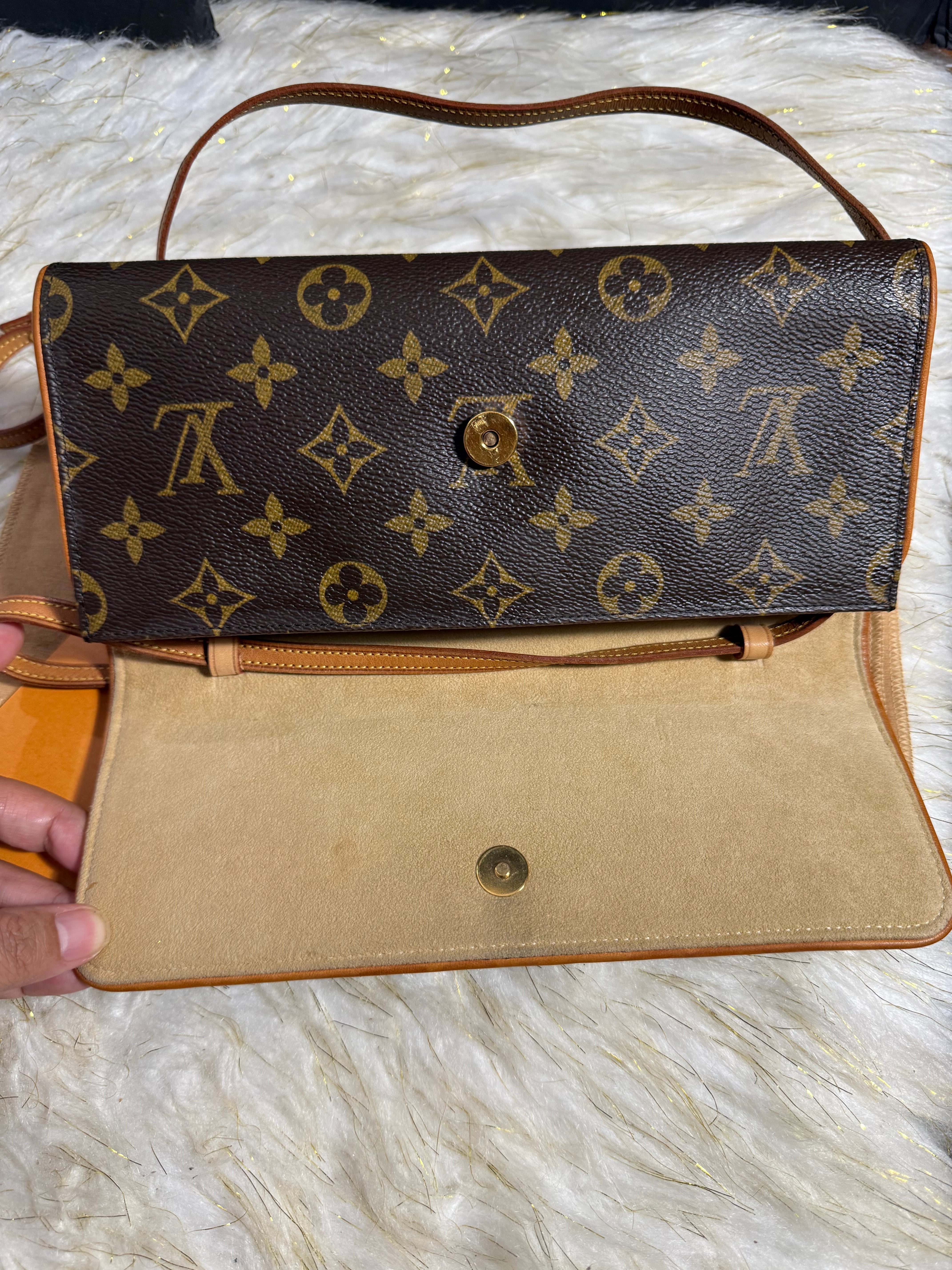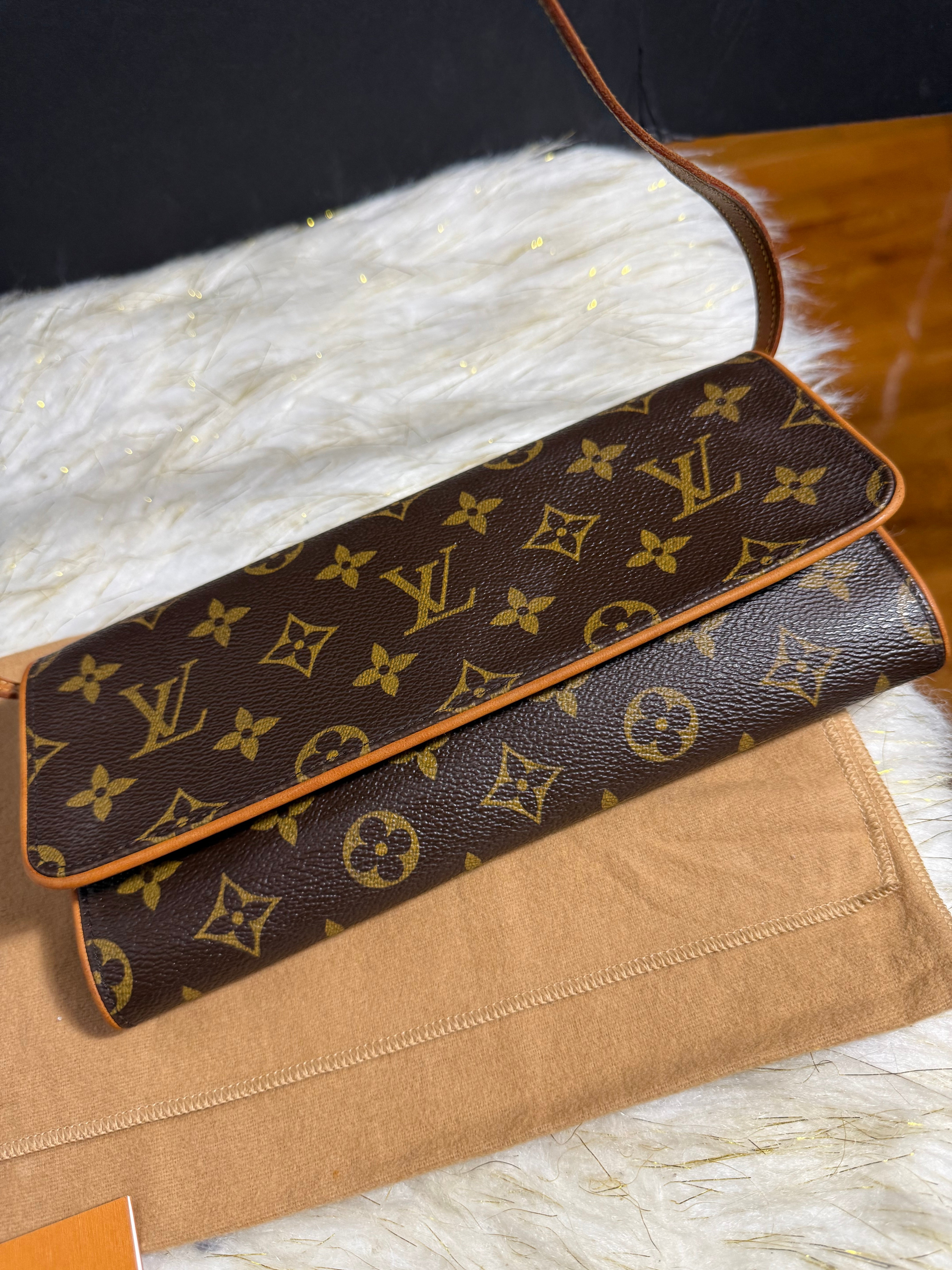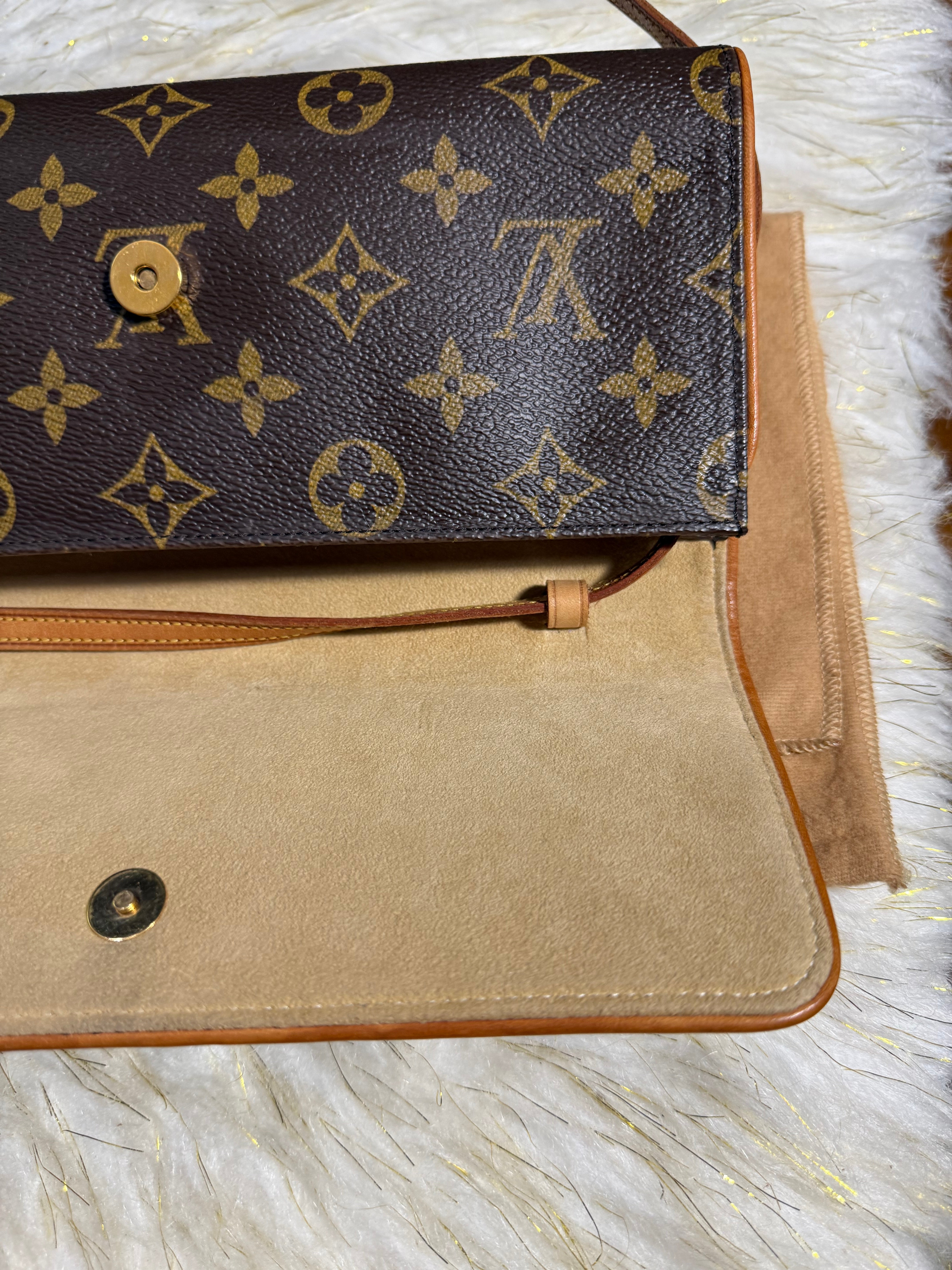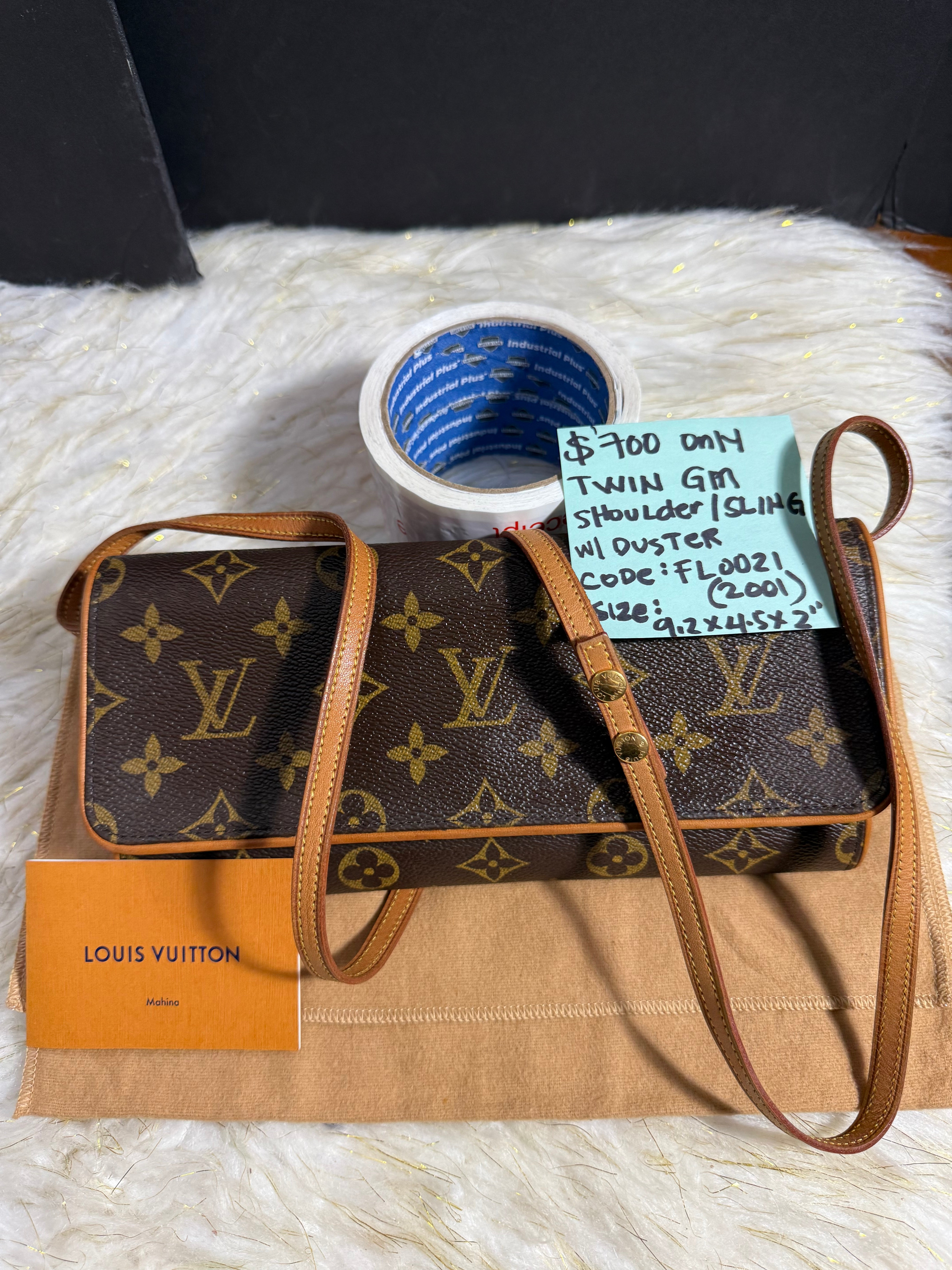Auth. VINTAGE Louis Vuitton Twin GM Monogram handbag Sling shoulder bag with Duster. Authentic only or money back.