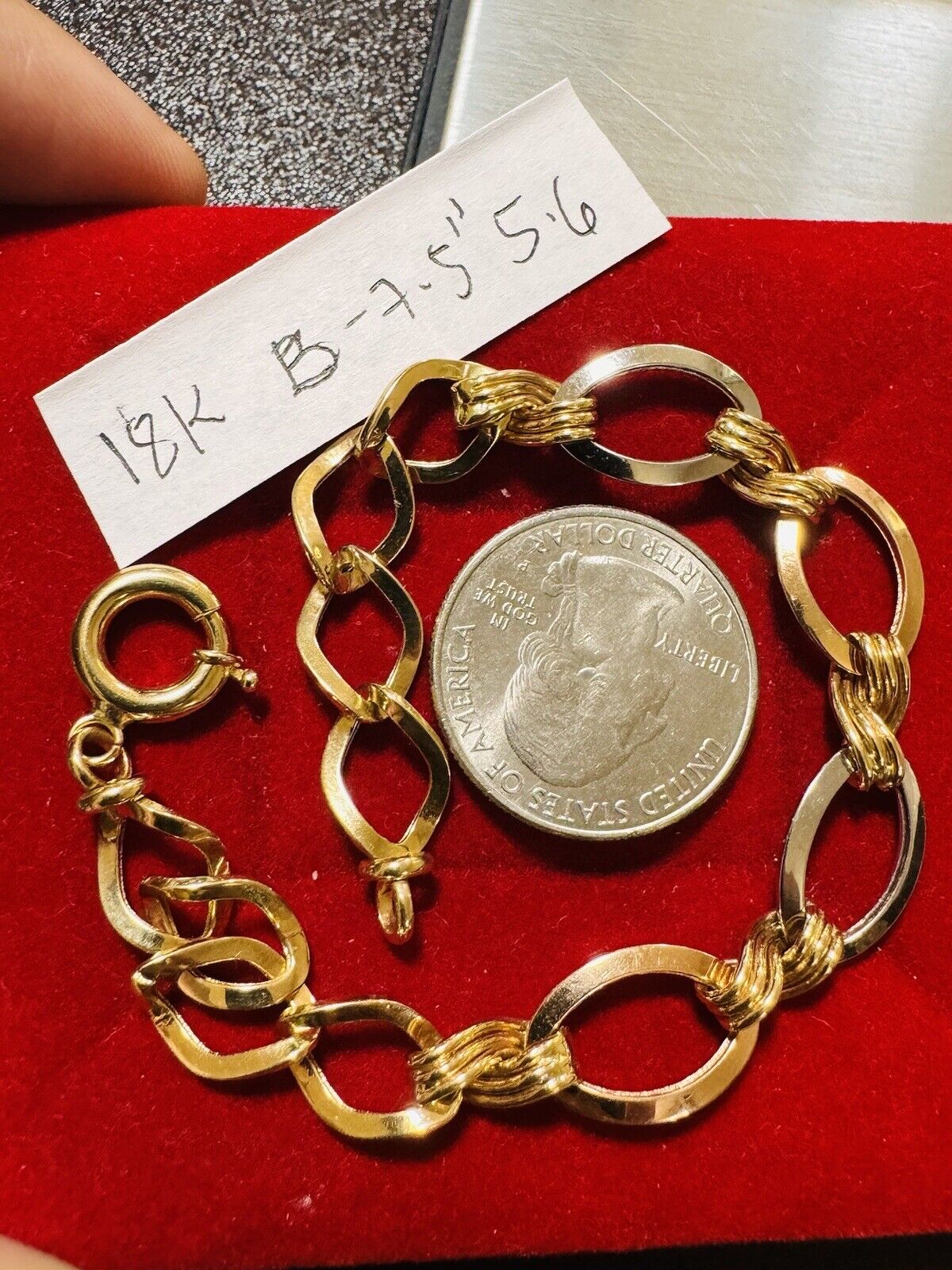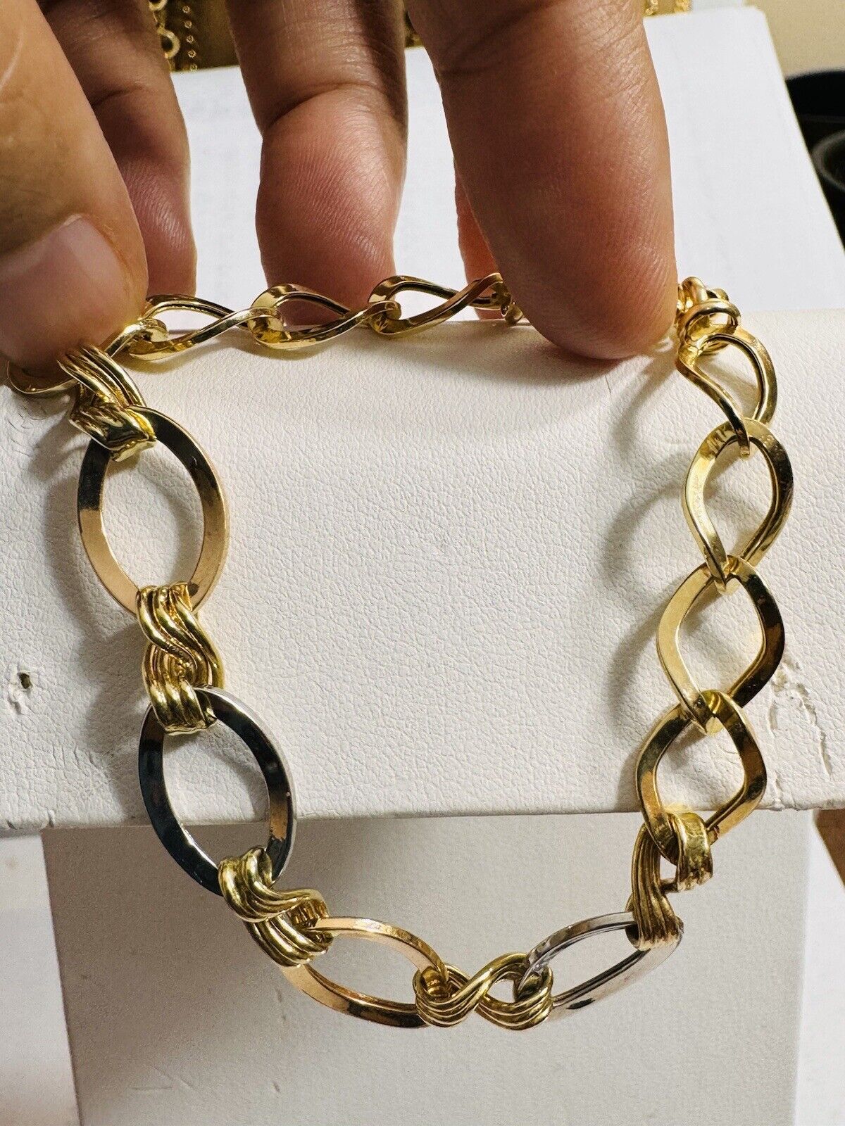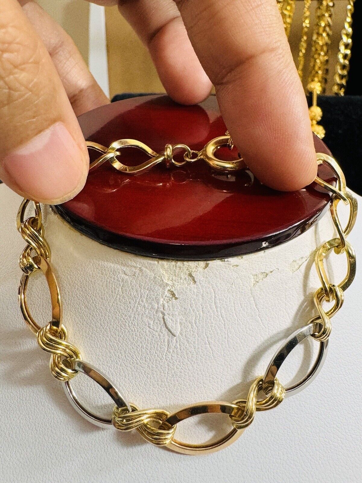 18K 750 Real Gold Cuban Curb Tricolors Bracelet 7.5” Long 9mm 5.6g