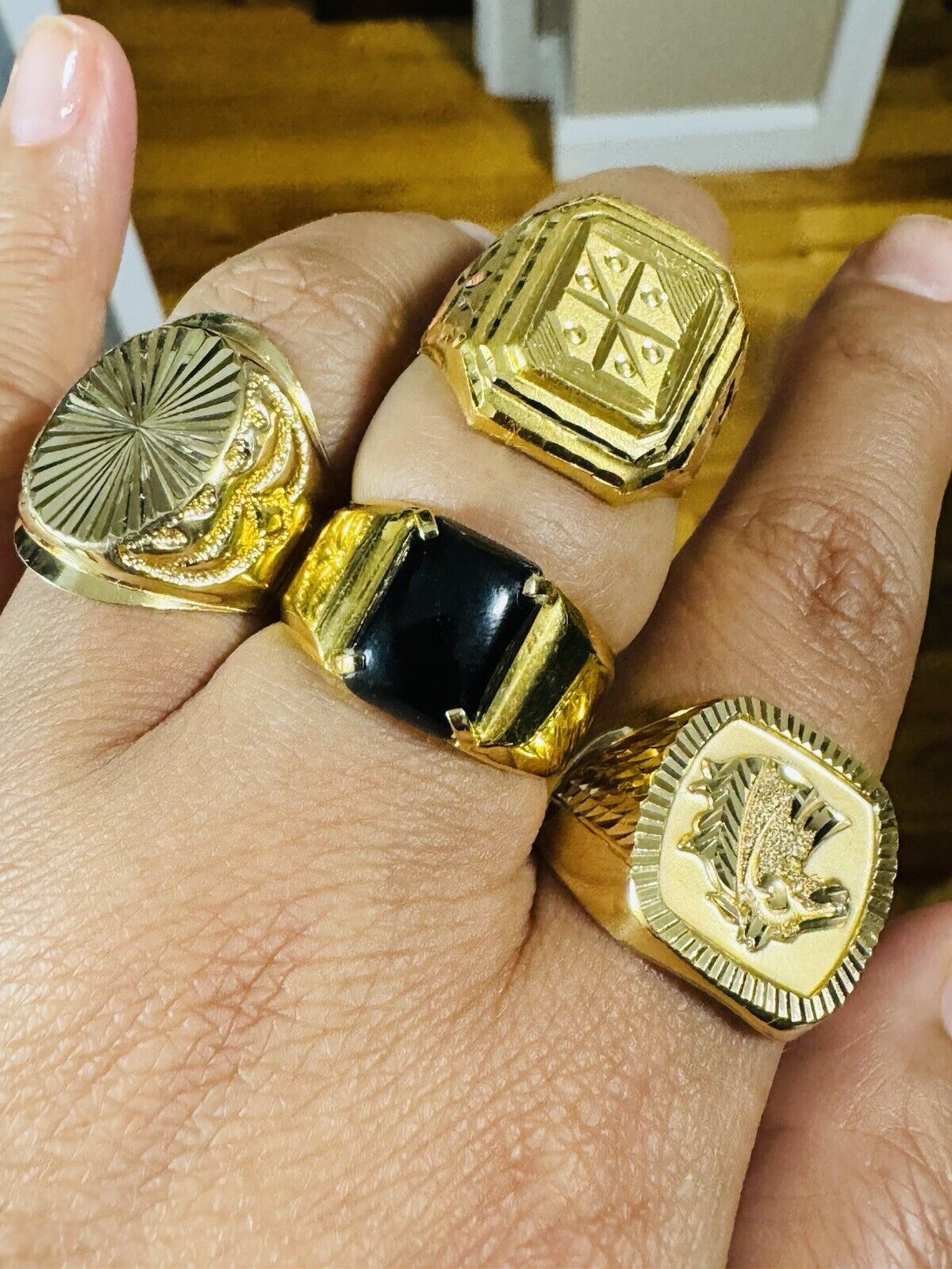 • You are buying New Beautiful 18K Fine 750 Saudi Real UAE Gold Mens Women’s Unique black stone Ring fits Size 9.5/10” 10.32 grams fast-ship