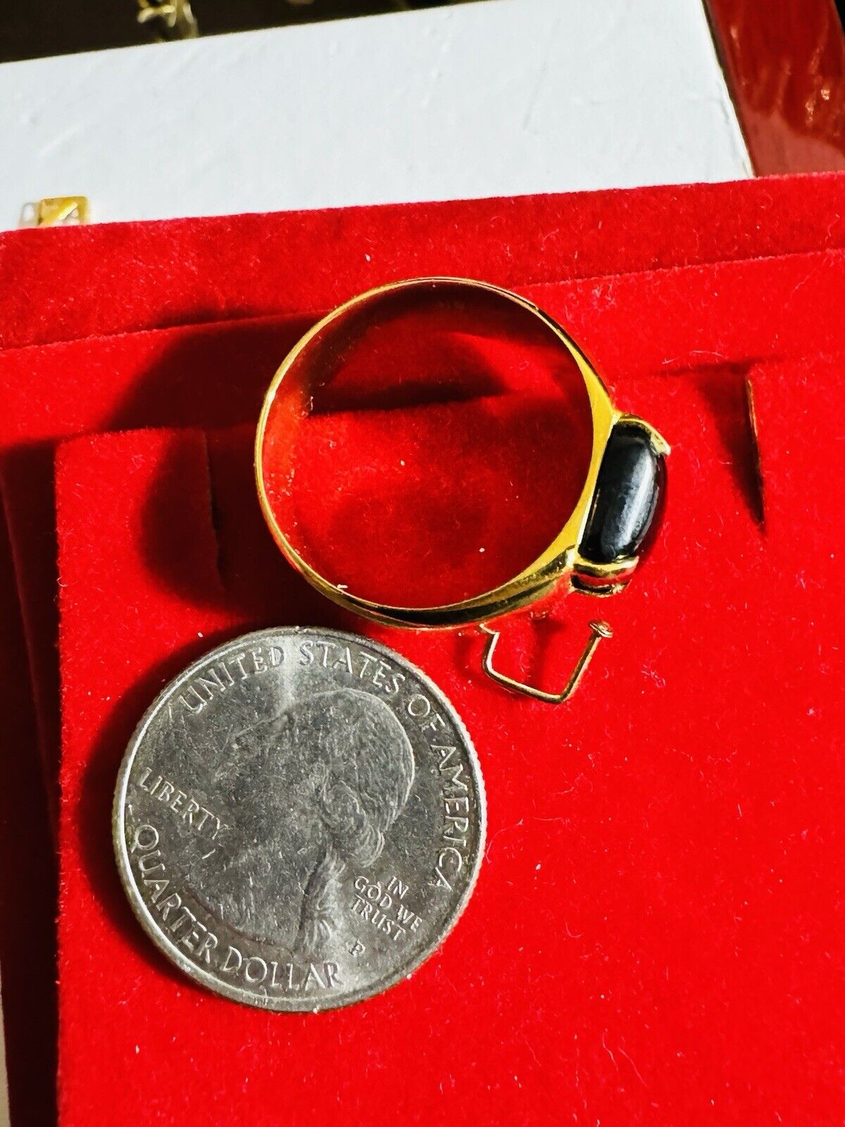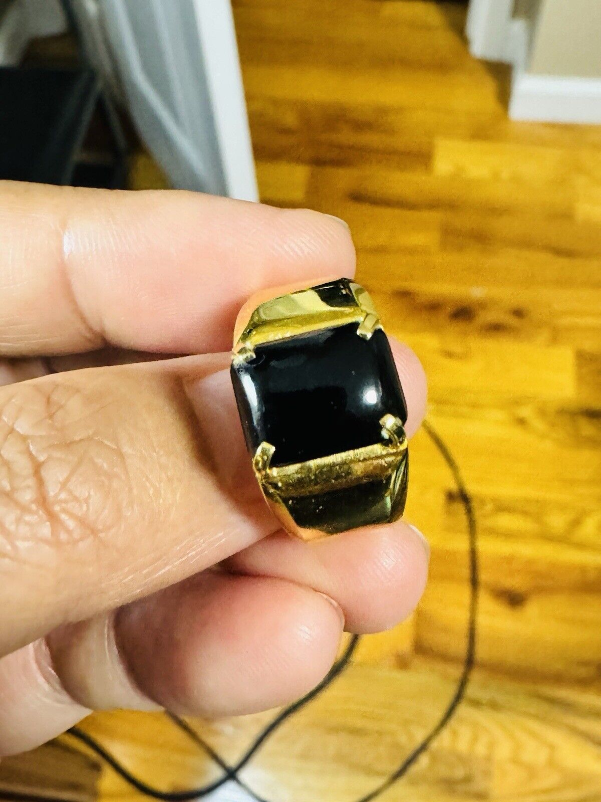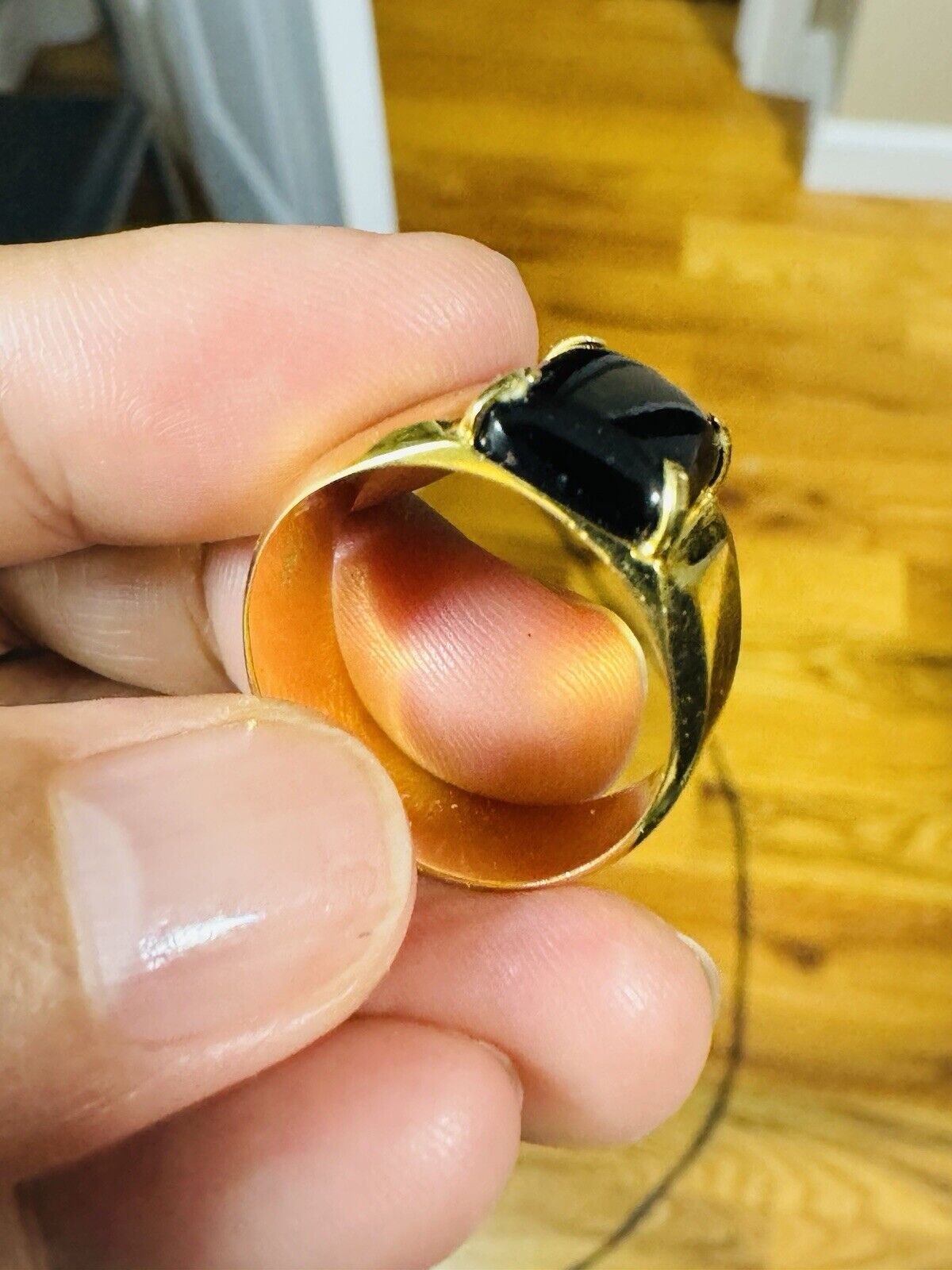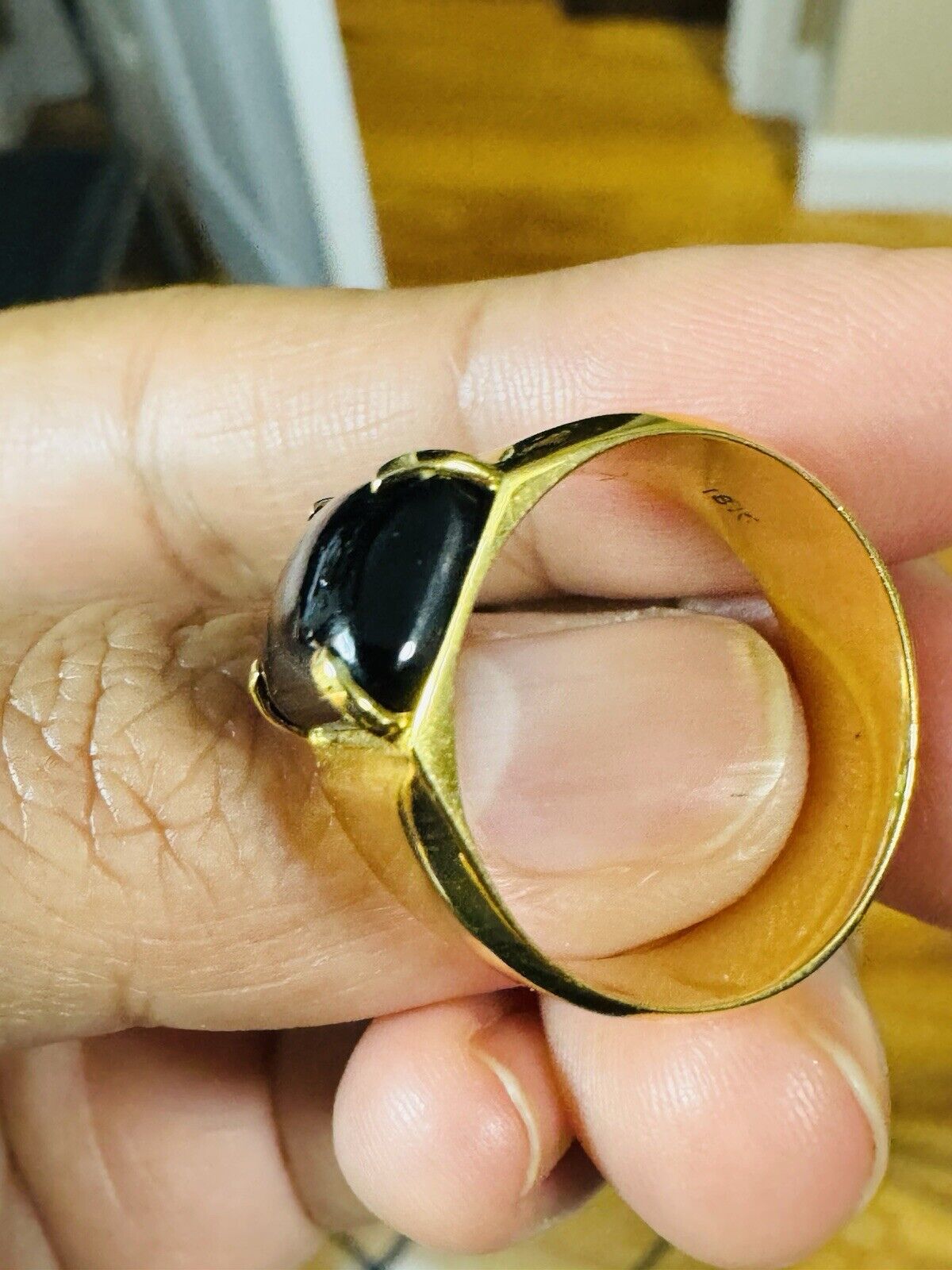 Solid 18K 18C 750 Real UAE Gold Black Stone Ring Size 9.5/10” 10.3g