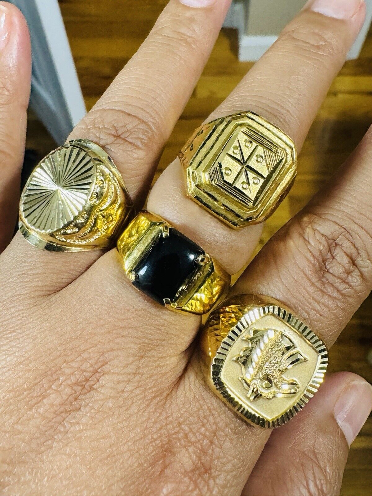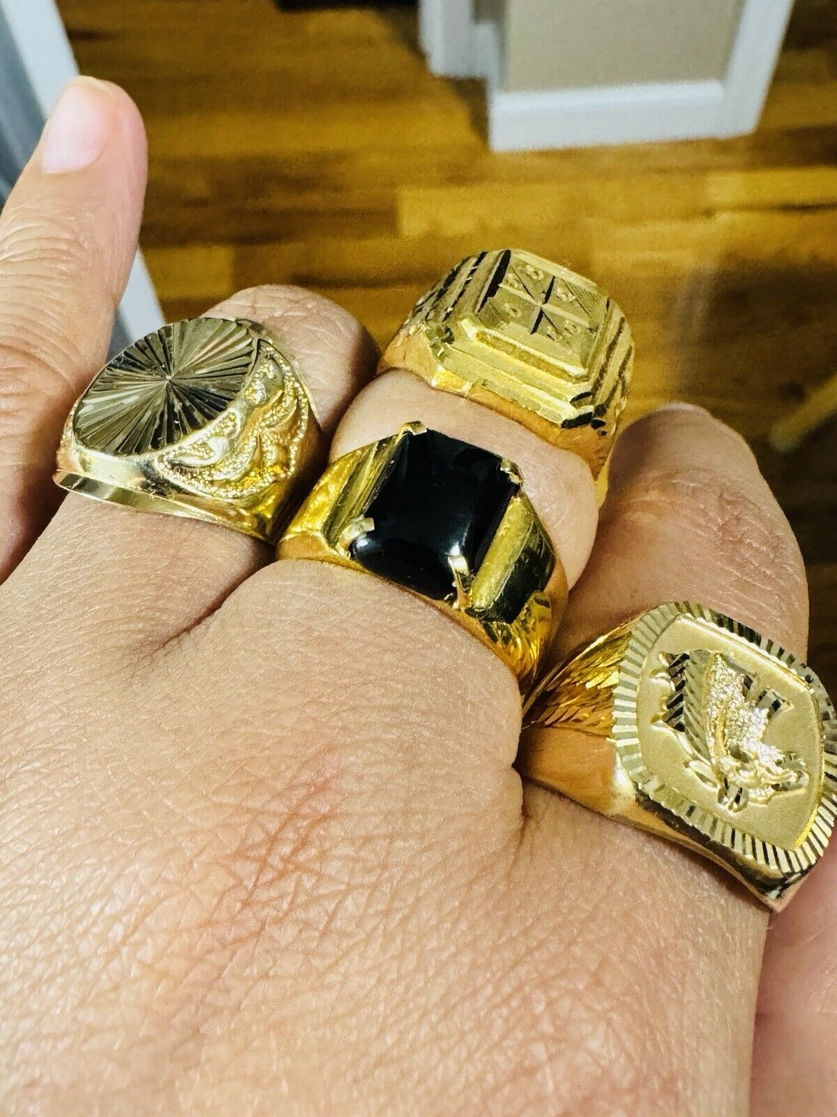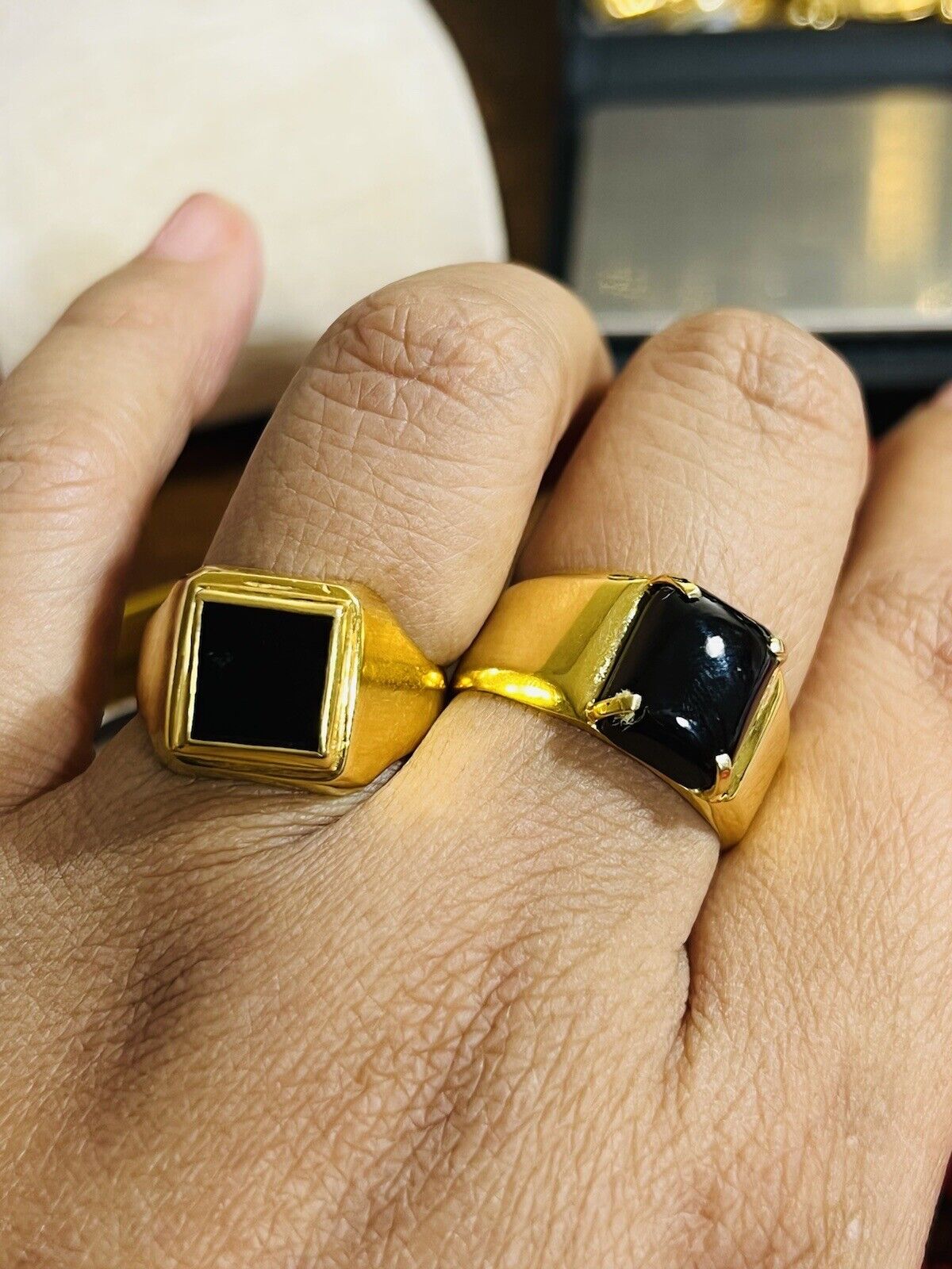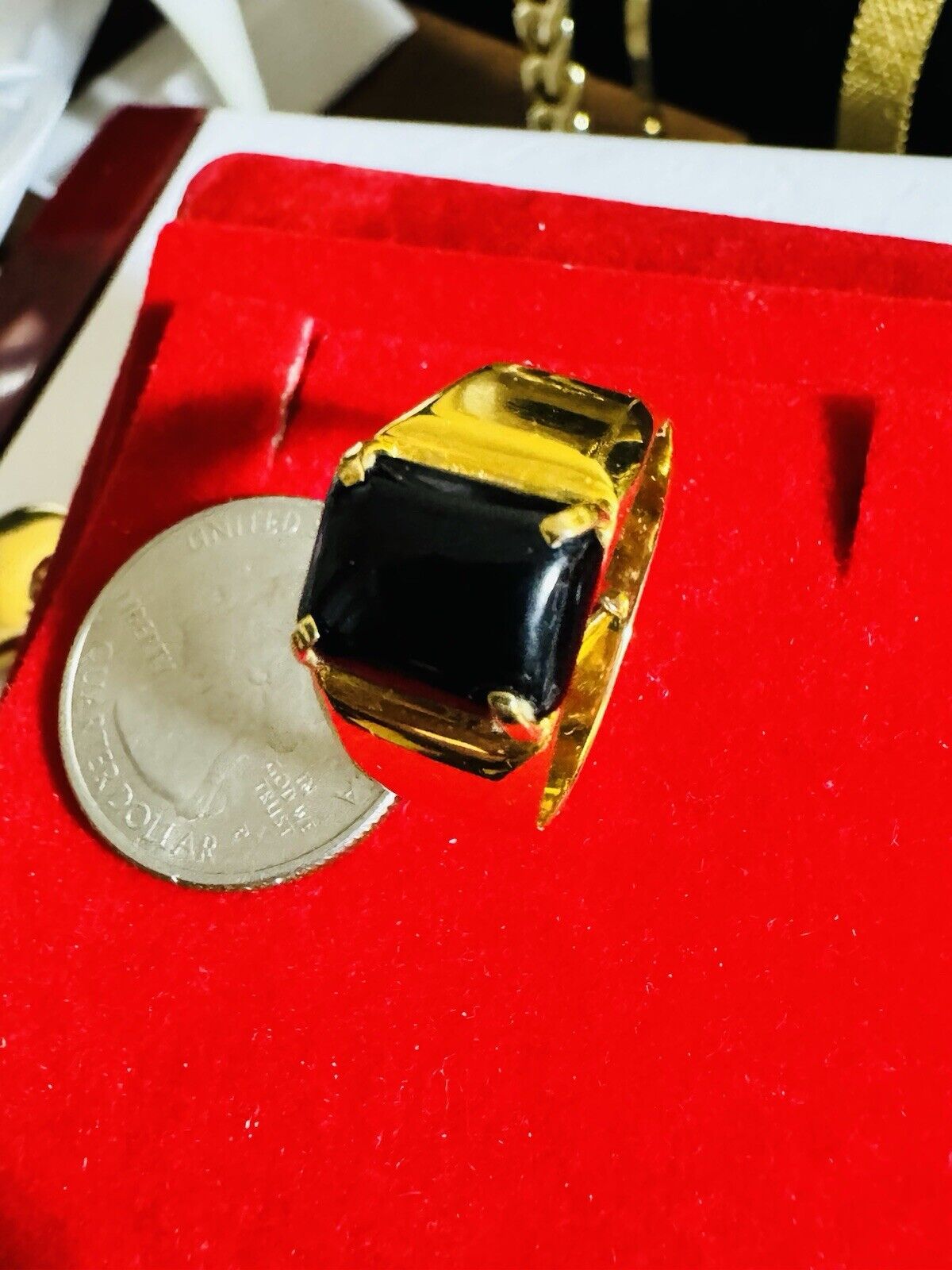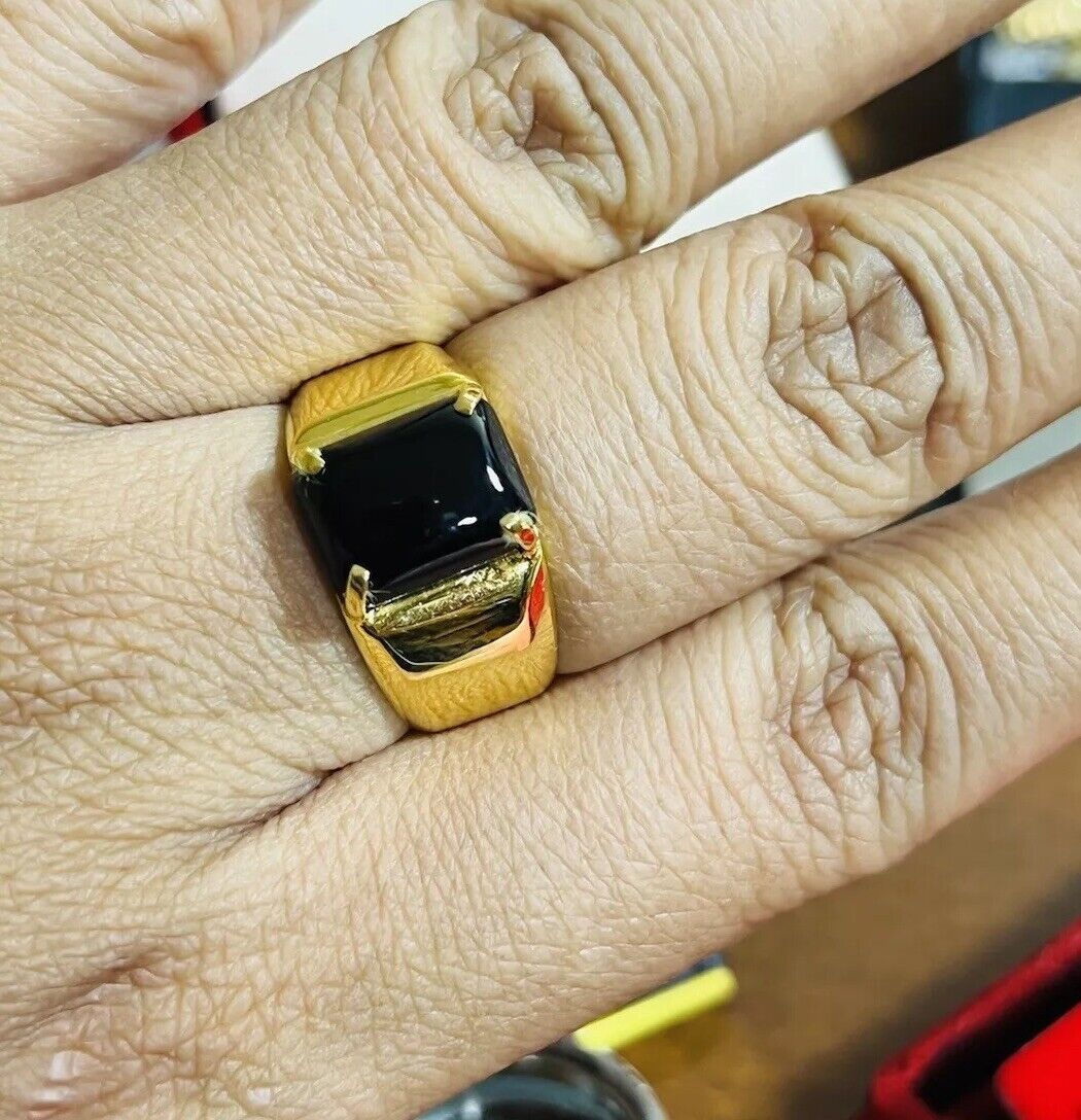 Solid 18K 18C 750 Real UAE Gold Black Stone Ring Size 9.5/10” 10.3g