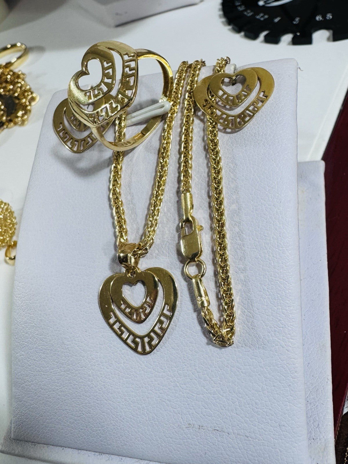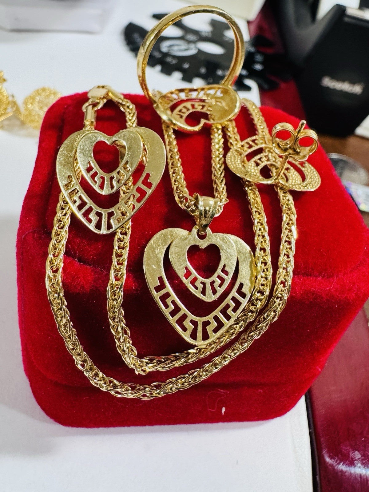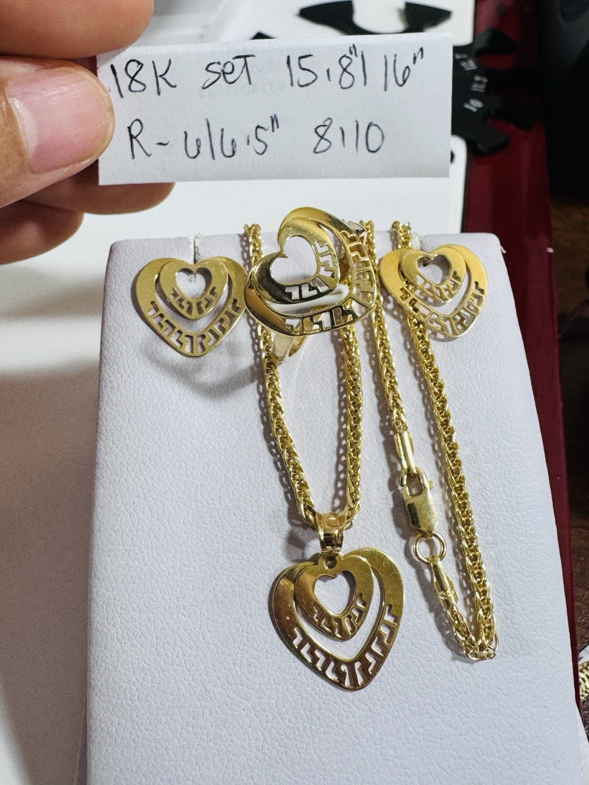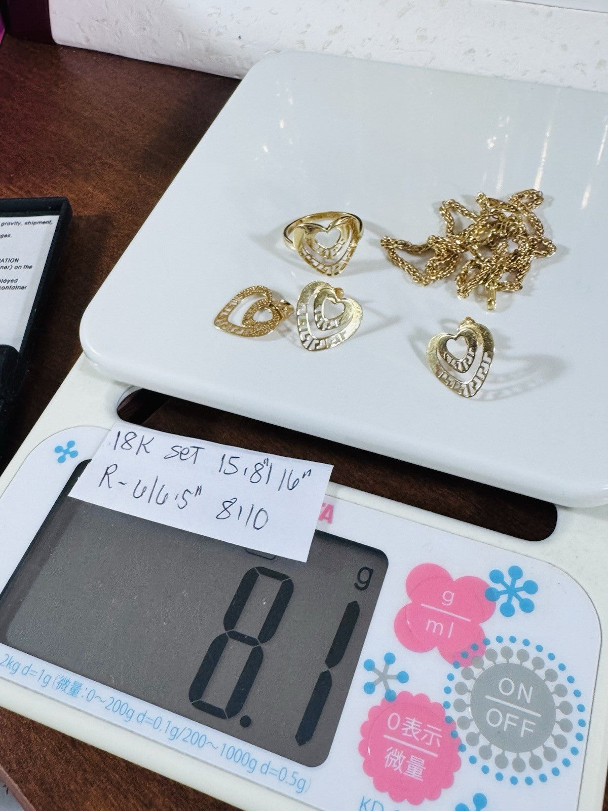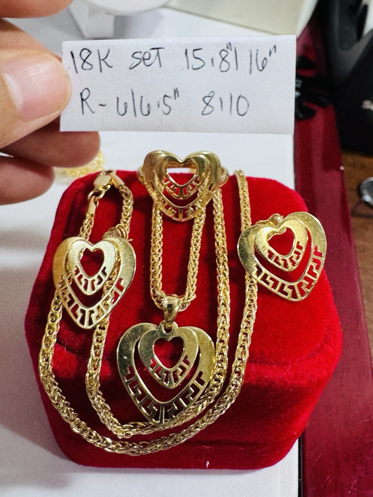 18K 750 Gold Heart Love Earring & Necklace 15.8/16” Long Ring 6/6.5” 7.3g 2mm