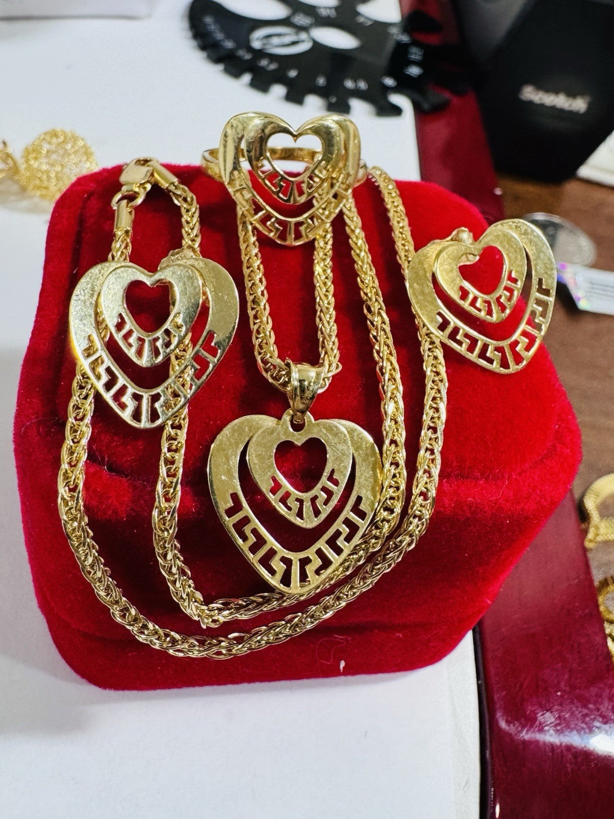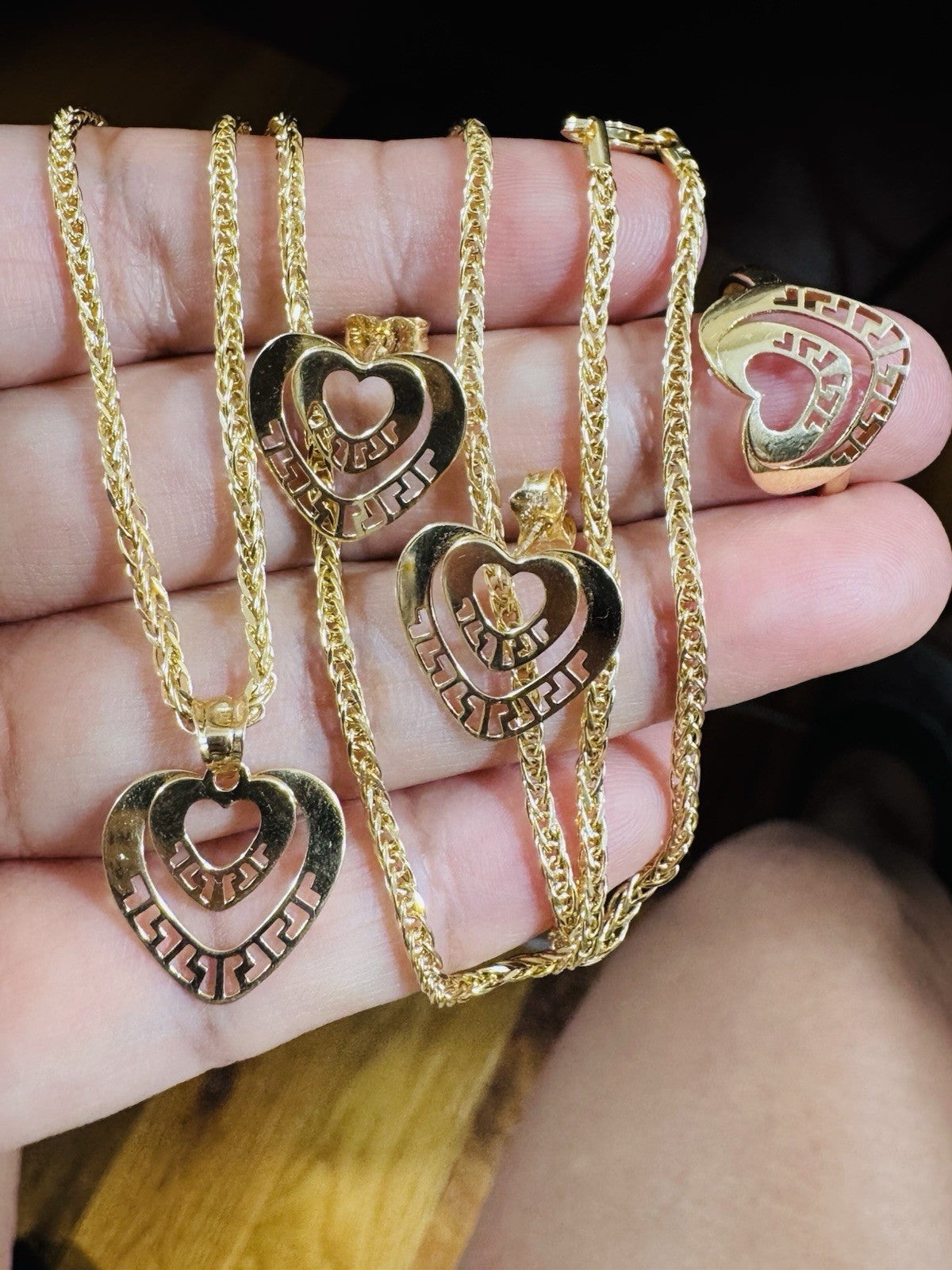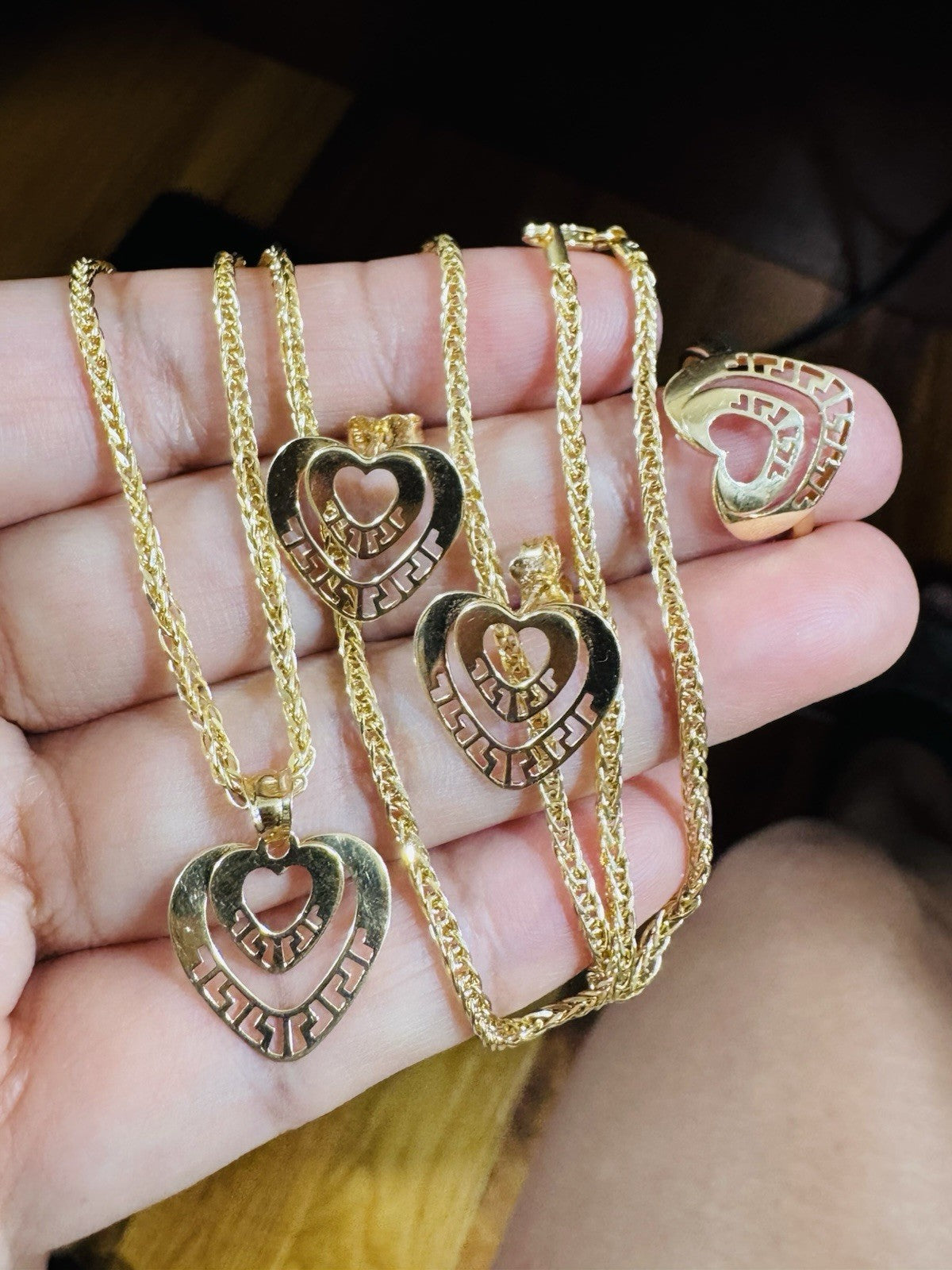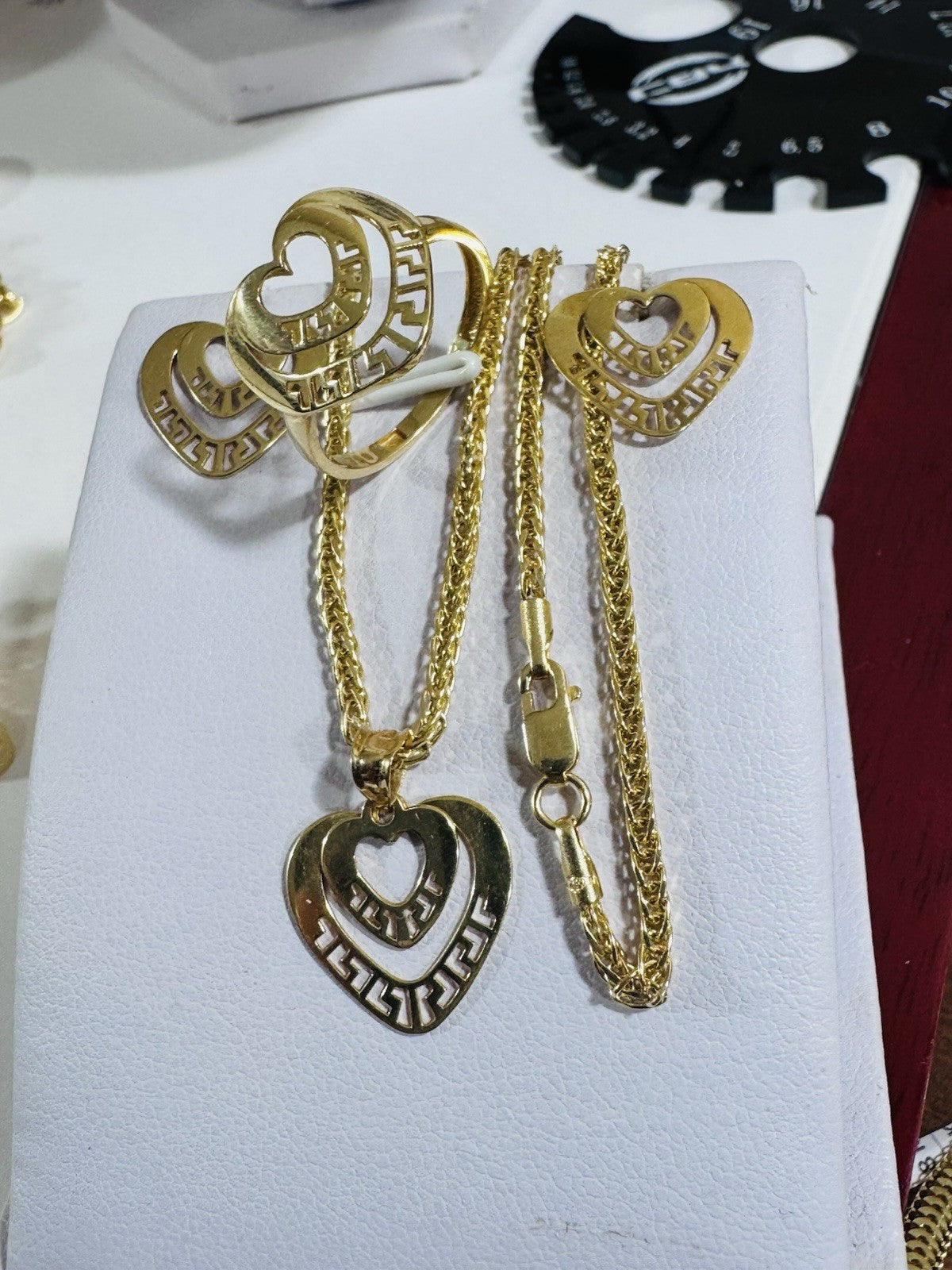 18K 750 Gold Heart Love Earring & Necklace 15.8/16” Long Ring 6/6.5” 7.3g 2mm
