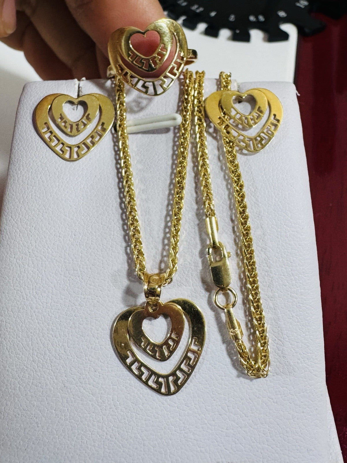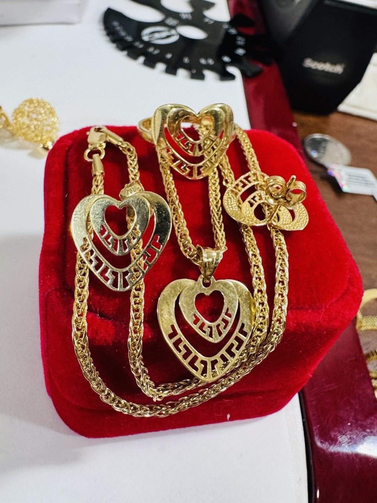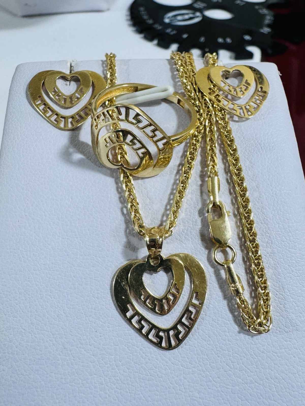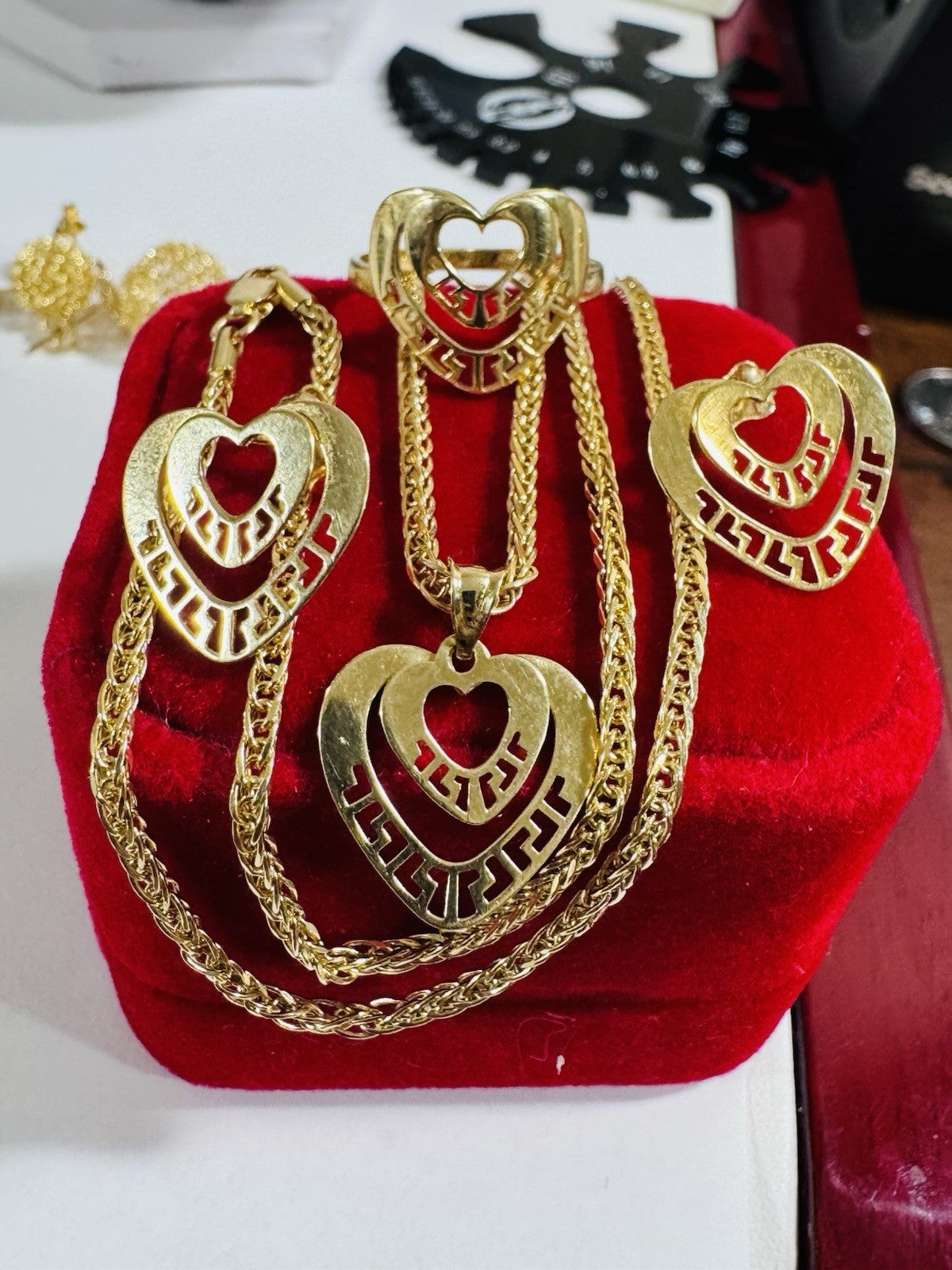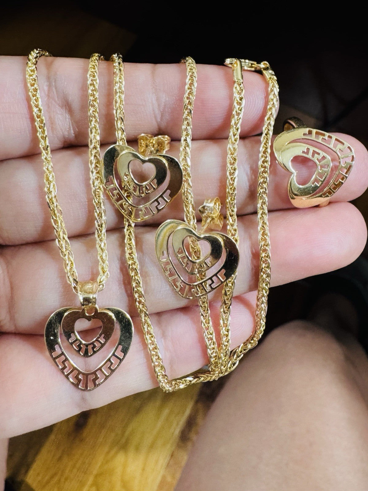 18K 750 Gold Heart Love Earring & Necklace 15.8/16” Long Ring 6/6.5” 7.3g 2mm