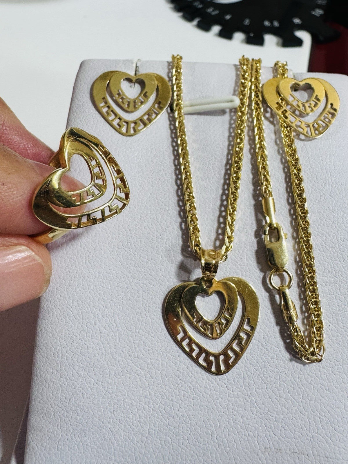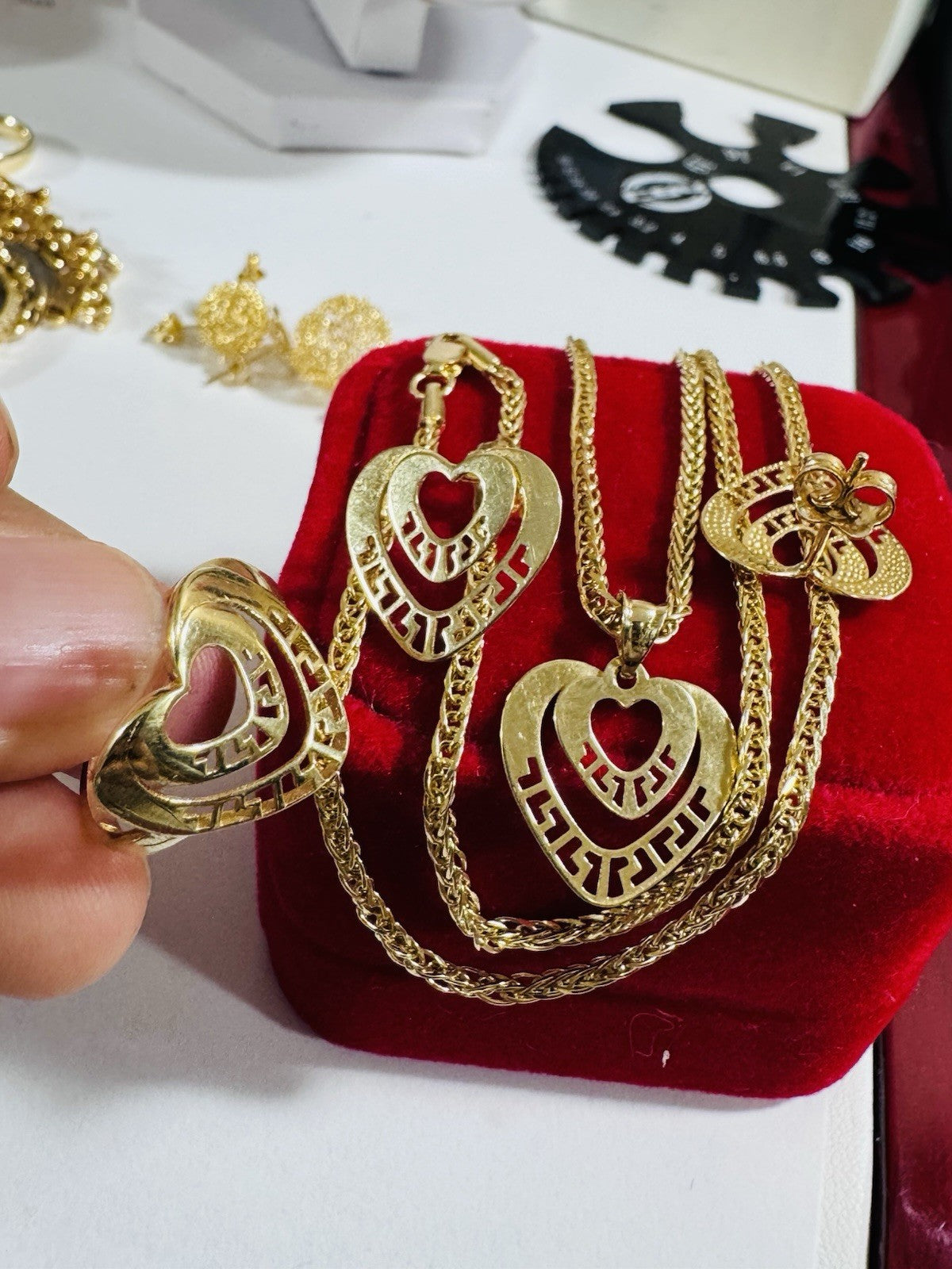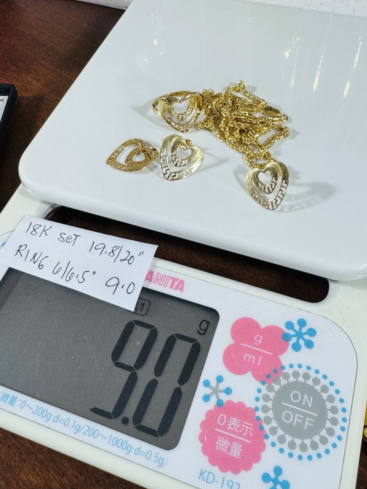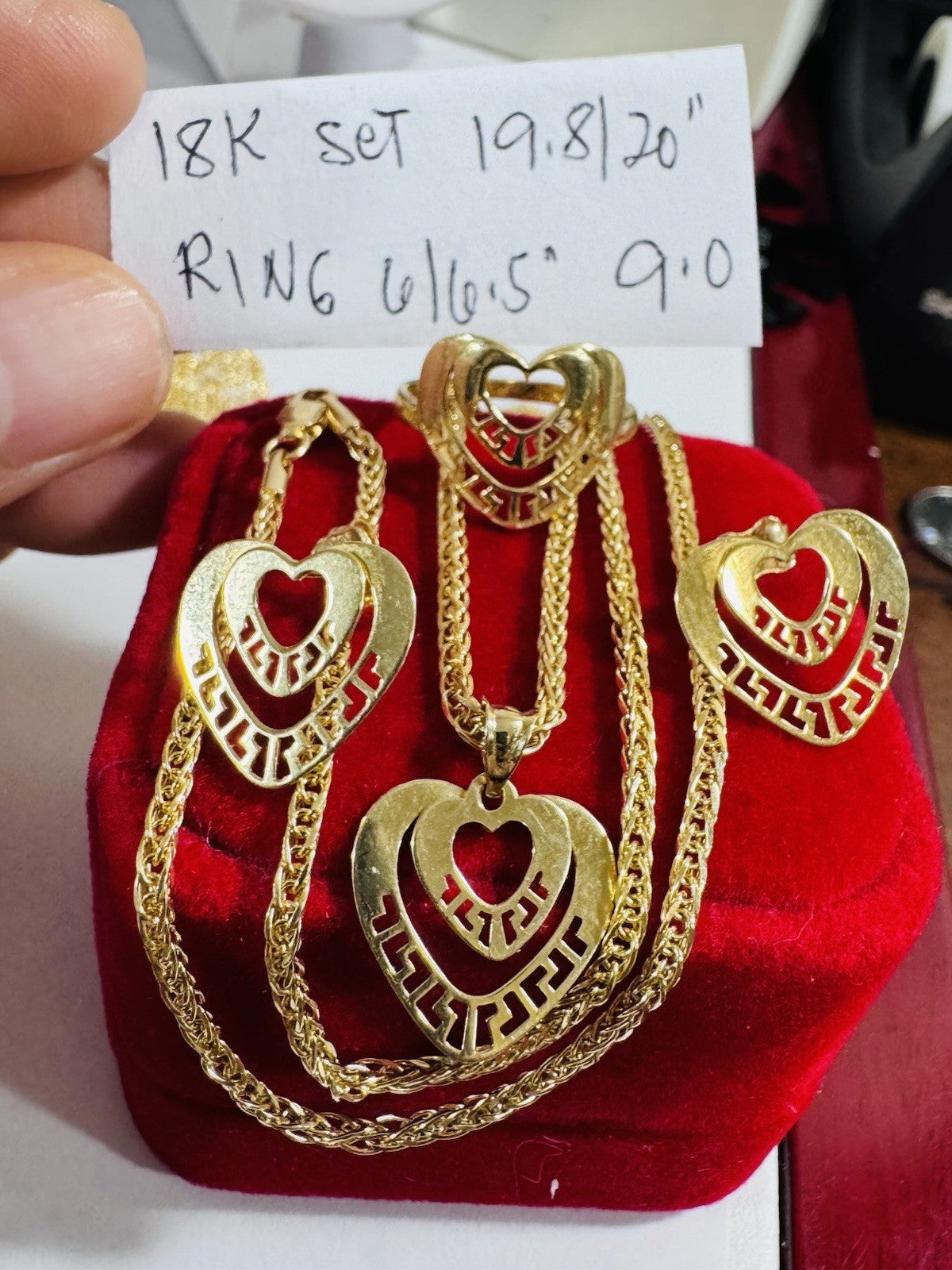 18K 750 Gold Heart Love Earring & Necklace 19.8/20” Long Ring 6/6.5” 9.0g 2mm
