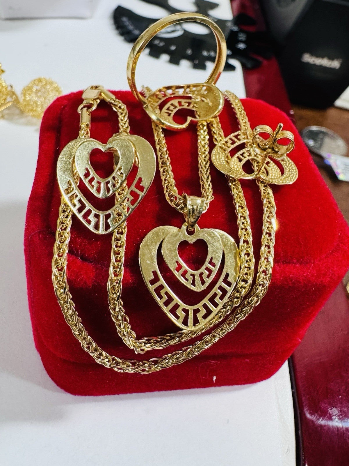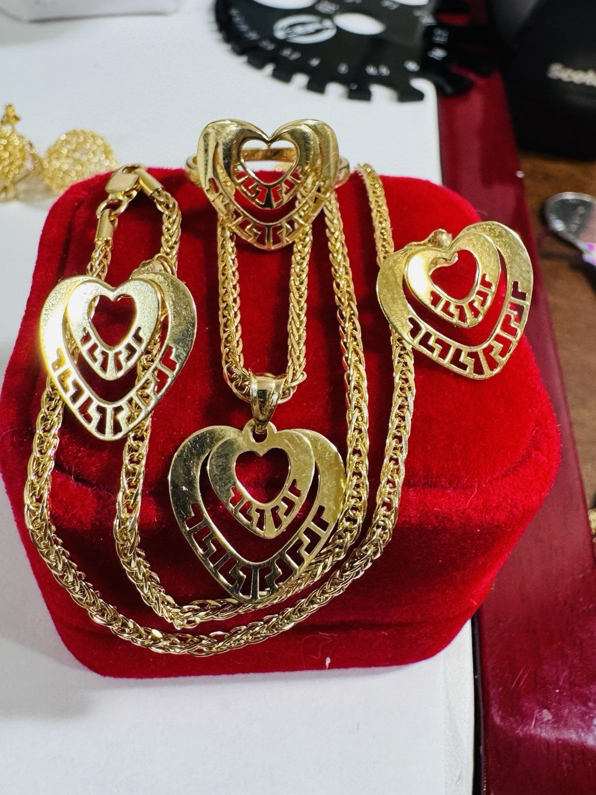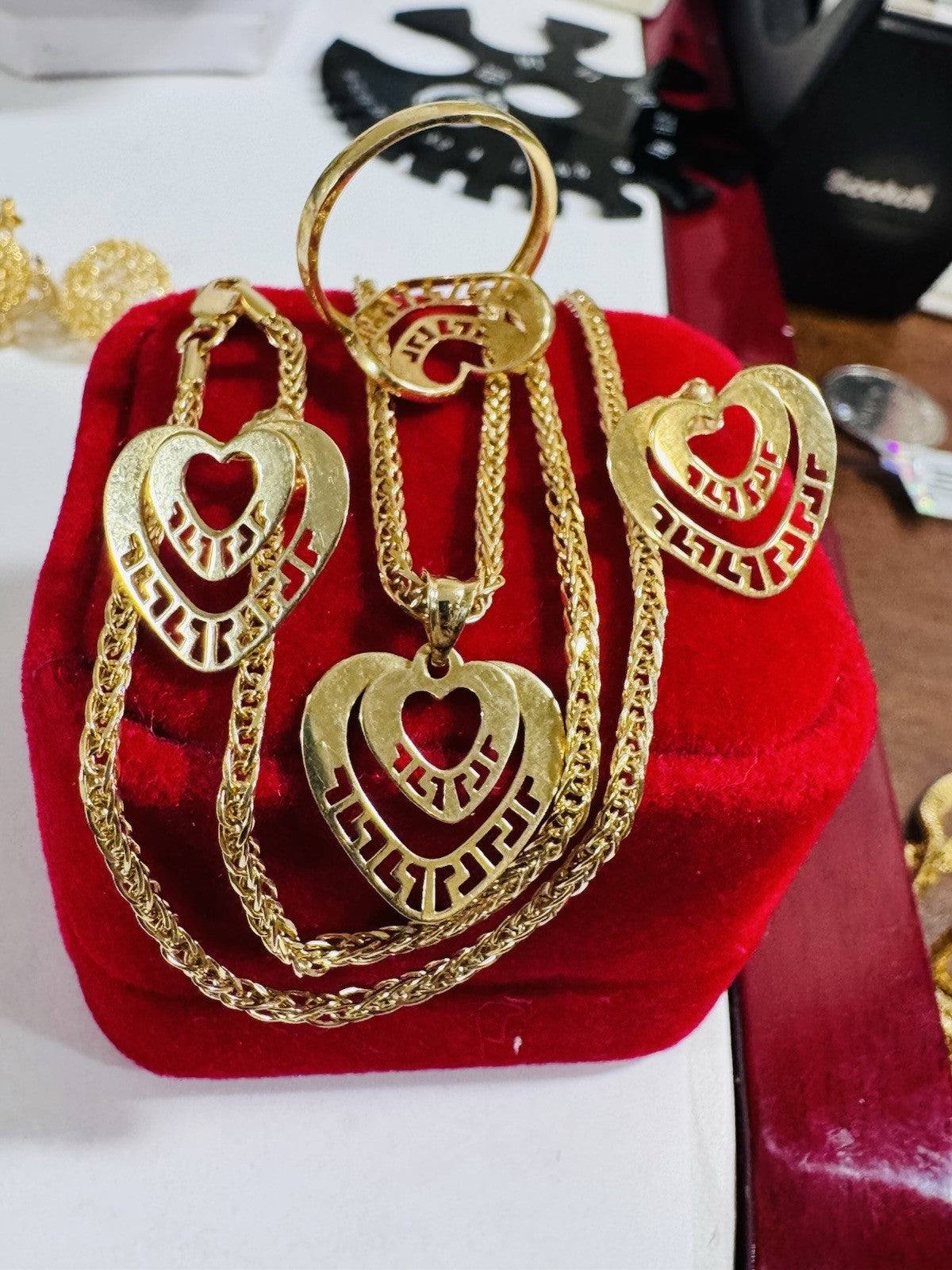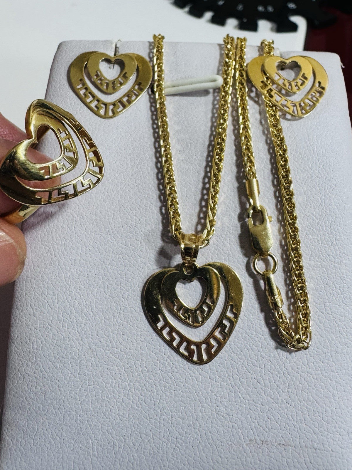 18K 750 Gold Heart Love Earring & Necklace 19.8/20” Long Ring 6/6.5” 9.0g 2mm