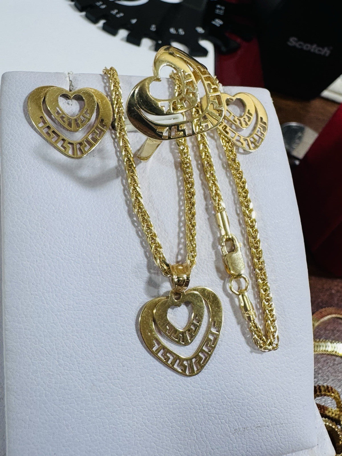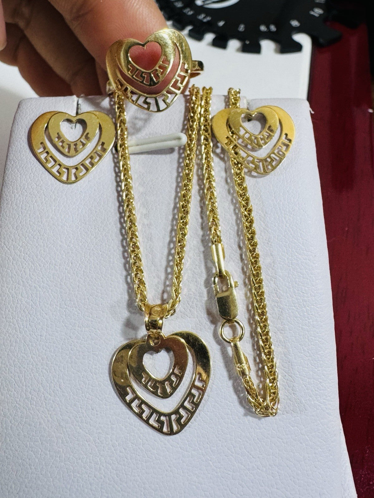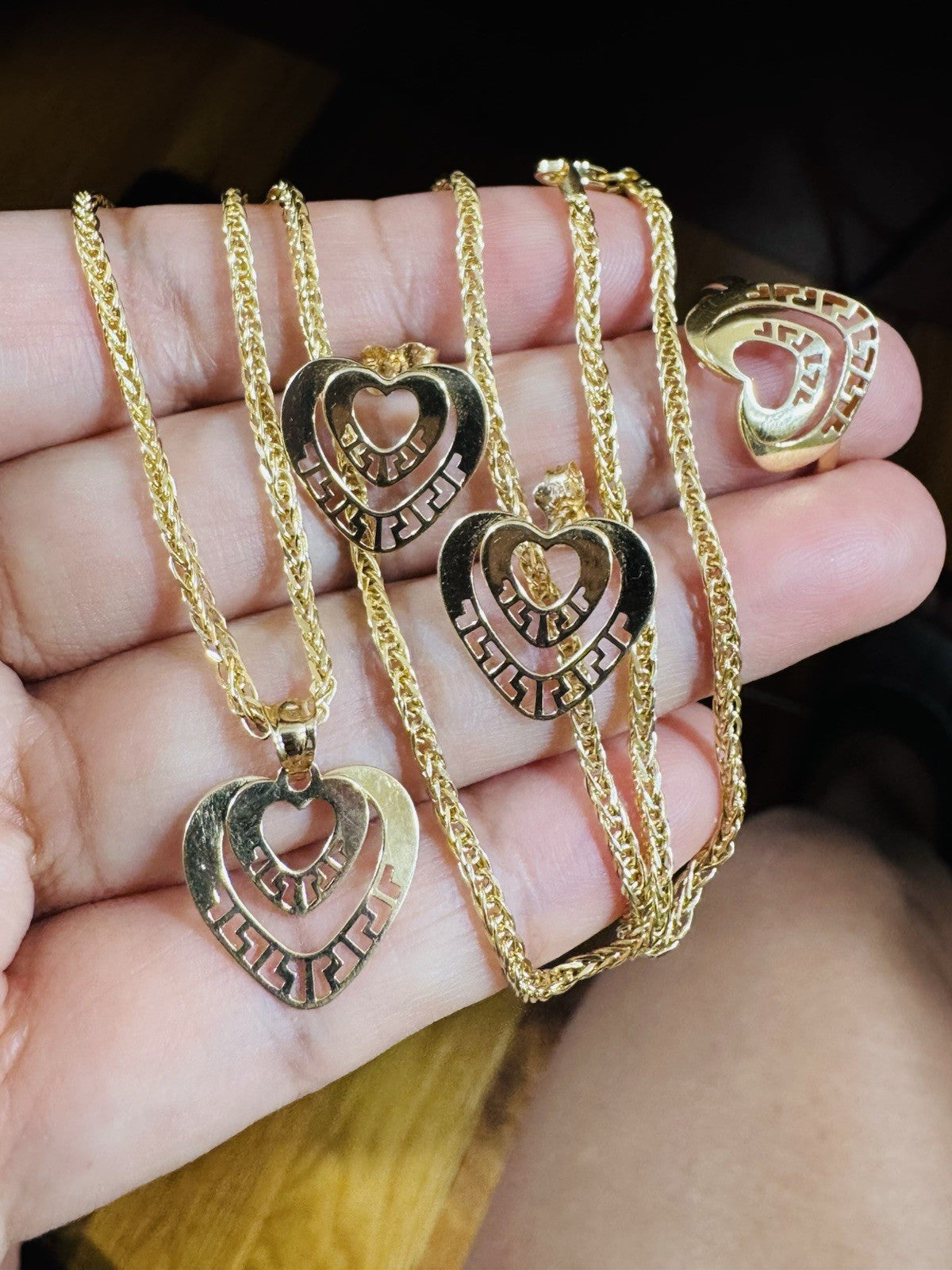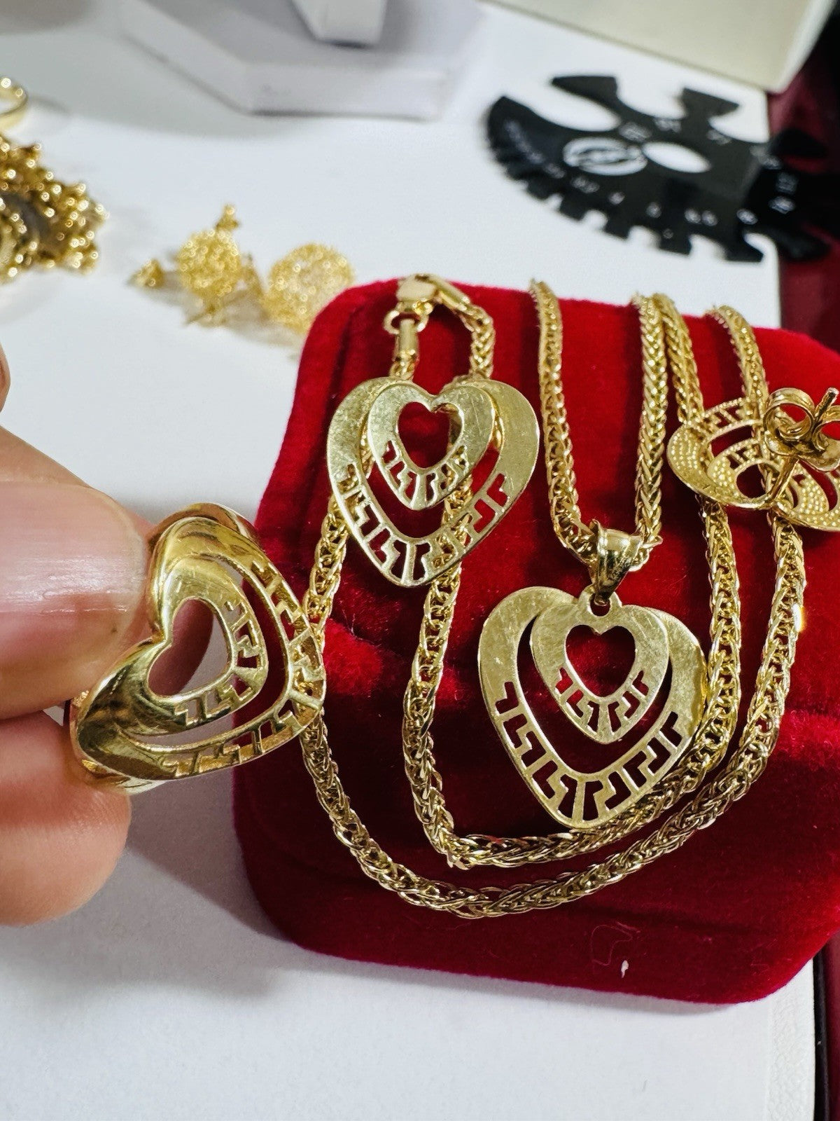 18K 750 Gold Heart Love Earring & Necklace 19.8/20” Long Ring 6/6.5” 9.0g 2mm