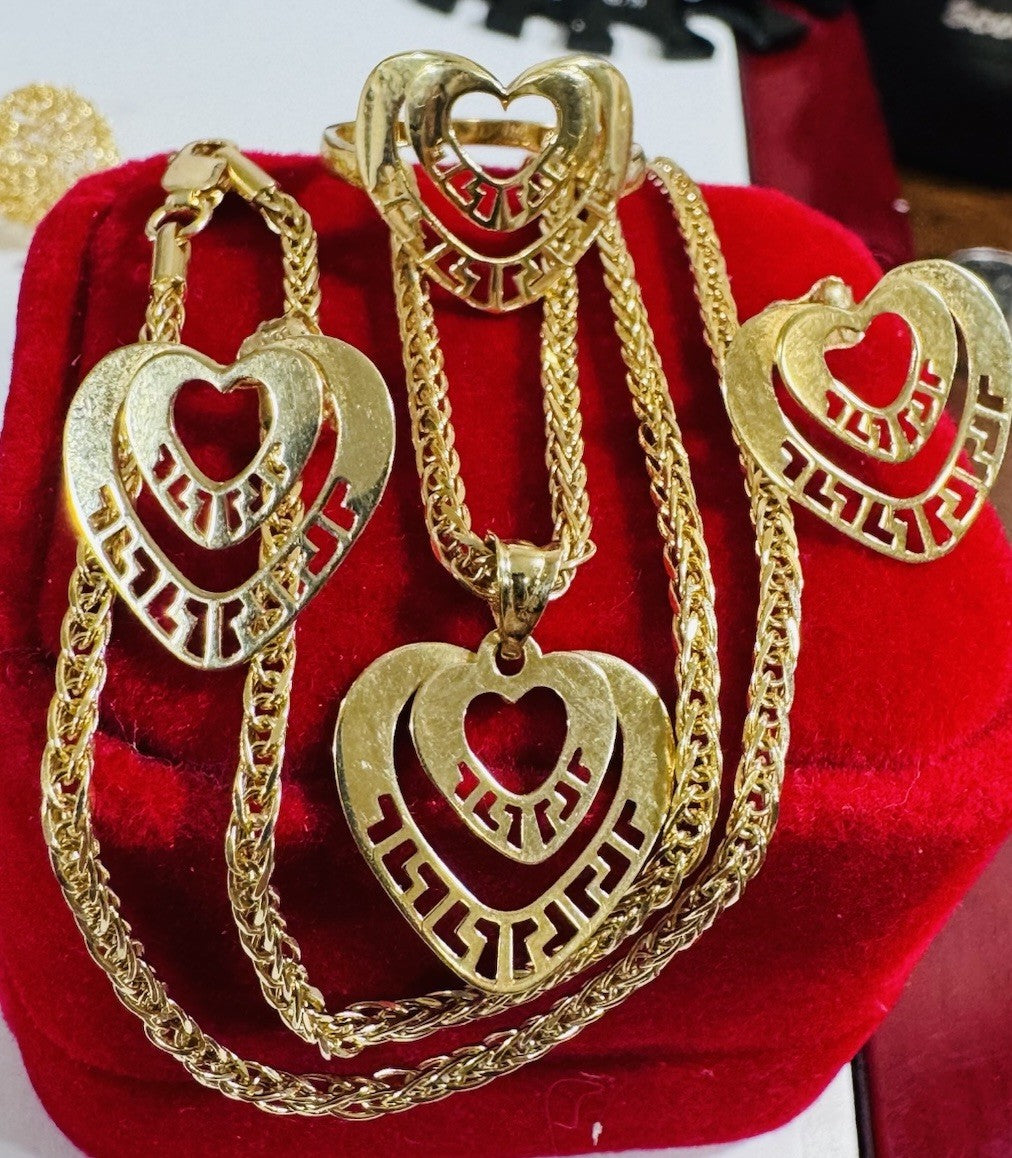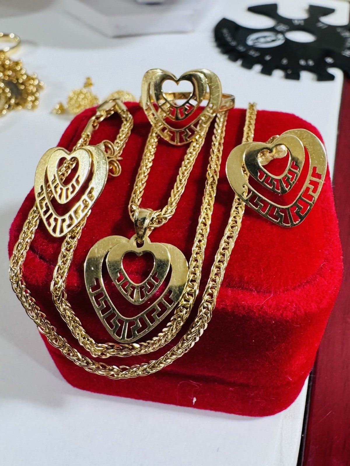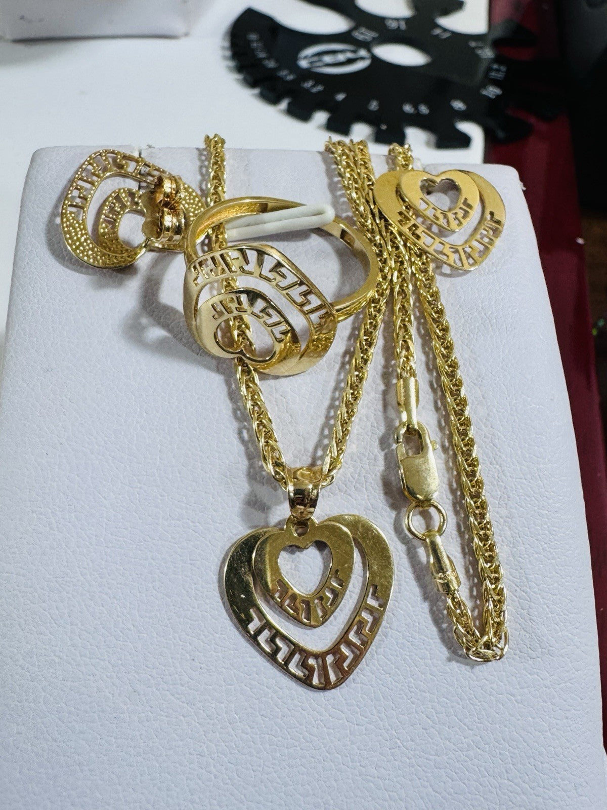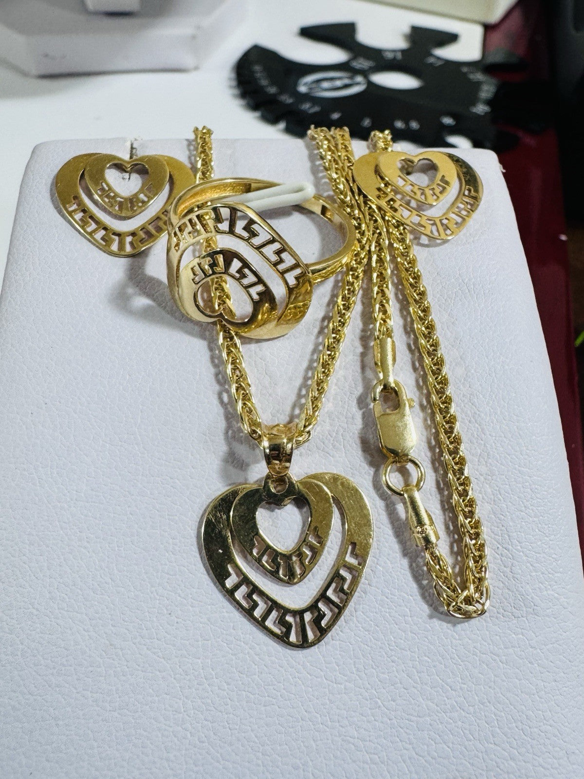 18K 750 Gold Heart Love Earring & Necklace 19.8/20” Long Ring 6/6.5” 9.0g 2mm