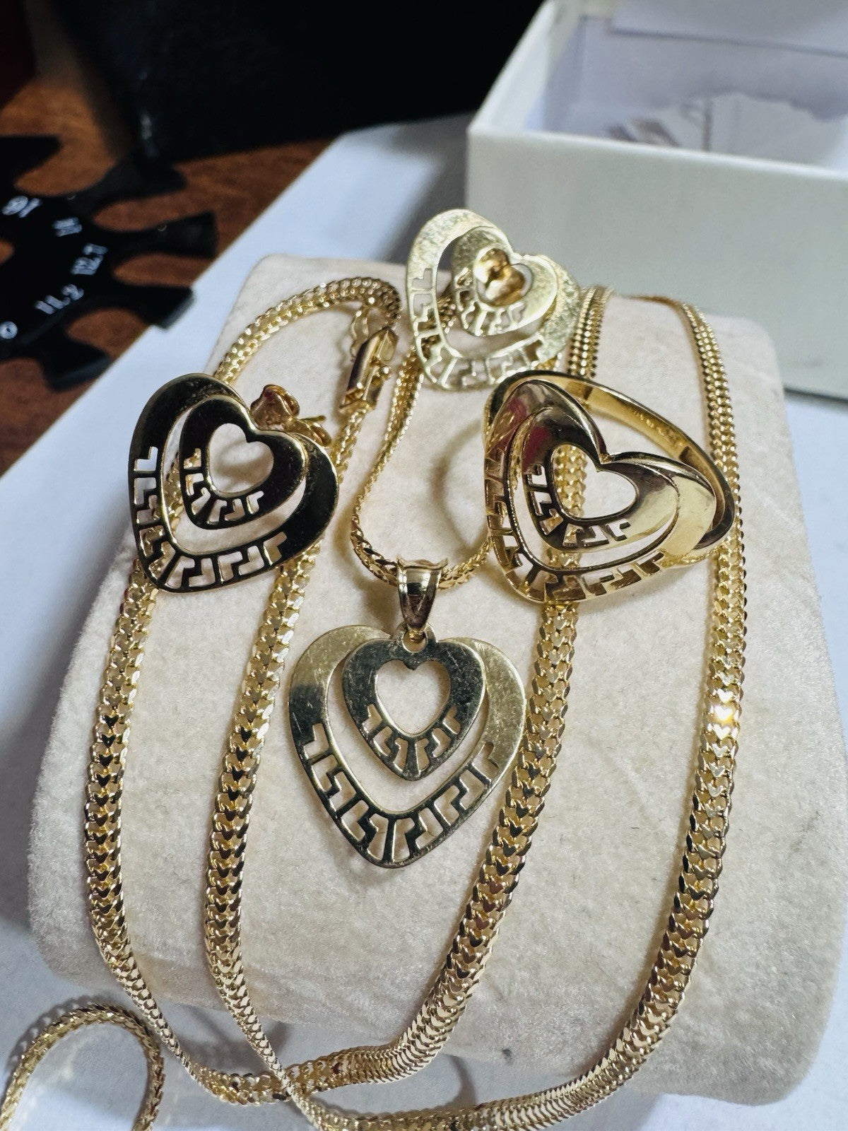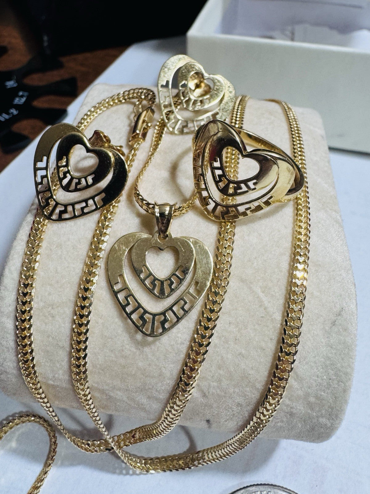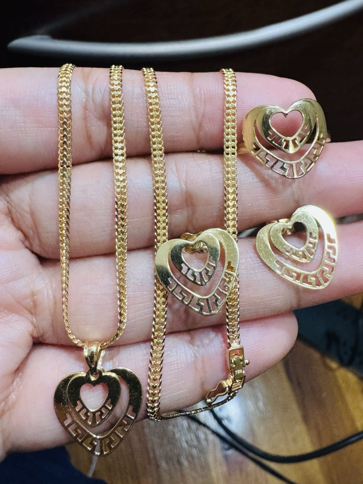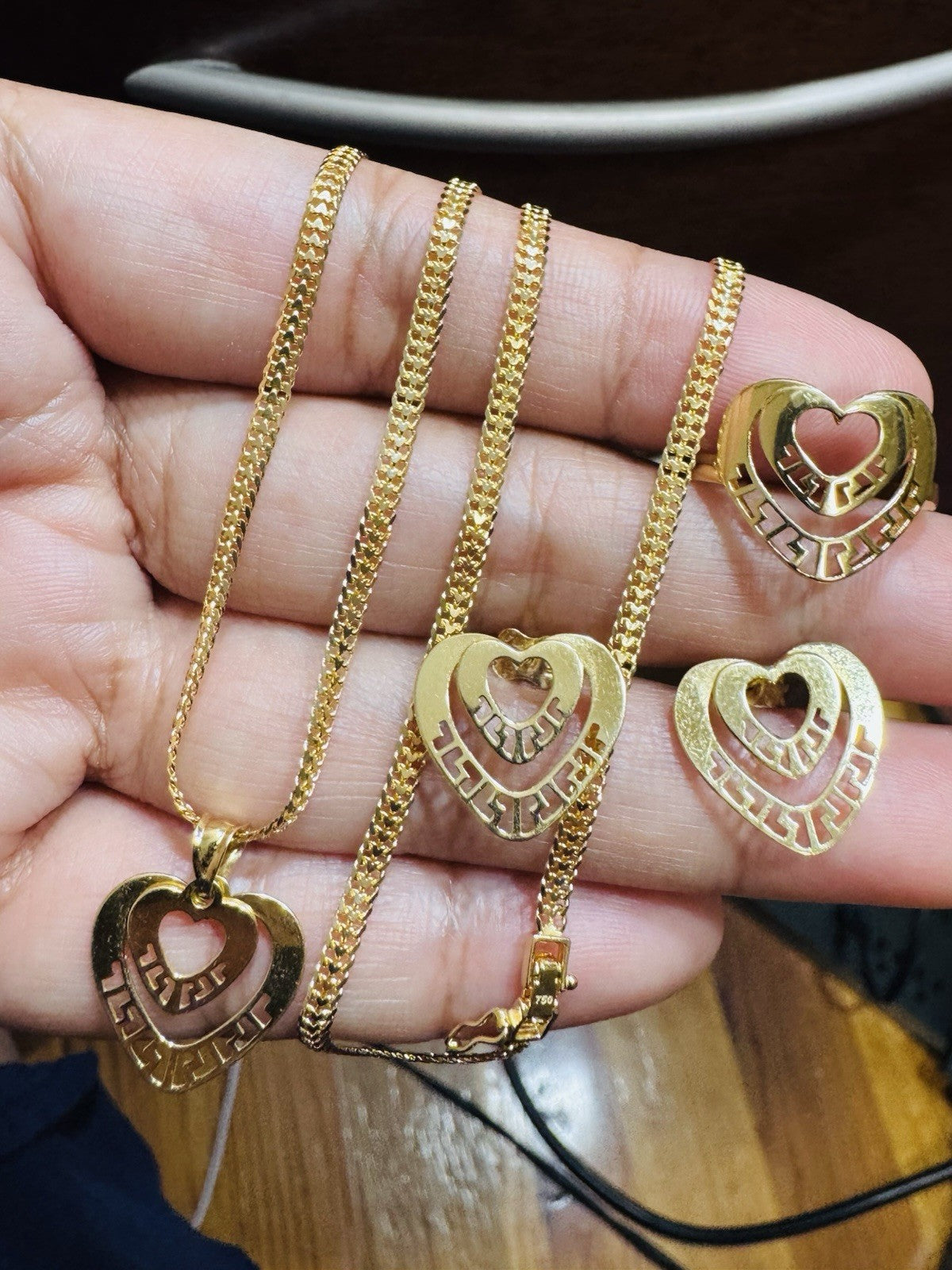 This 18K 750 Fine Gold Heart Earring Ring Necklace is a beautiful and elegant piece of jewelry perfect for various occasions like engagements, weddings, anniversaries, birthdays, and more.