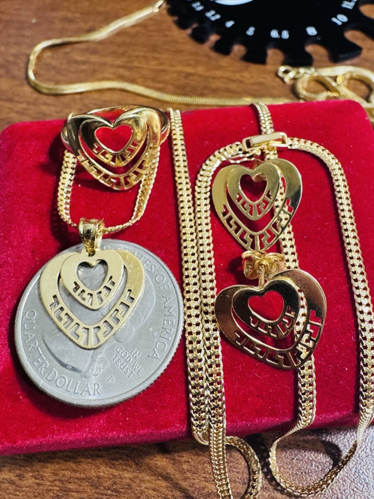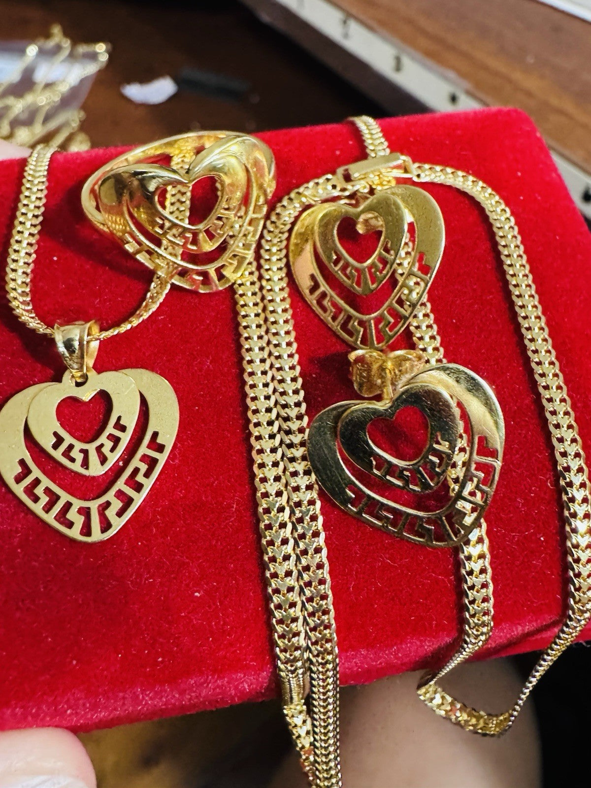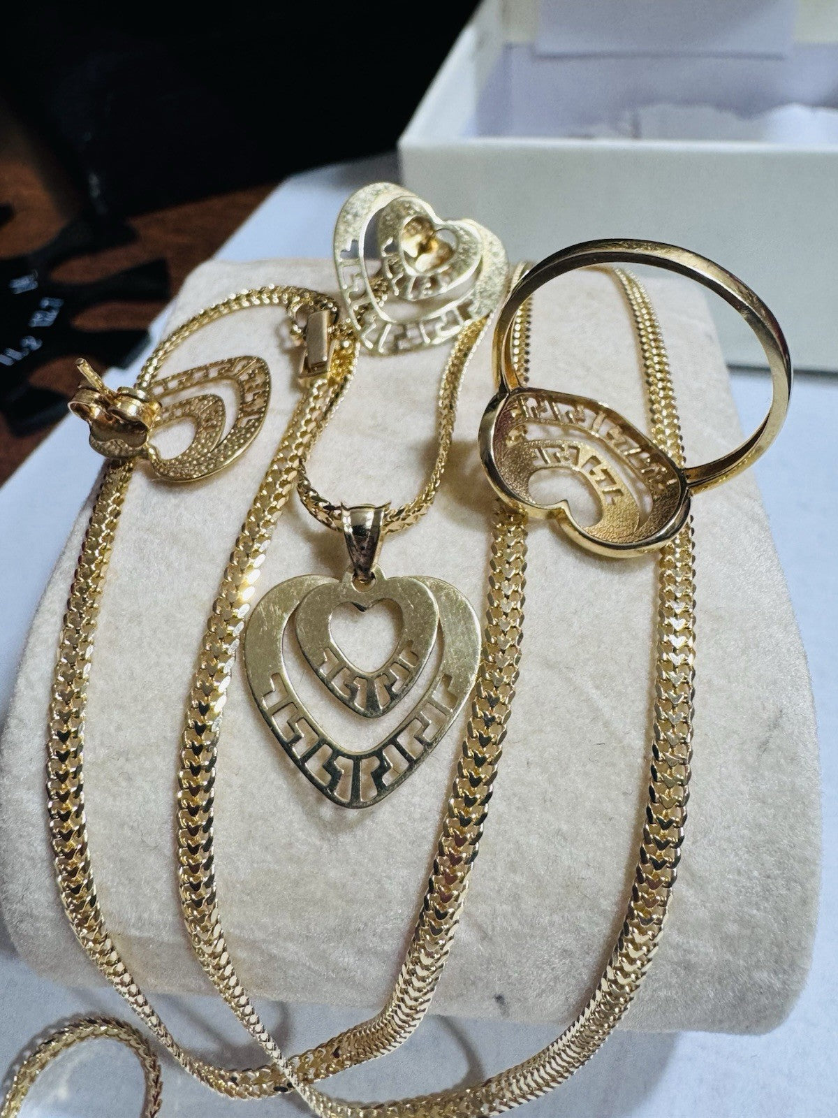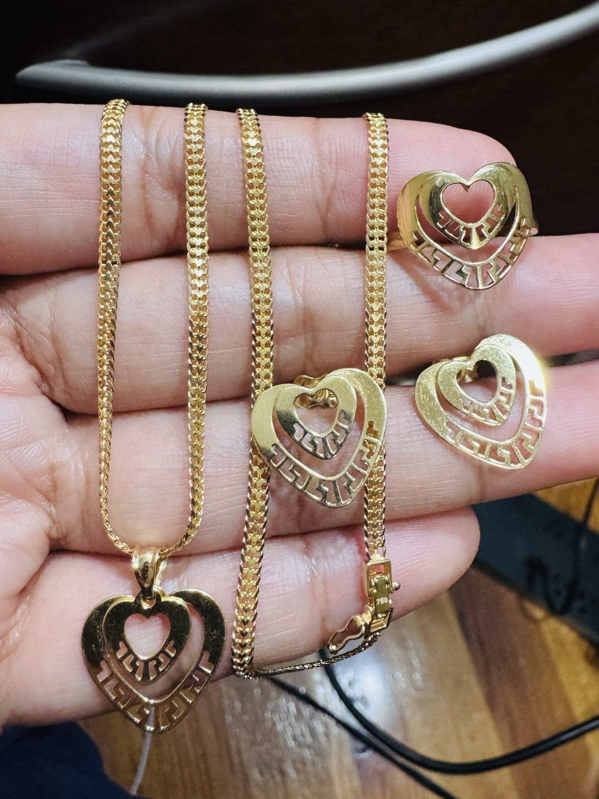 This 18K 750 Fine Gold Heart Earring Ring Necklace is a beautiful and elegant piece of jewelry perfect for various occasions like engagements, weddings, anniversaries, birthdays, and more.