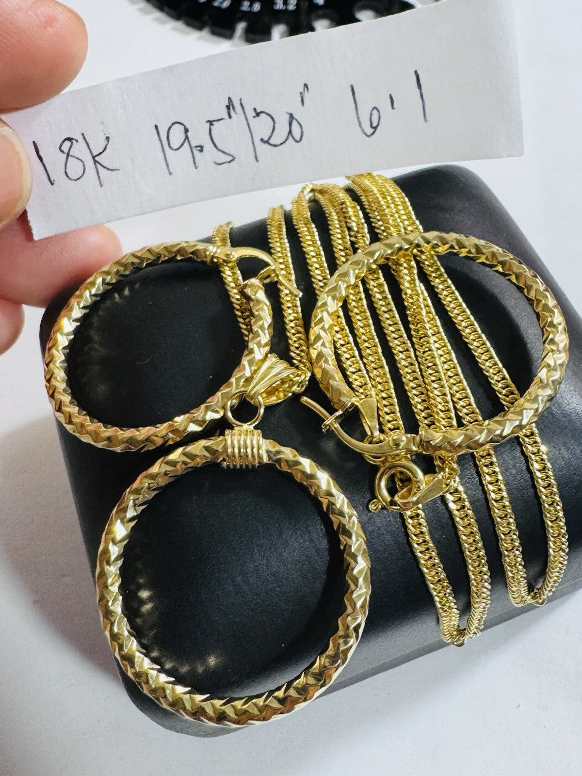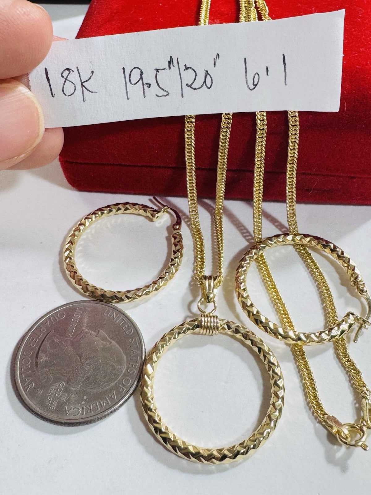 18K 750 Real Fine Gold Hoop Loop Earring Necklace 19.6”/20” Inch Long 6.1g 2.2mm
