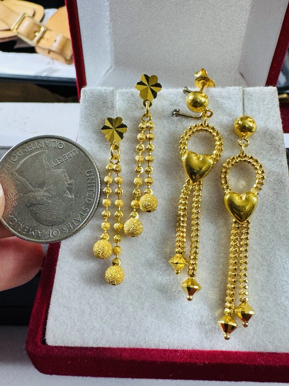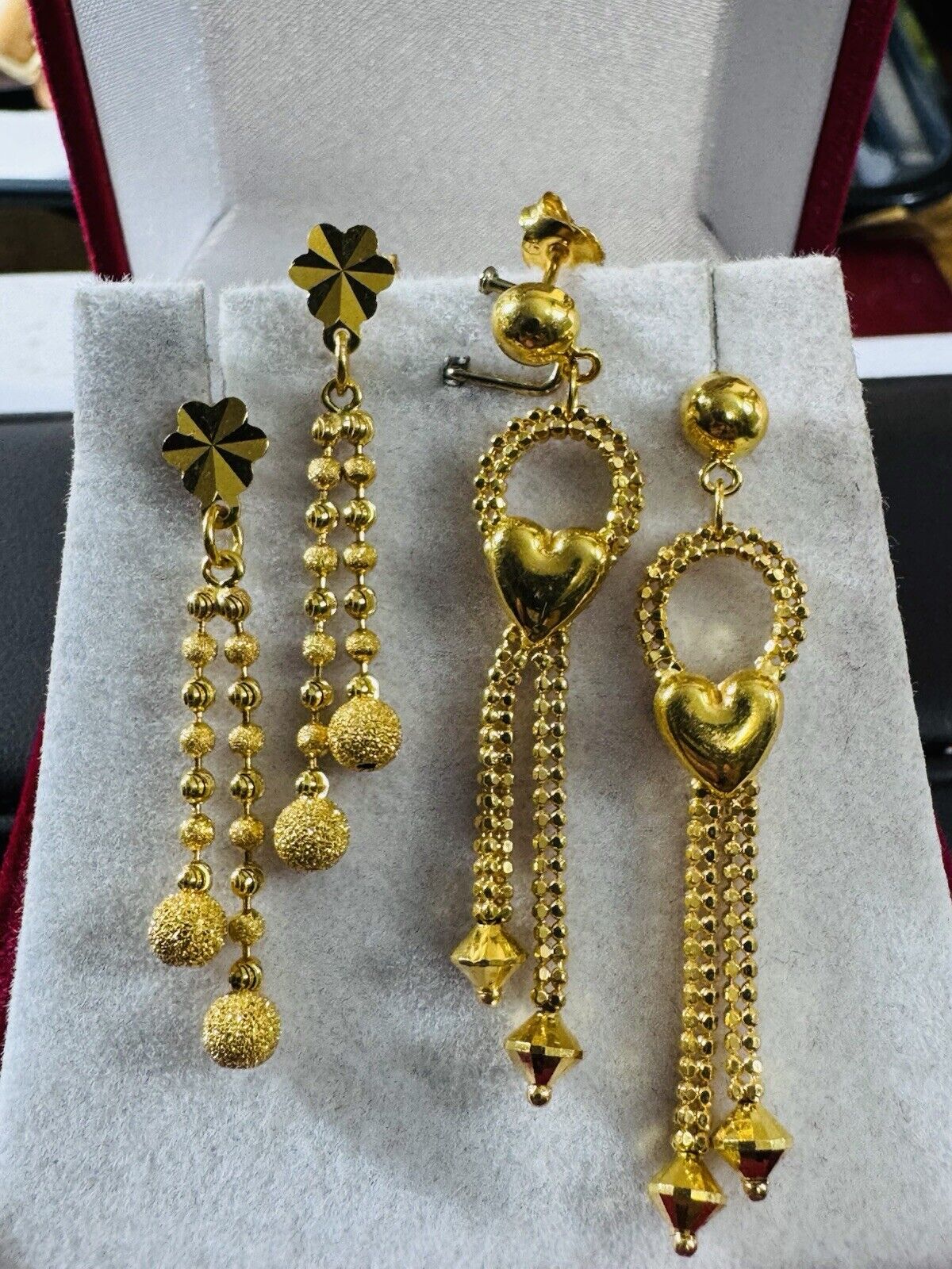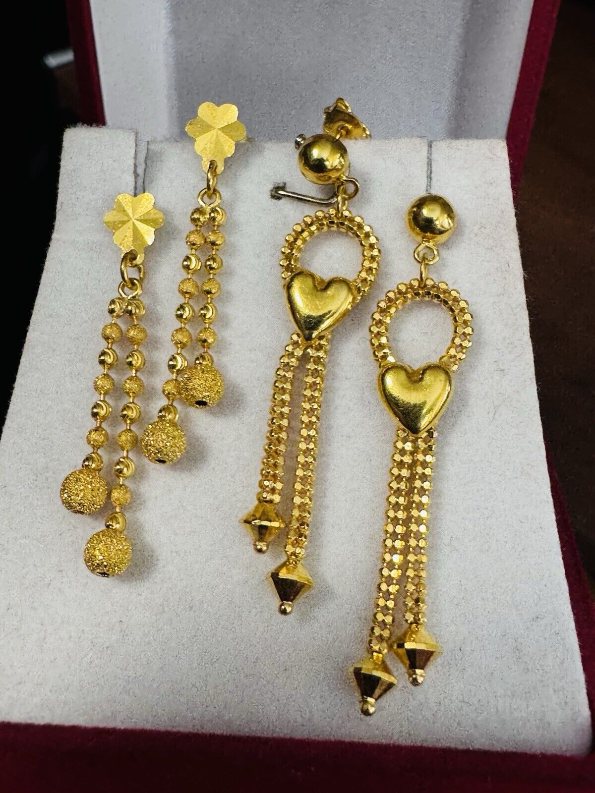 *Hello You are buying Real Brand New Beautiful 2 Set of Fine Real Gold Earrings total 8.6 grams.