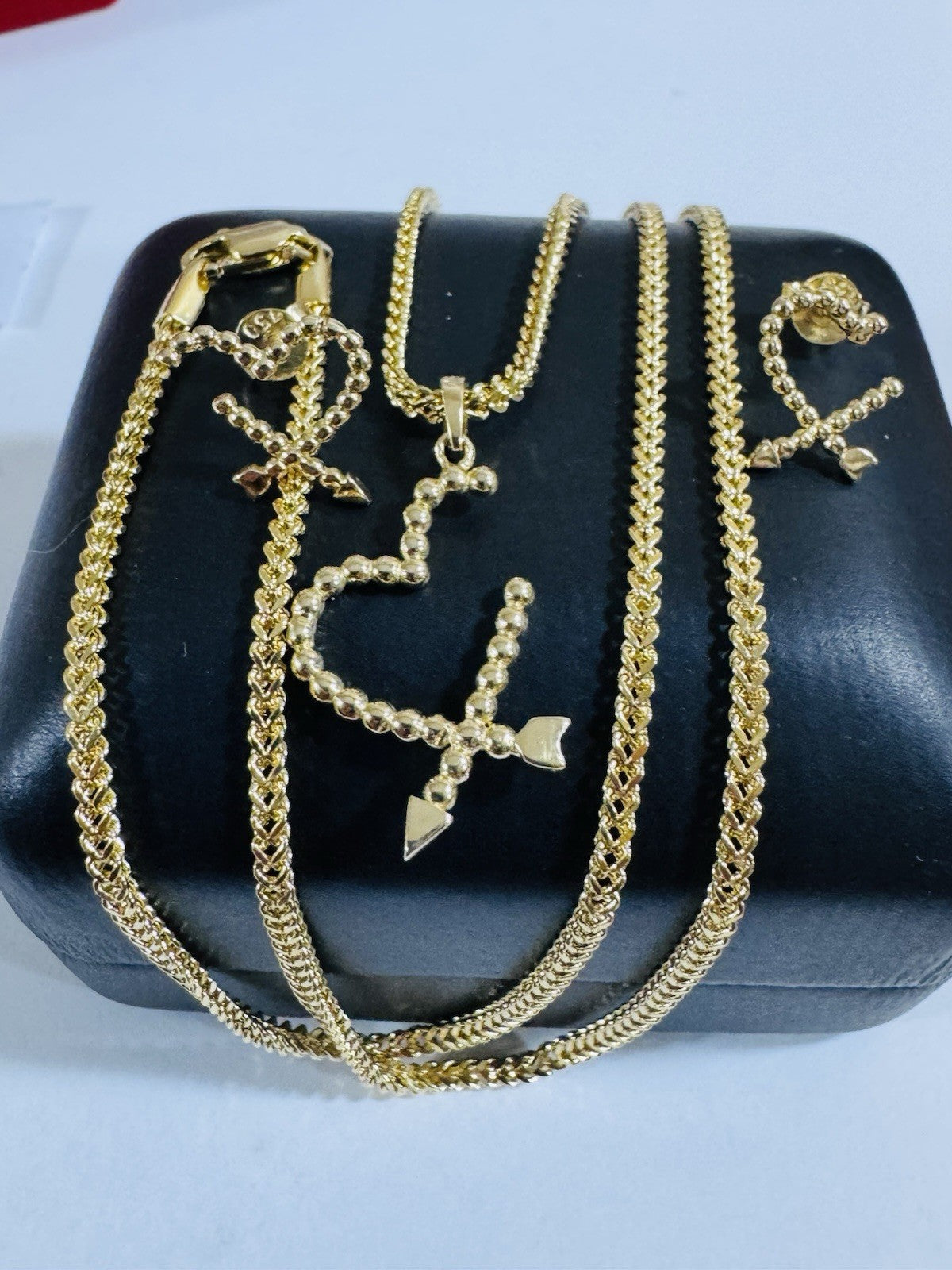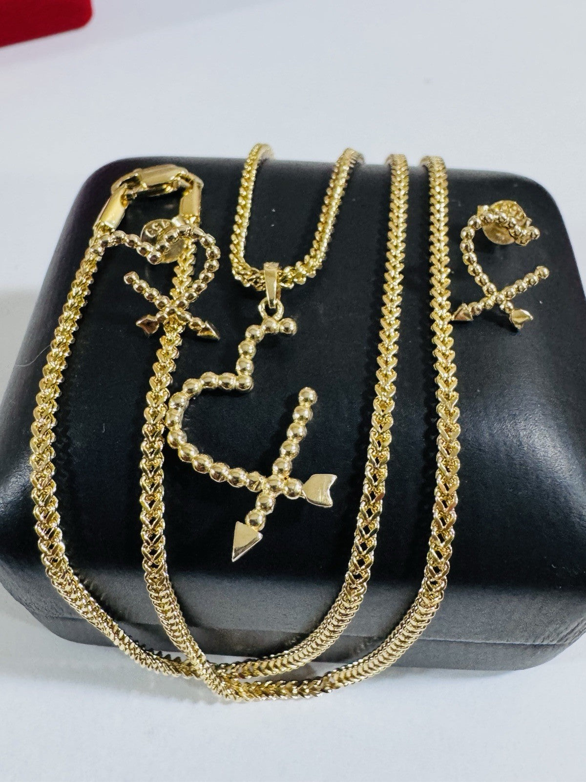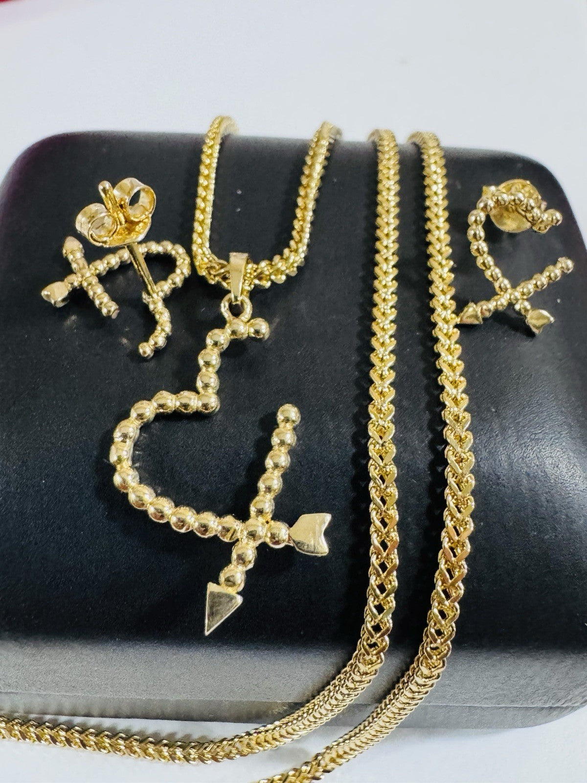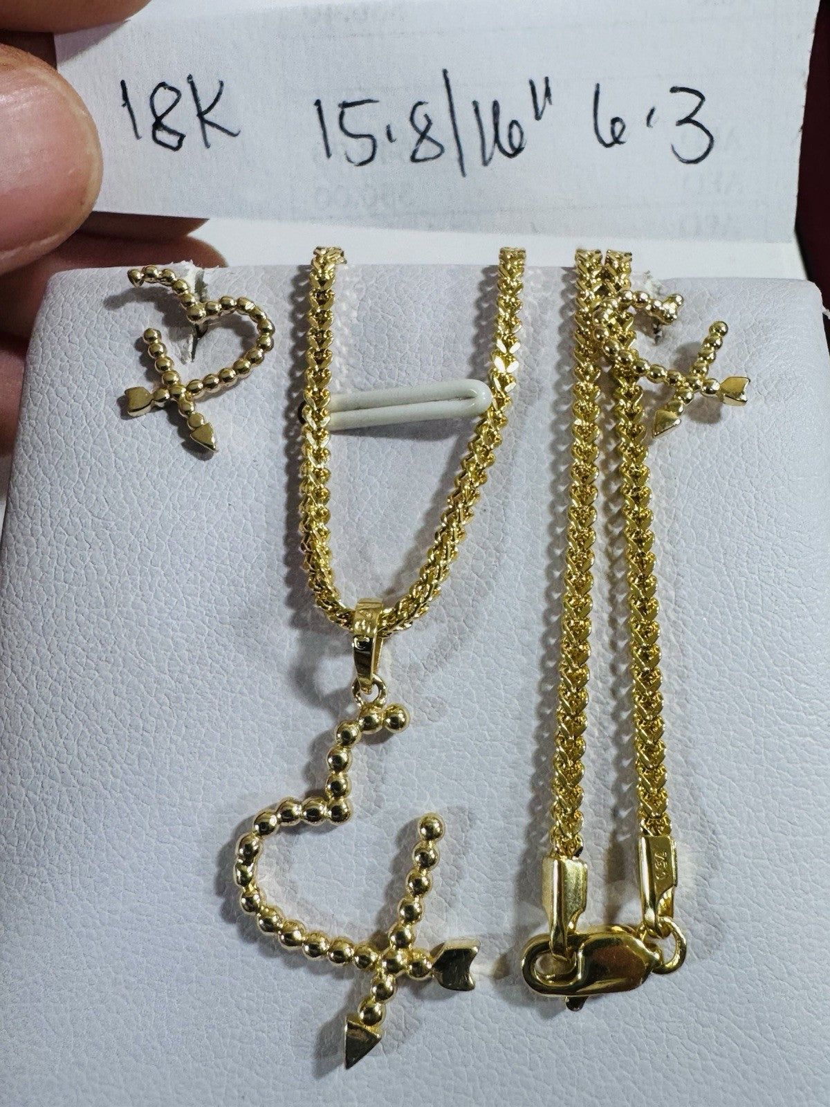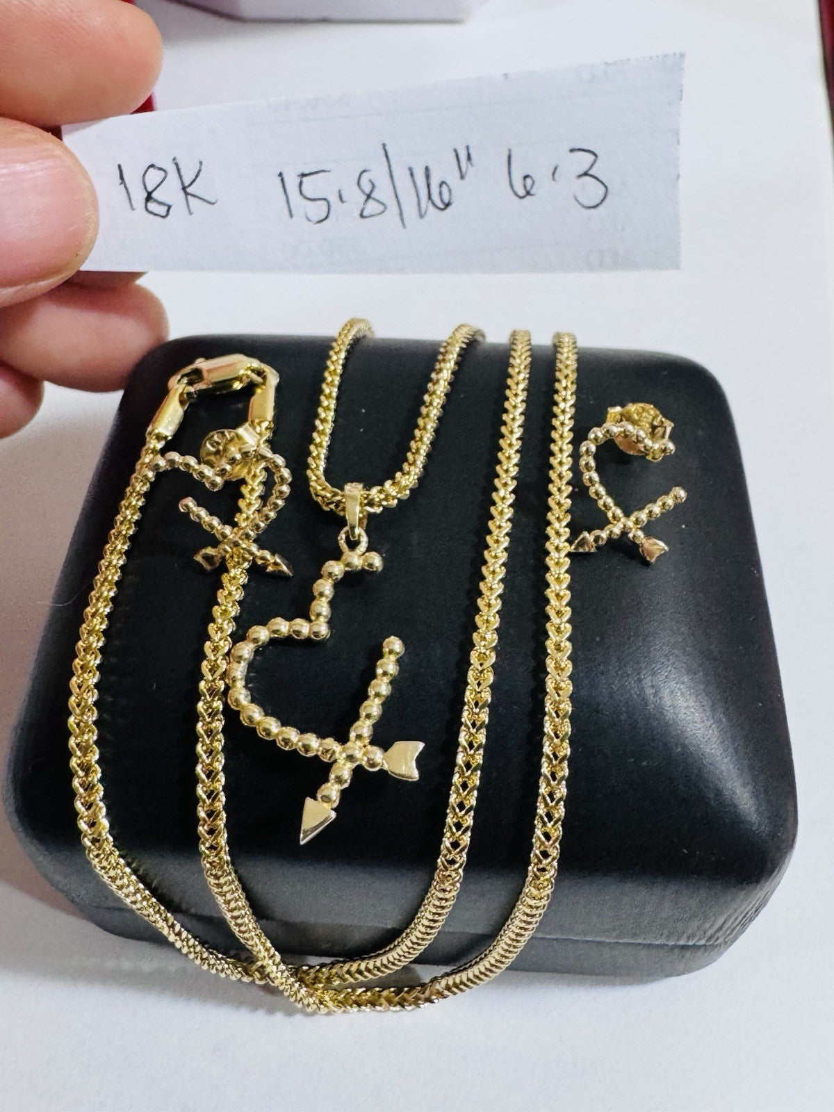 Metal: 18K Yellow Gold Set Earring & Necklace (Real and Genuine 18k Au750 Gold (Not Gold plated -Not Filled- Not Fake)