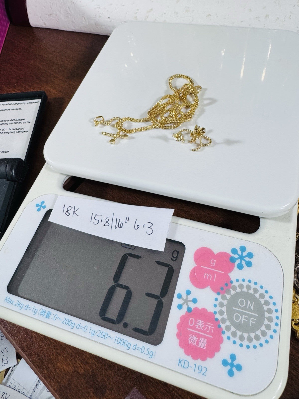 Pure 18K 750 DUBAI Gold Broken Heart Earring & Necklace 15.8/16” Long 2.2mm 6.3g