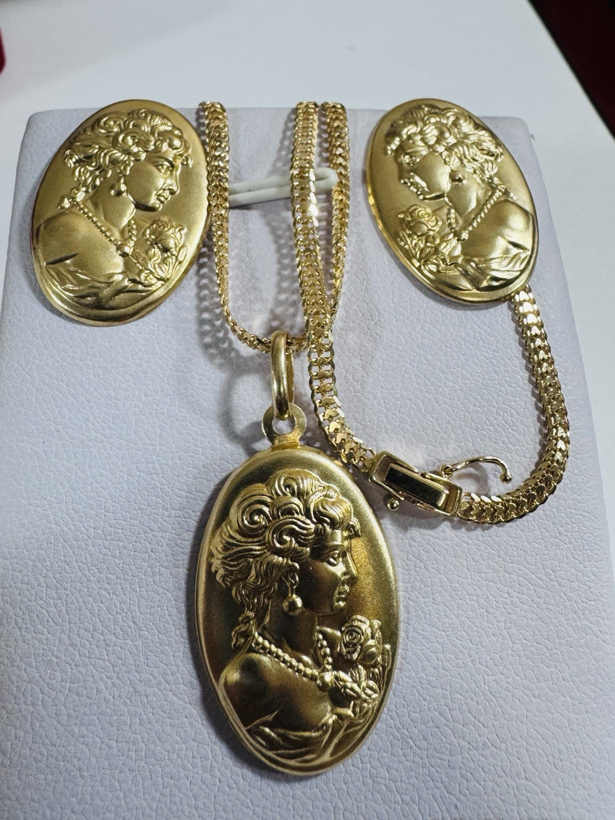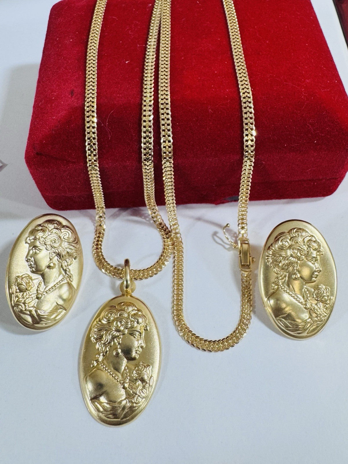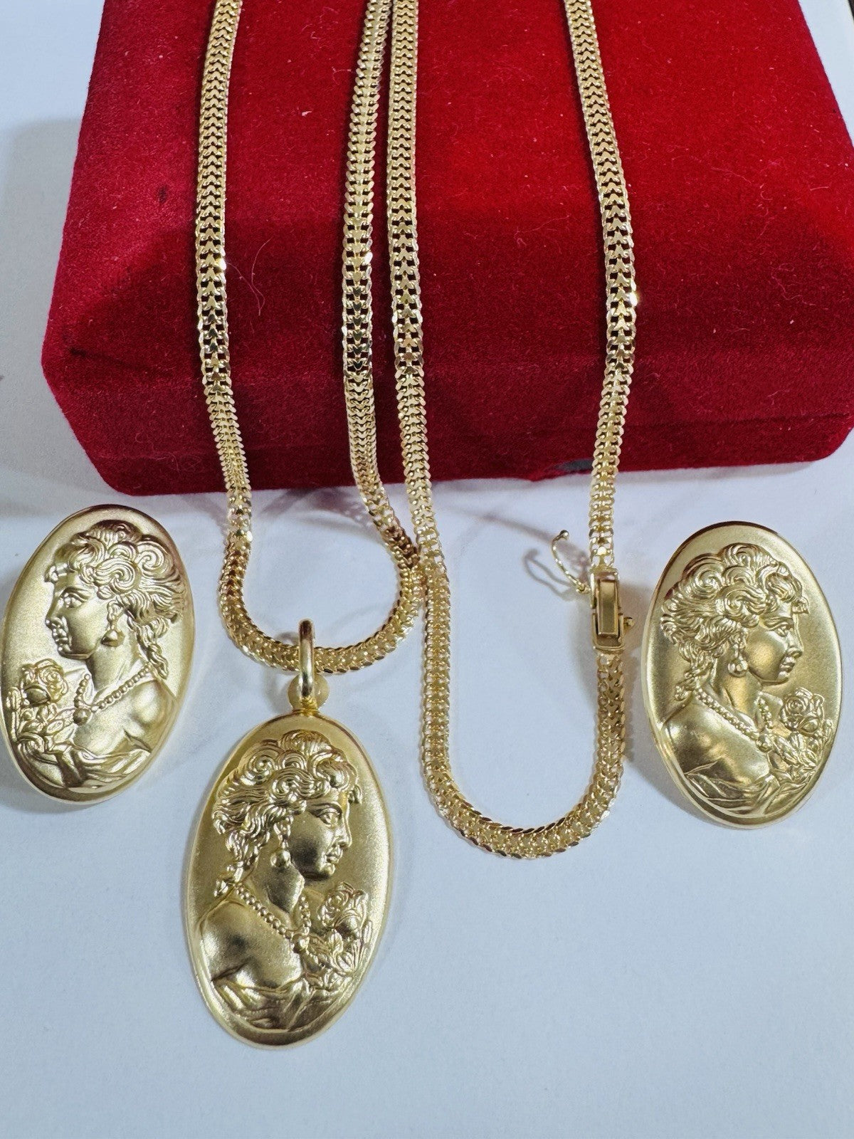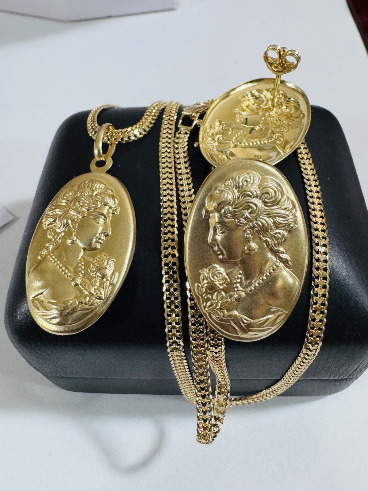 Metal: 18K Yellow Gold Set Earring & Necklace (Real and Genuine 18k Au750 Gold (Not Gold plated -Not Filled- Not Fake)