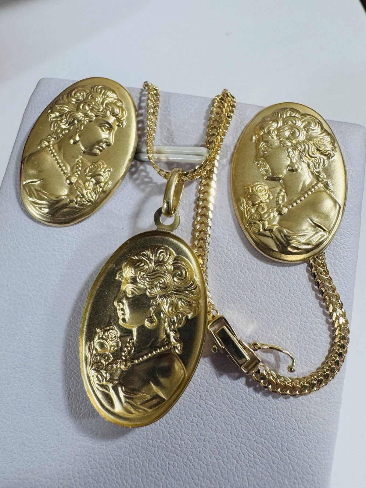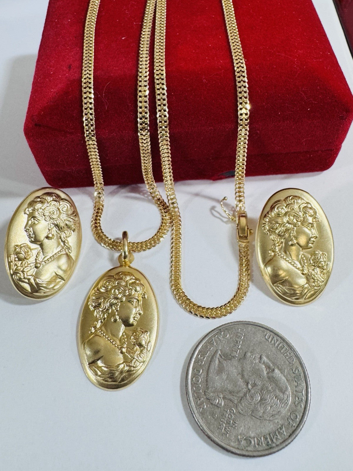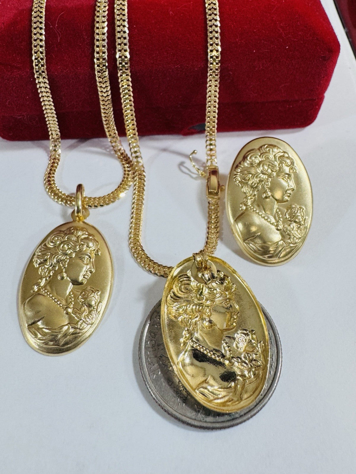Metal: 18K Yellow Gold Set Earring & Necklace (Real and Genuine 18k Au750 Gold (Not Gold plated -Not Filled- Not Fake)