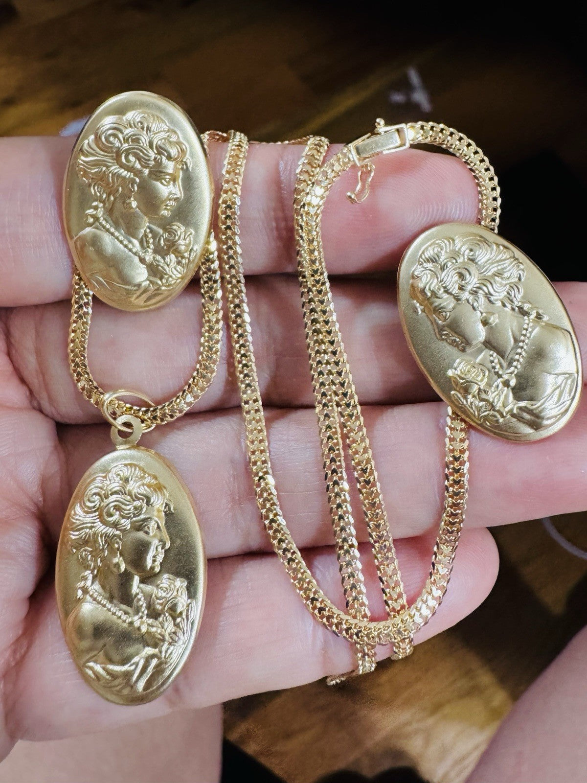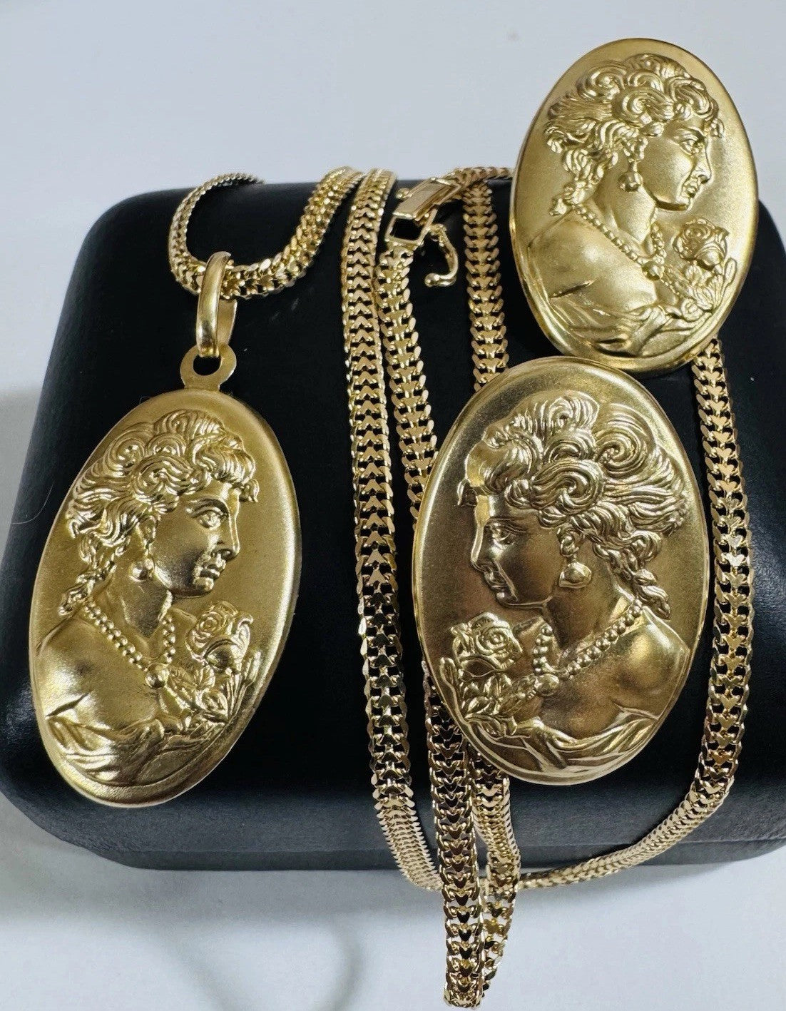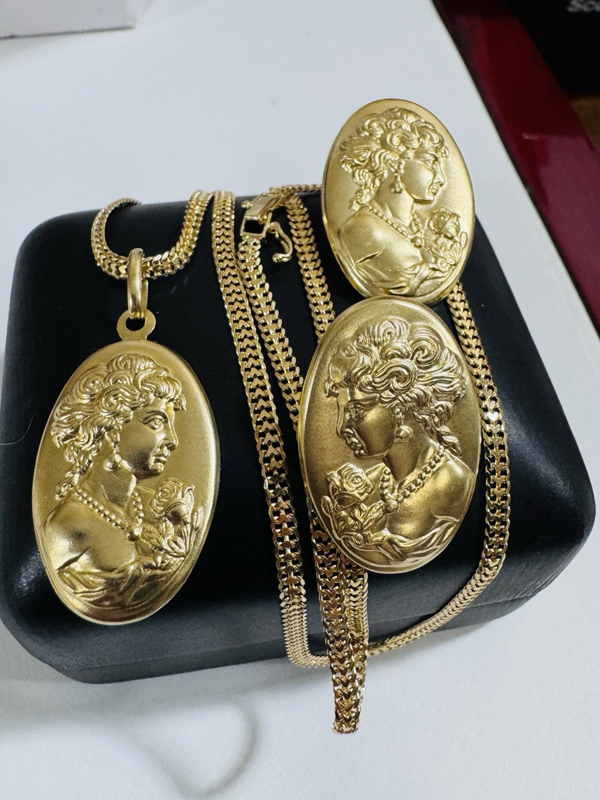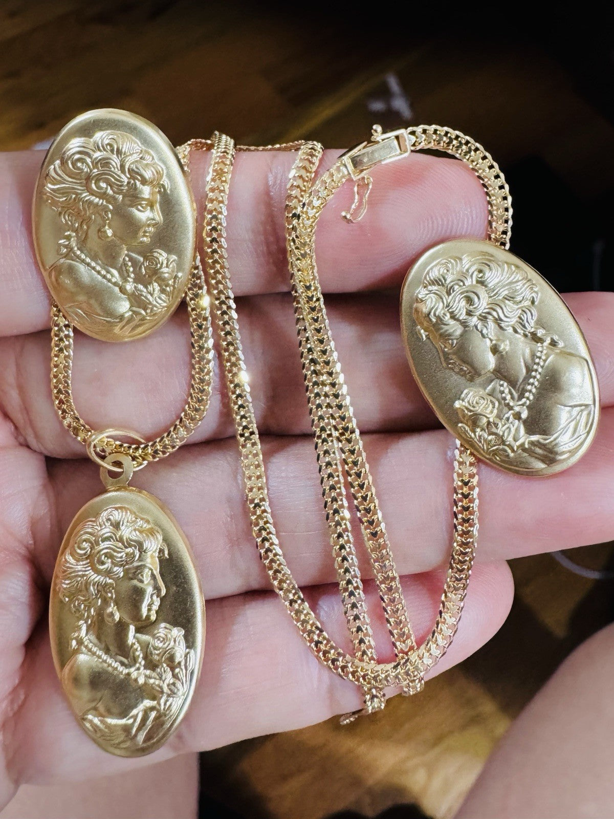 Metal: 18K Yellow Gold Set Earring & Necklace (Real and Genuine 18k Au750 Gold (Not Gold plated -Not Filled- Not Fake)