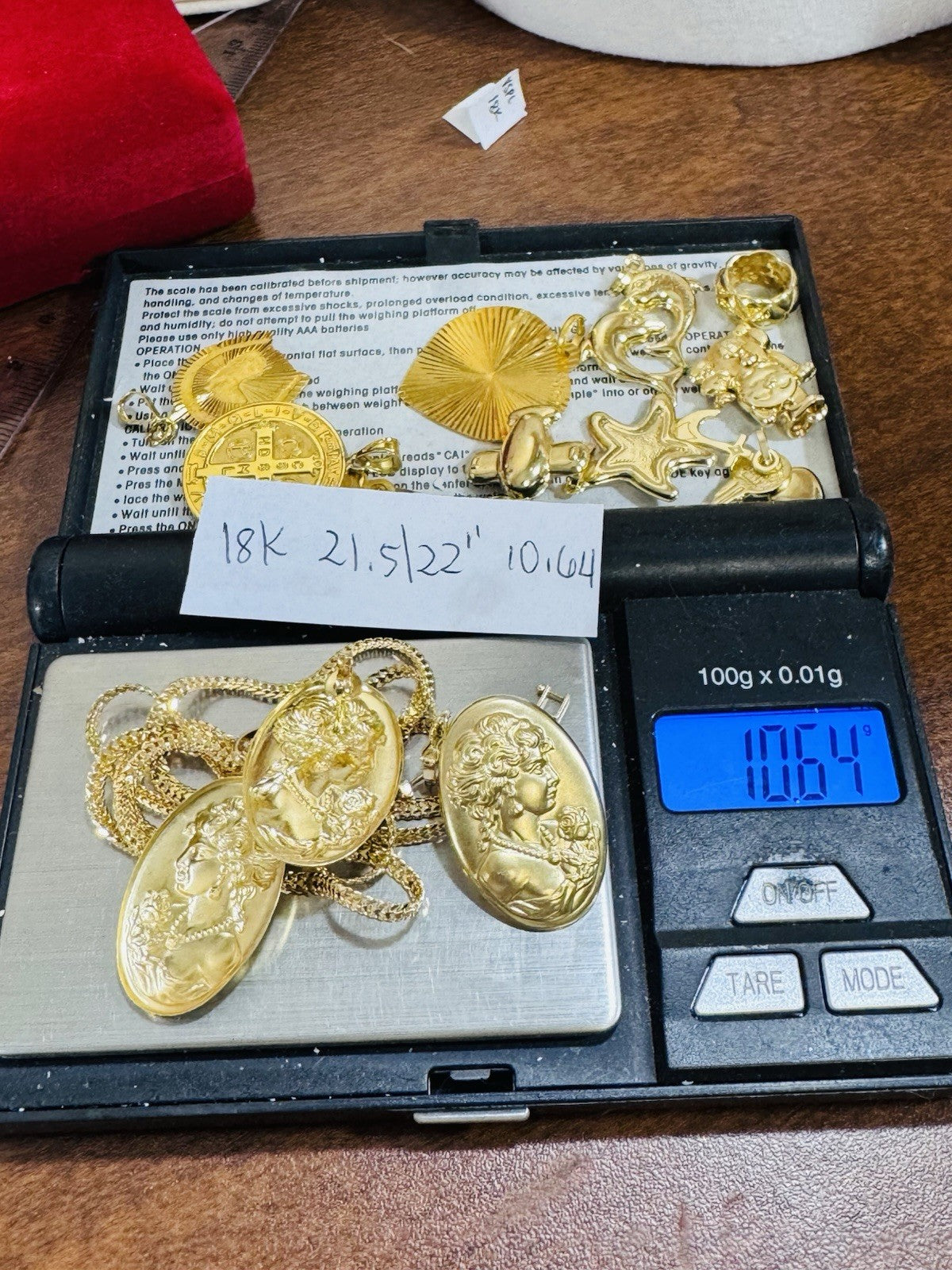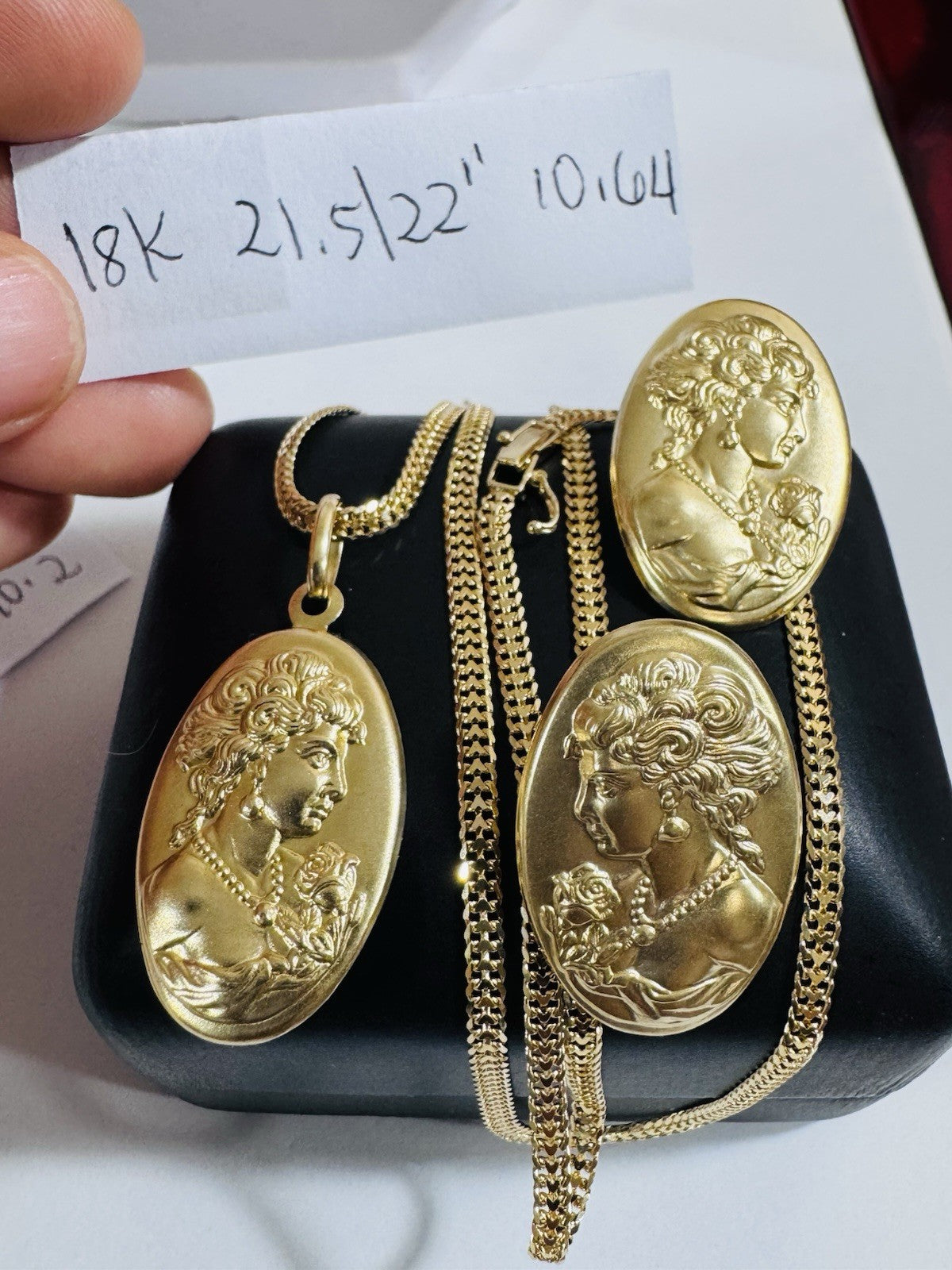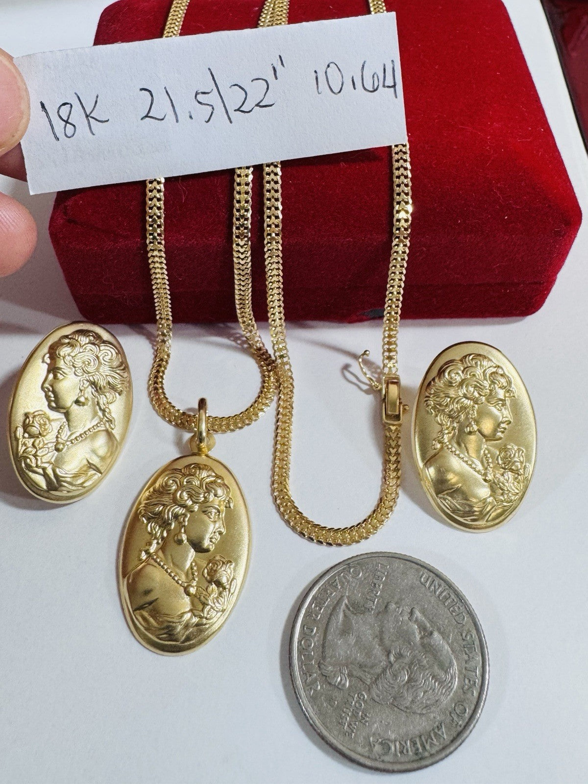 Pure 18K 750 DUBAI Gold Queen ll Earring & Necklace 21.5”/22” Long 3mm 10.64g