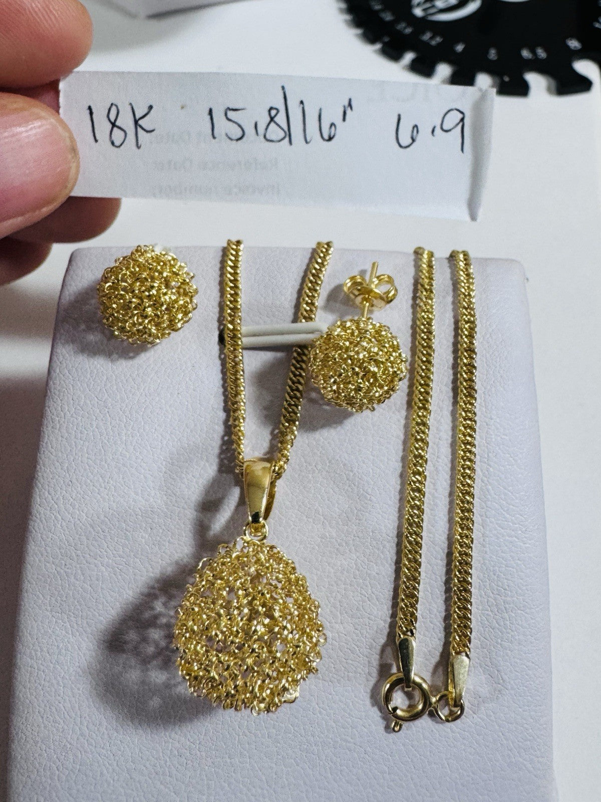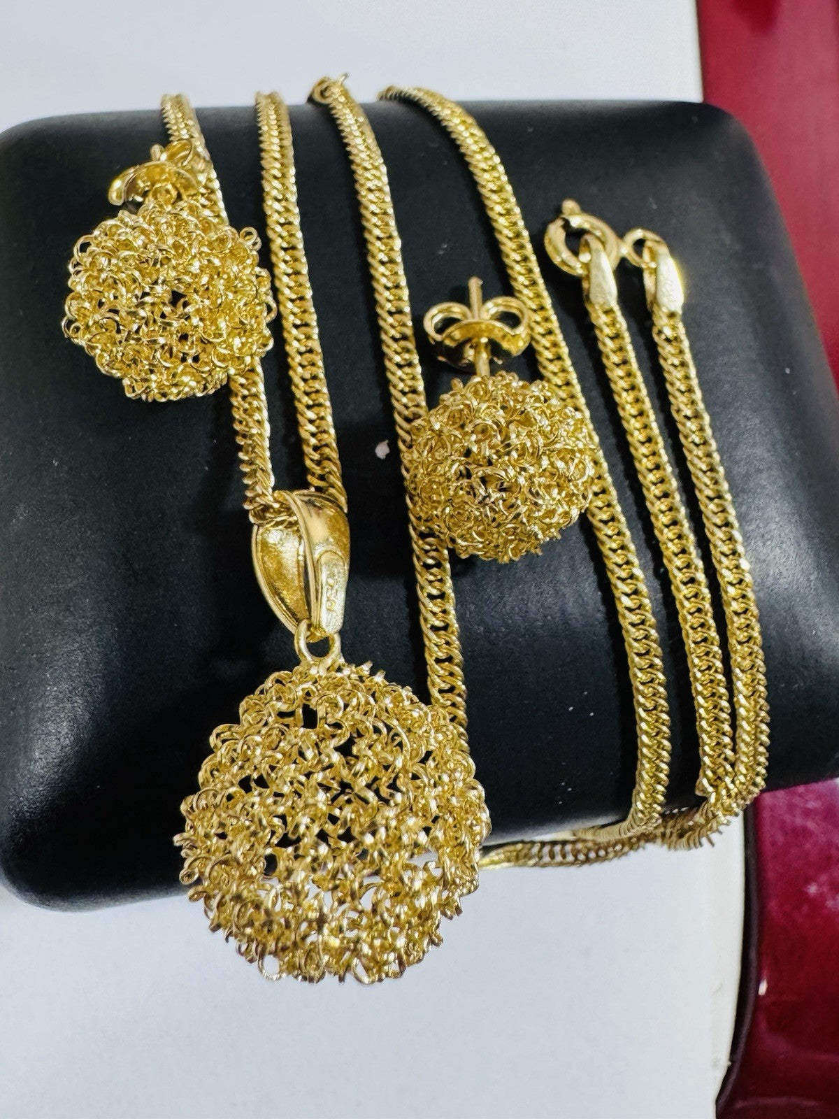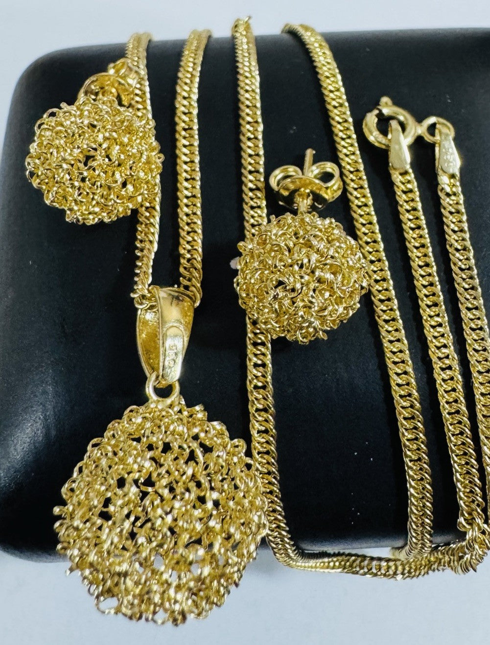 Pure 18K 750 DUBAI Gold Round Ball Earring & Necklace 15.8”/16” Long 2.2mm 6.9g