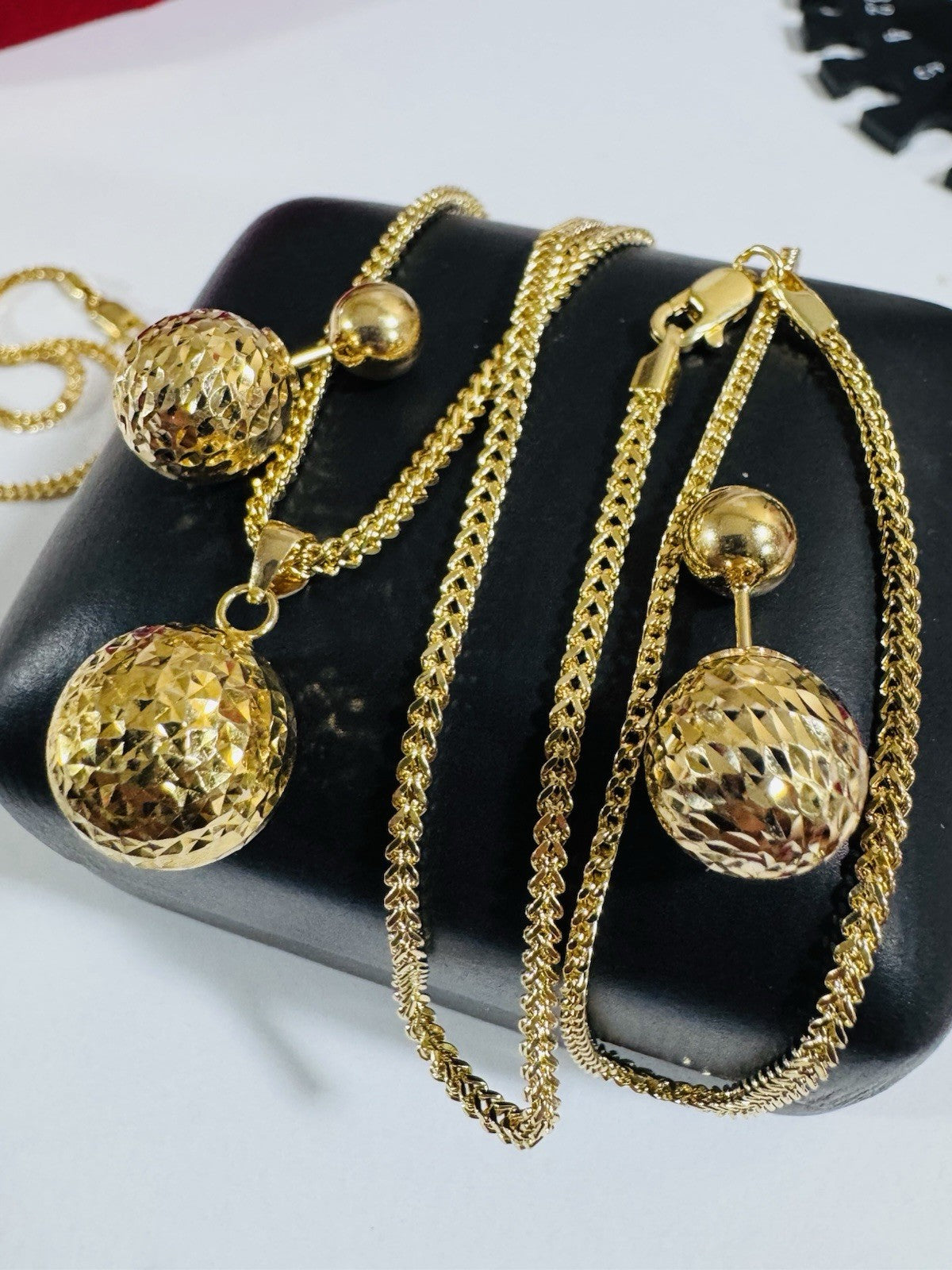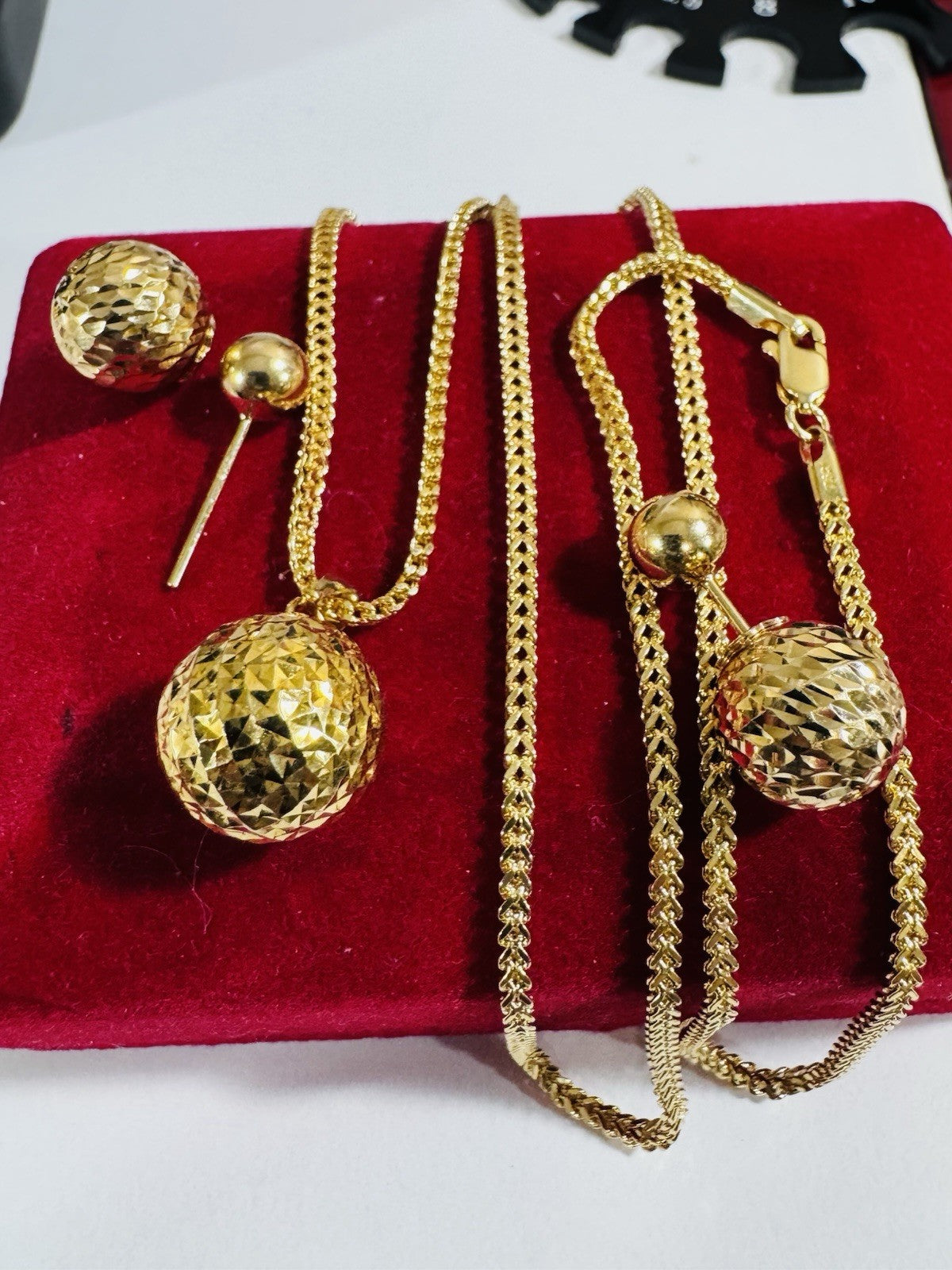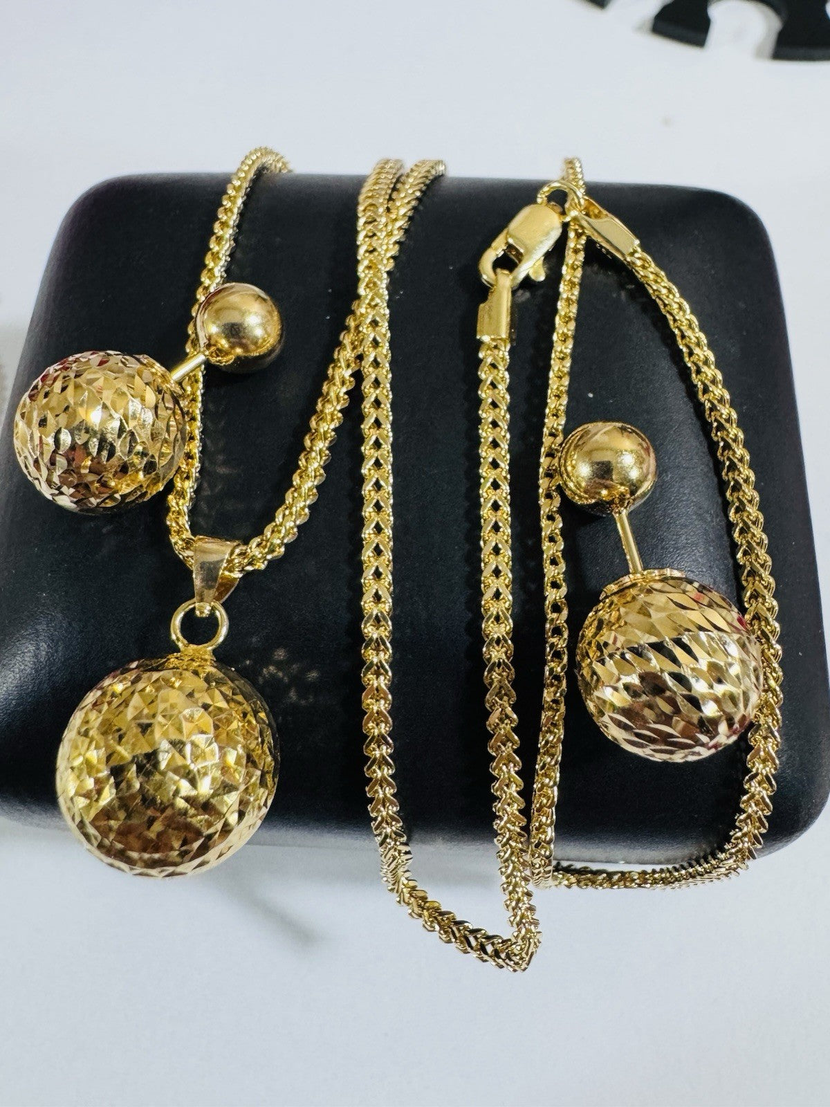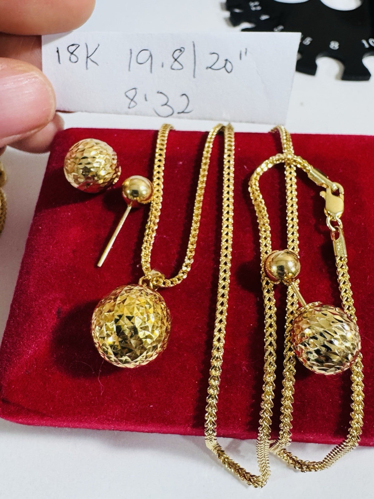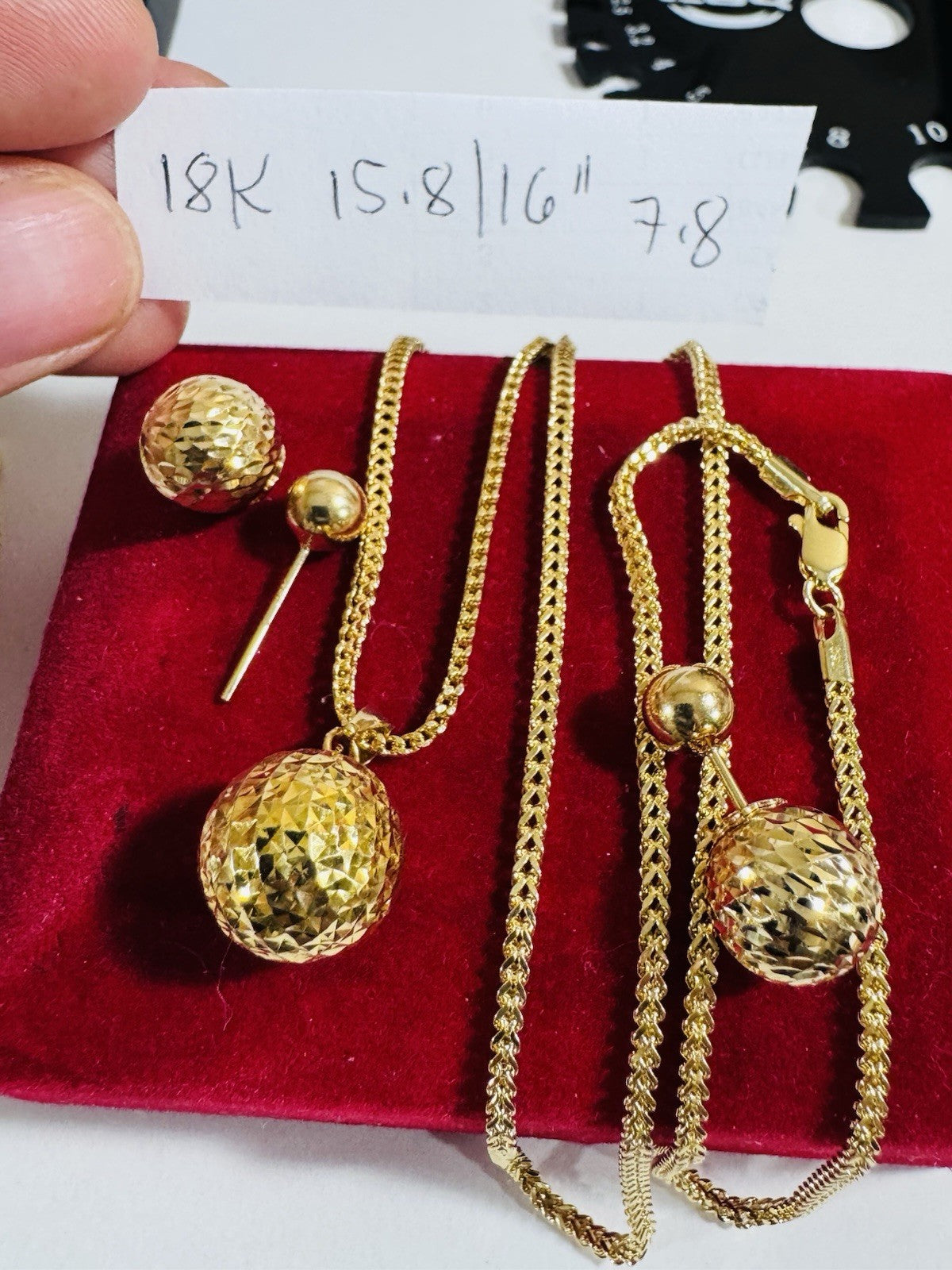 Pure 18K 750 DUBAI Gold Round Ball Earring & Necklace 15.8/16” Long 2.2mm 7.8g