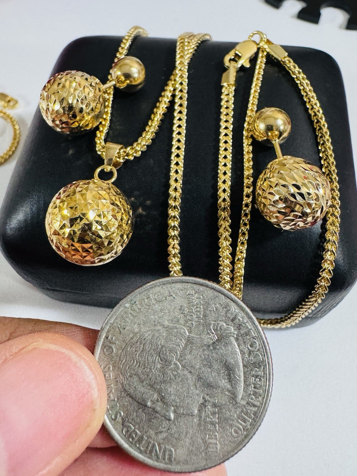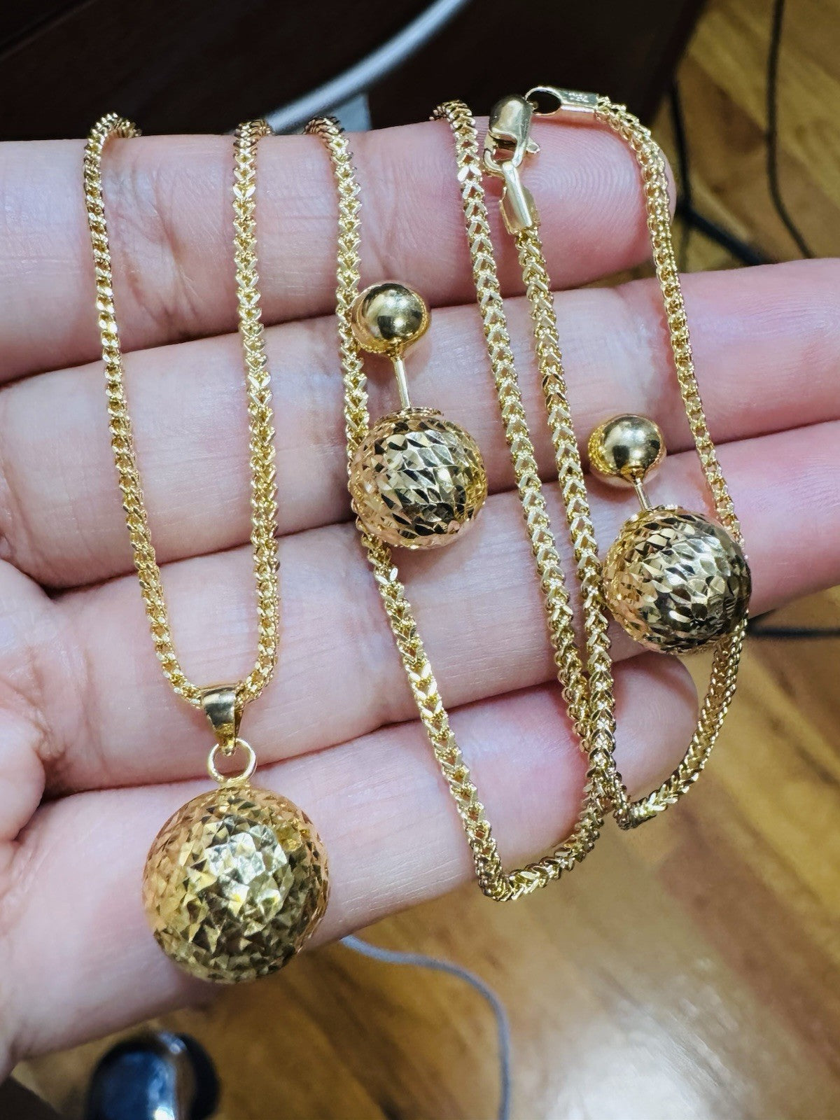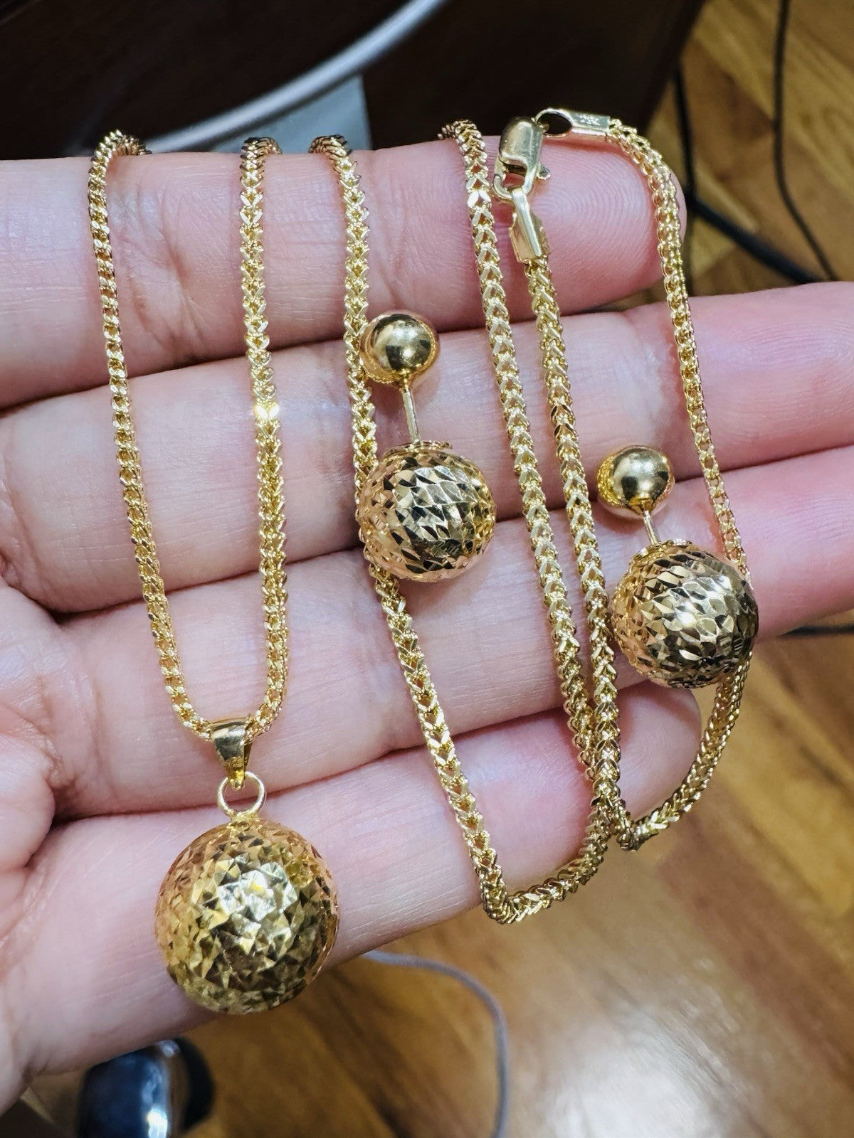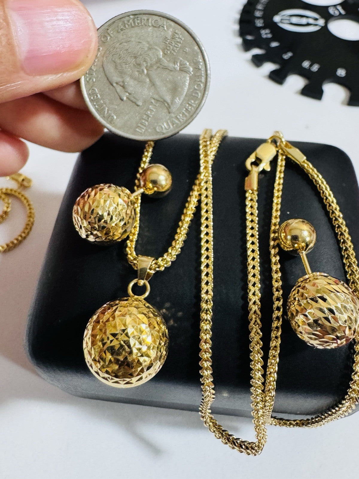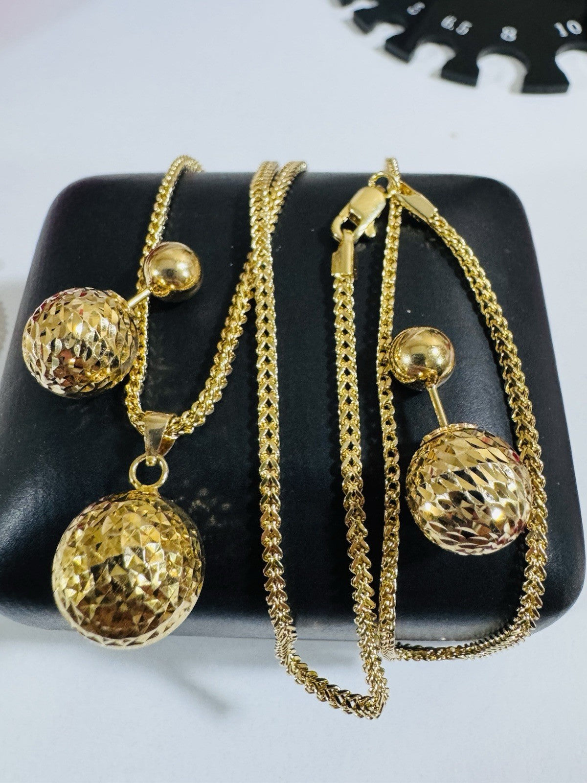 Pure 18K 750 DUBAI Gold Round Ball Earring & Necklace 15.8/16” Long 2.2mm 7.8g