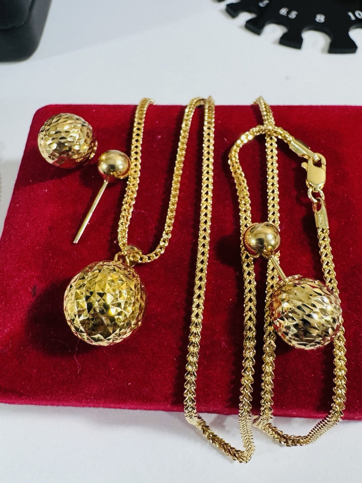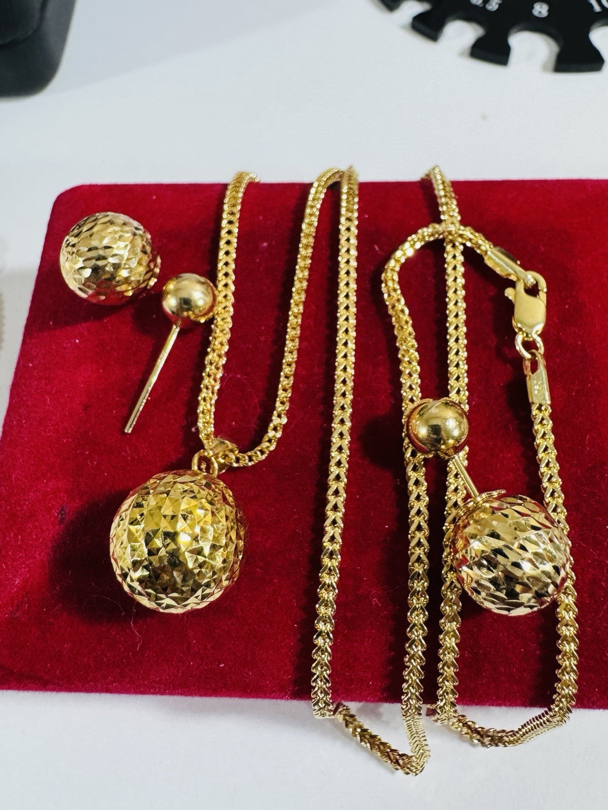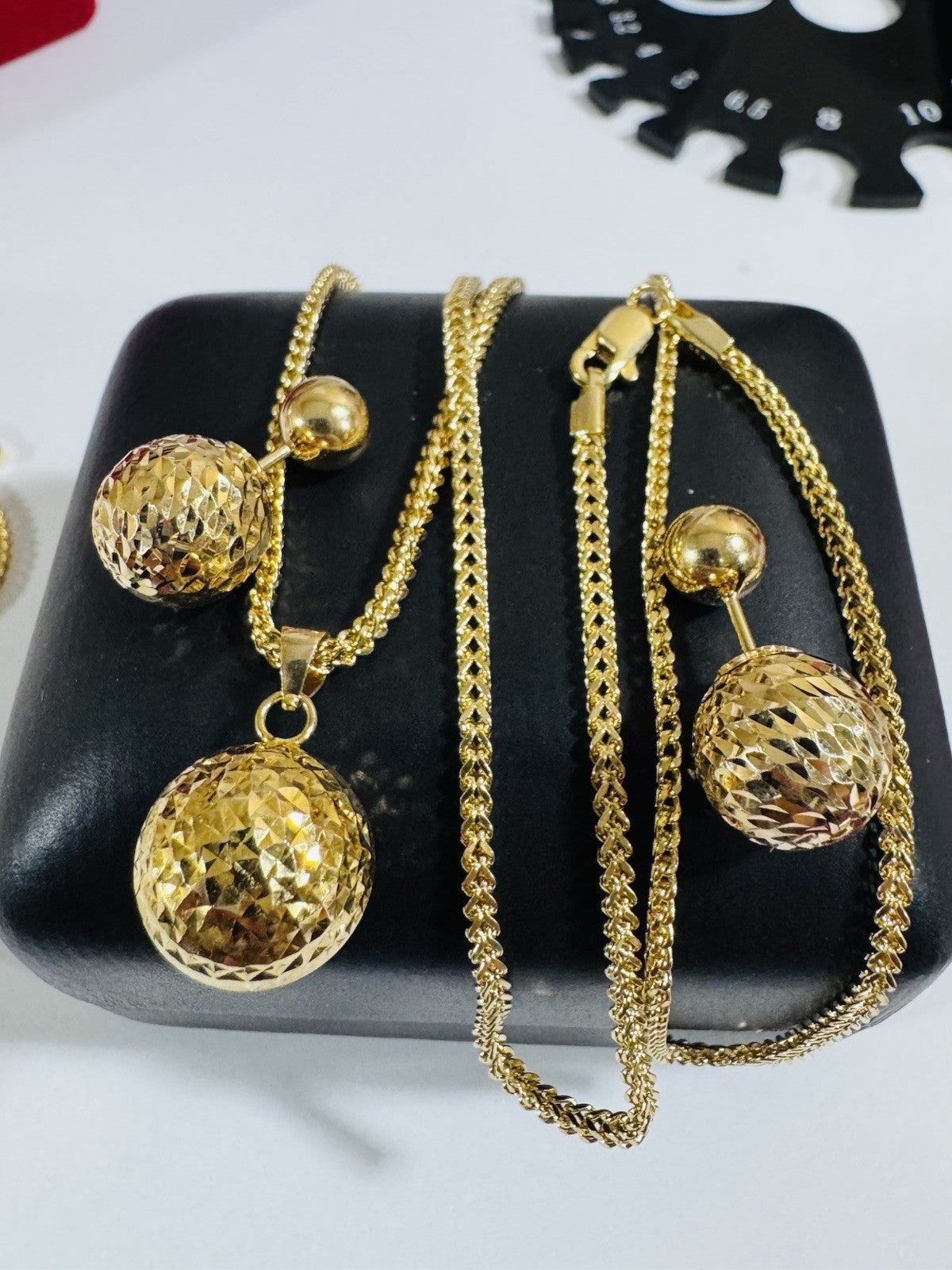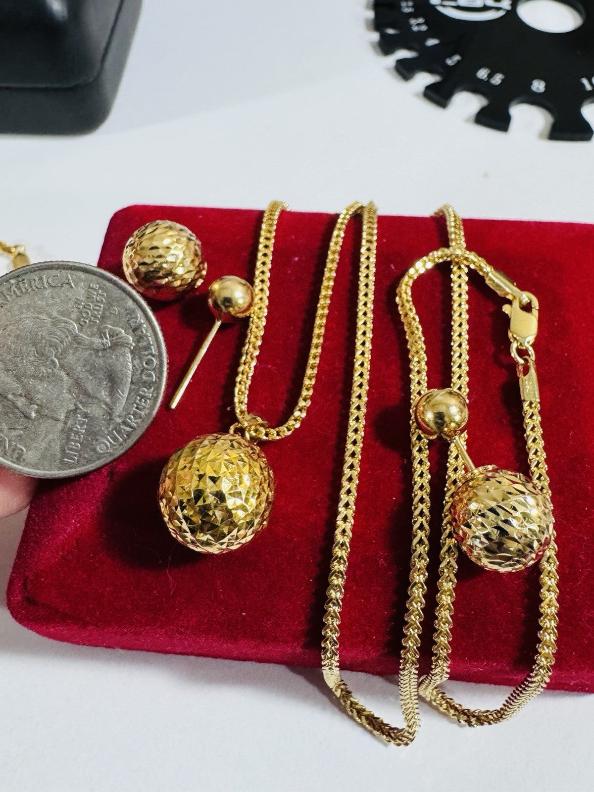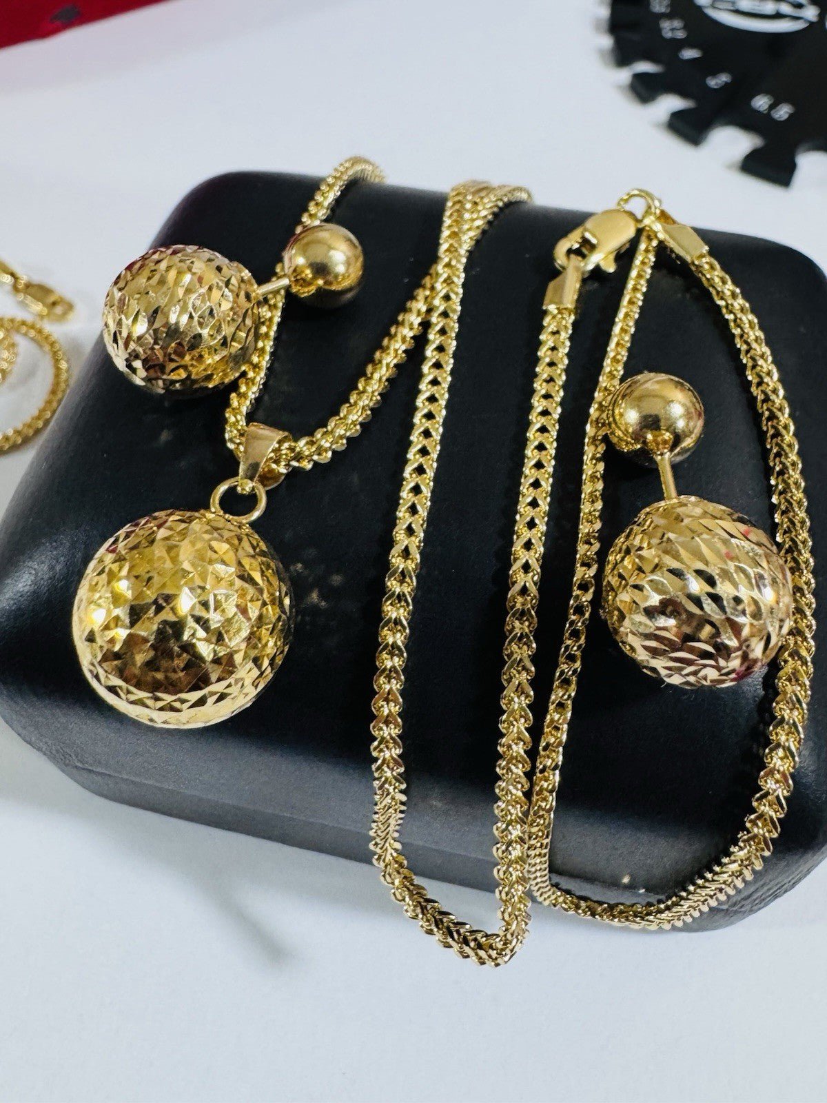 Pure 18K 750 DUBAI Gold Round Ball Earring & Necklace 15.8/16” Long 2.2mm 7.8g