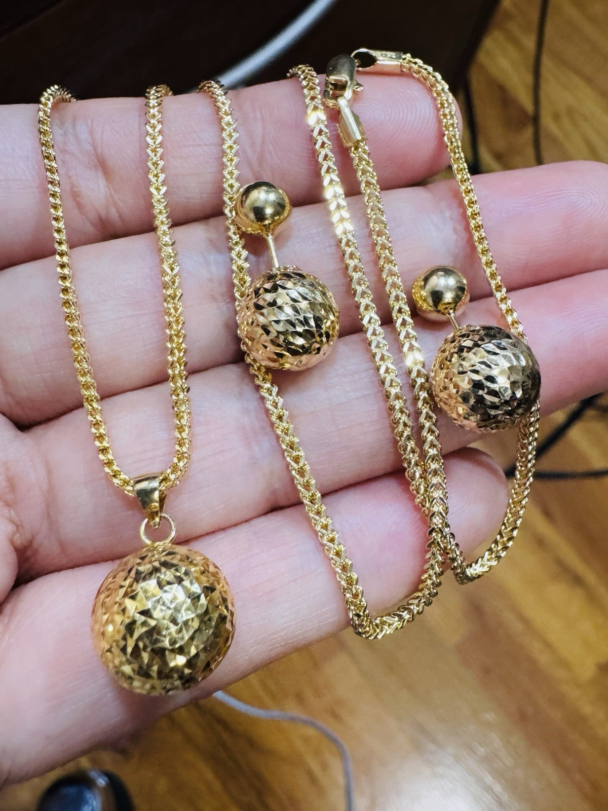 Metal: 18K Yellow Gold Set Earring & Necklace (Real and Genuine 18k Au750 Gold (Not Gold plated -Not Filled- Not Fake)
